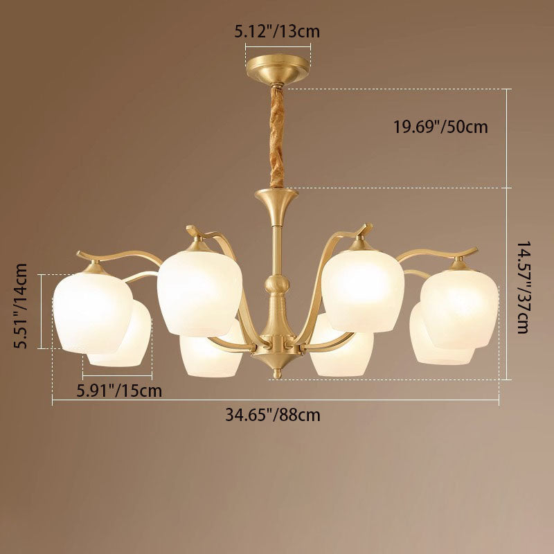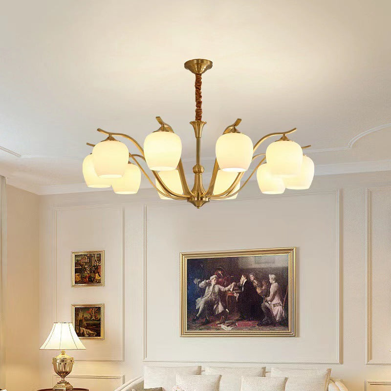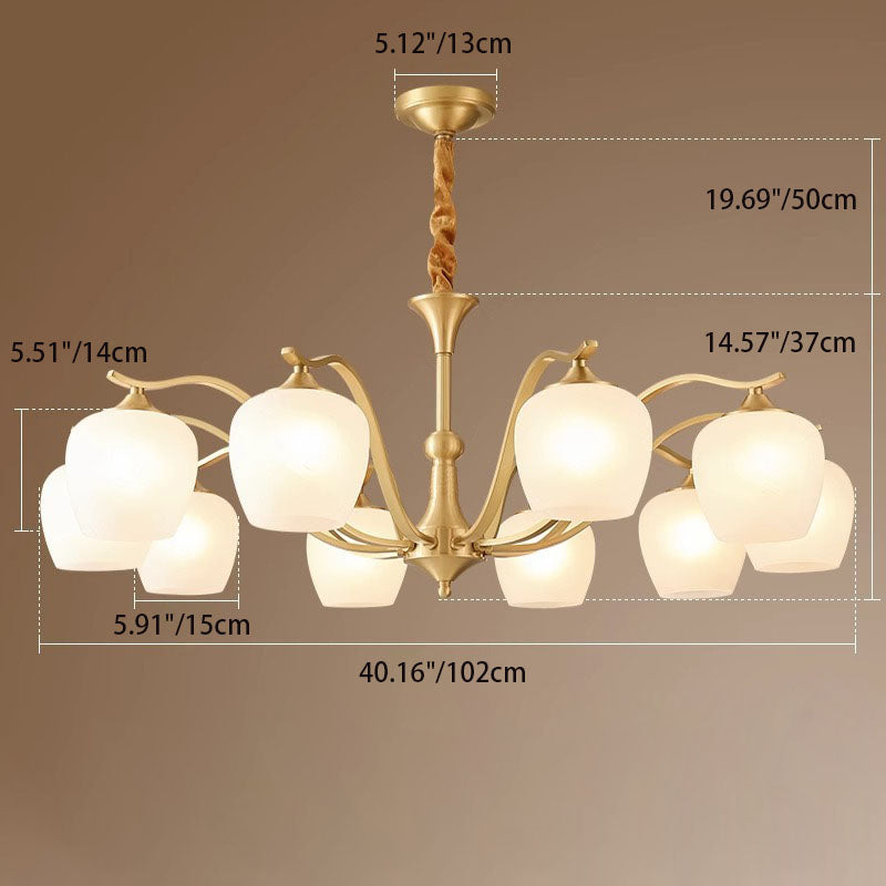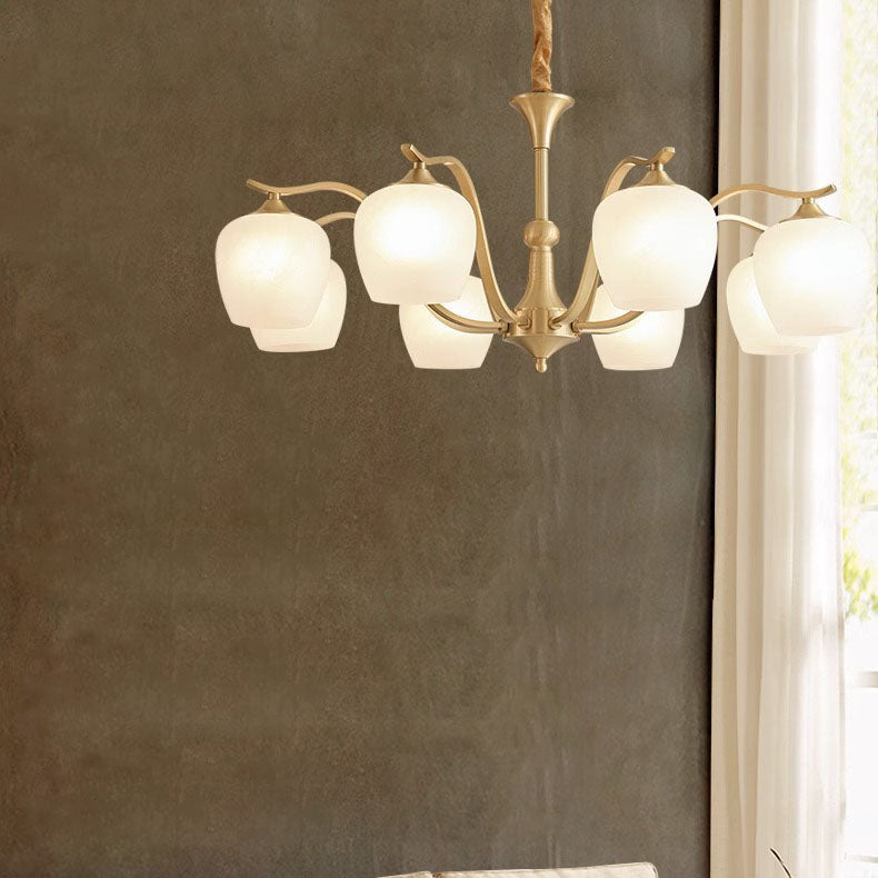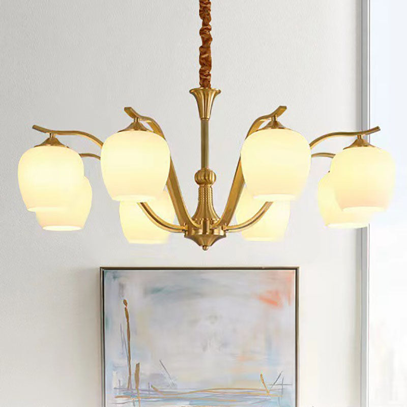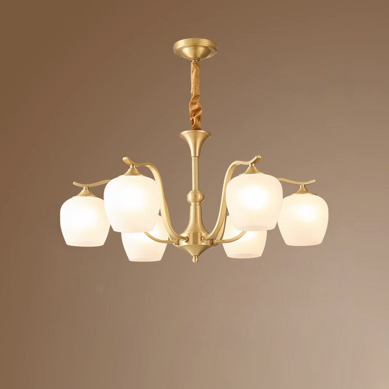 Modern Luxury Round Bud Iron Brass Glass 3/5/6/8/10 Light Chandelier For Living Room