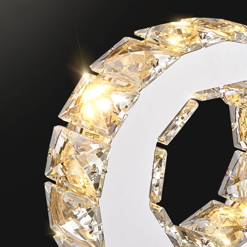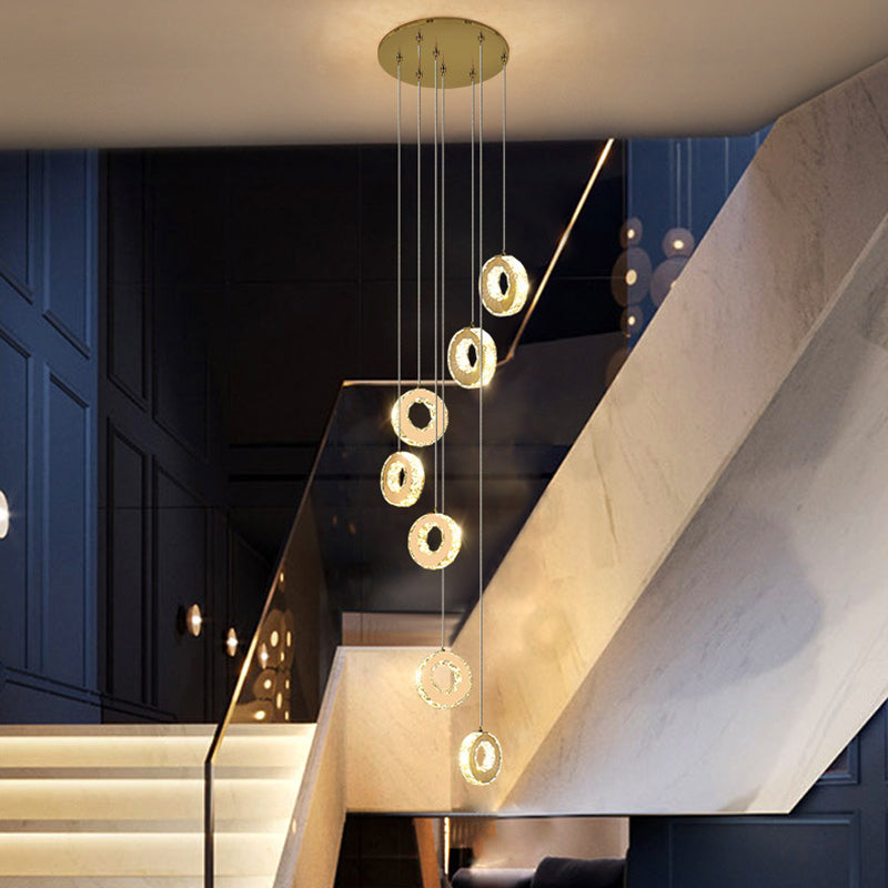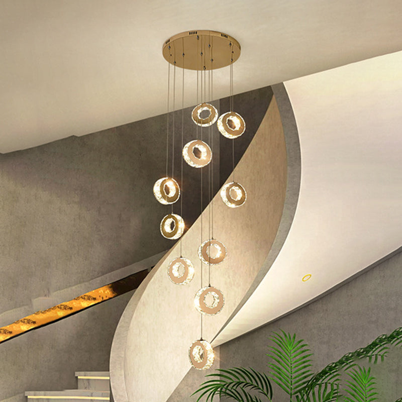 Modern Luxury Round Circle Staggered Rotating Stainless Steel Crystal LED Chandelier For Living Room