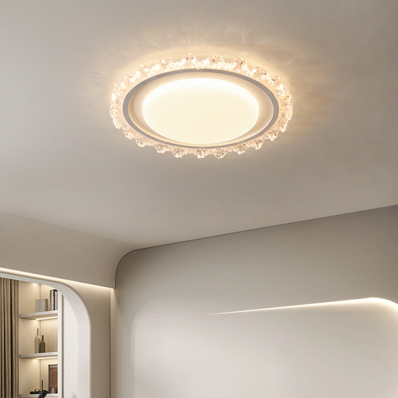 Modern Luxury Round Cream Wave Iron Acrylic LED Flush Mount Ceiling Light For Living Room