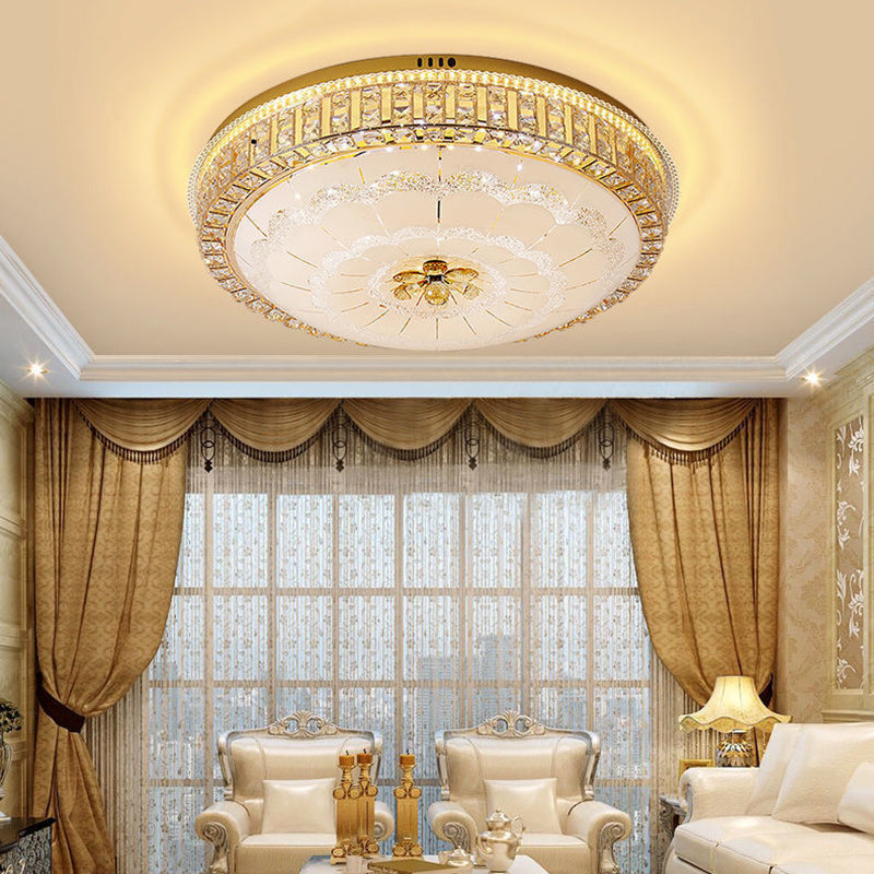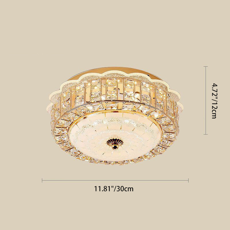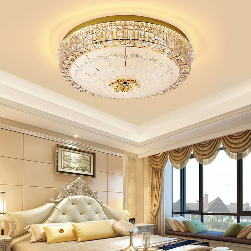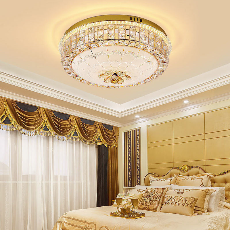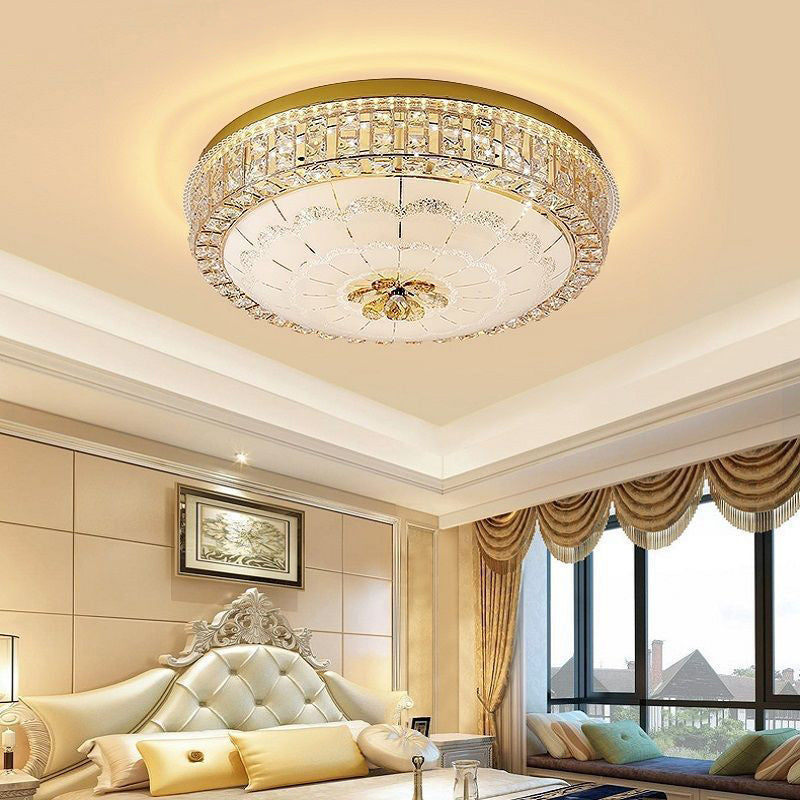Modern Luxury Round Crystal Glass Acrylic Metal LED Flush Mount Ceiling Light For Bedroom