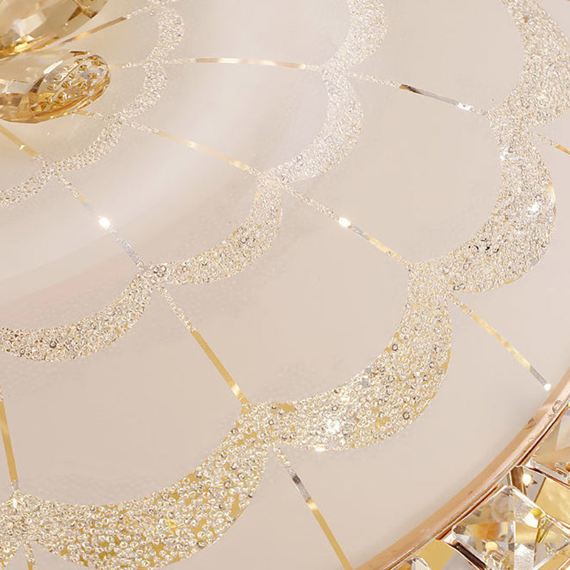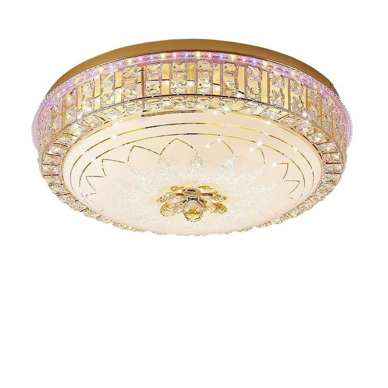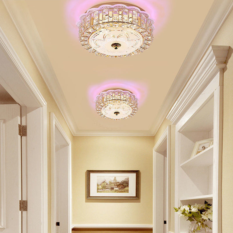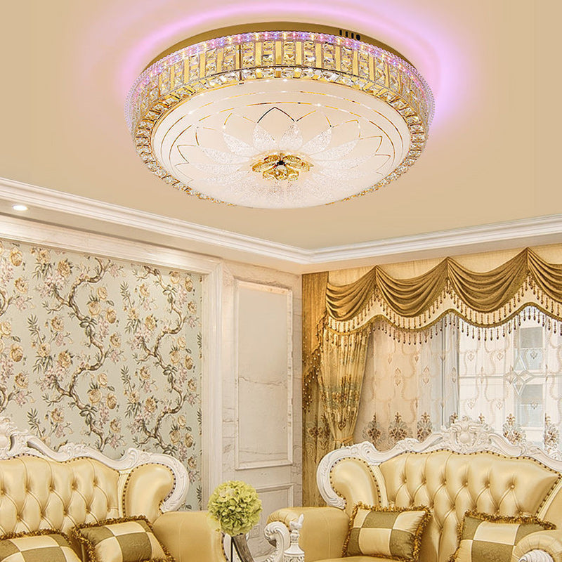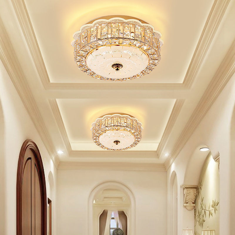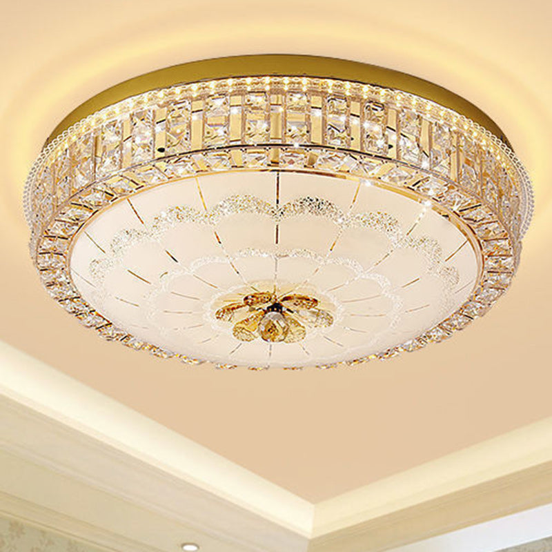 Modern Luxury Round Crystal Glass Acrylic Metal LED Flush Mount Ceiling Light For Bedroom
