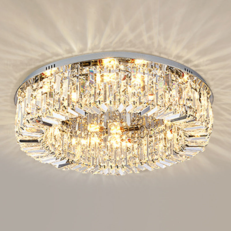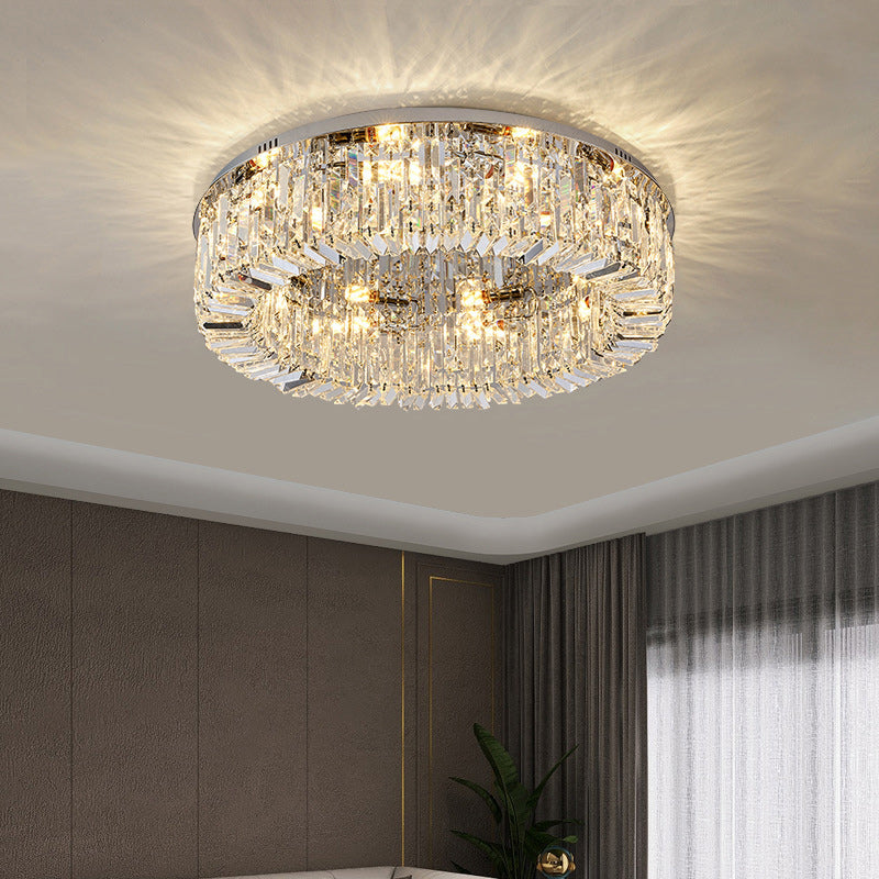 Modern Luxury Round Crystal Stainless Steel 5/8/12 Light Flush Mount Ceiling Light For Living Room
