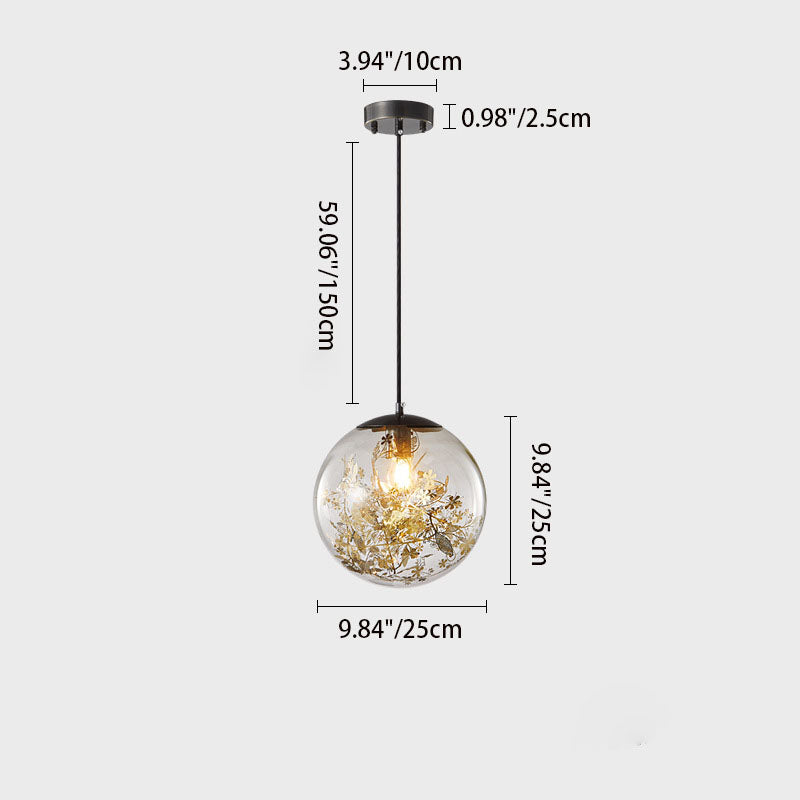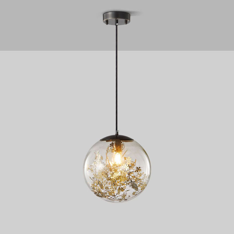 Modern Luxury Round Globe All Brass Glass 1-Light Pendant Light For Bedroom