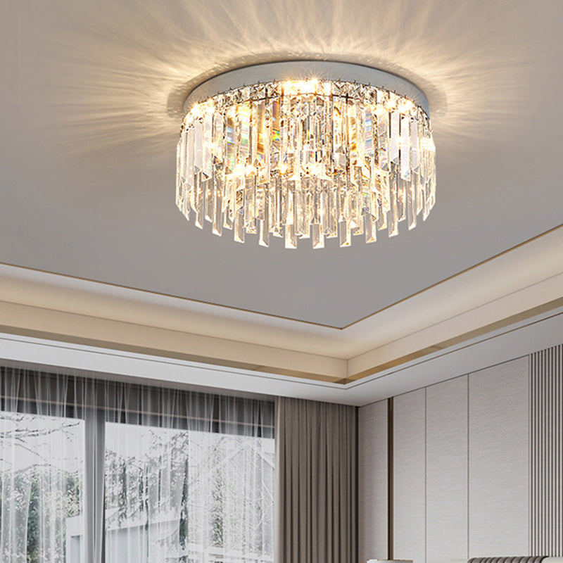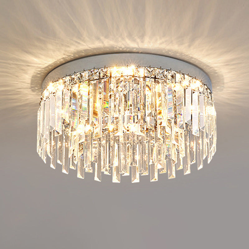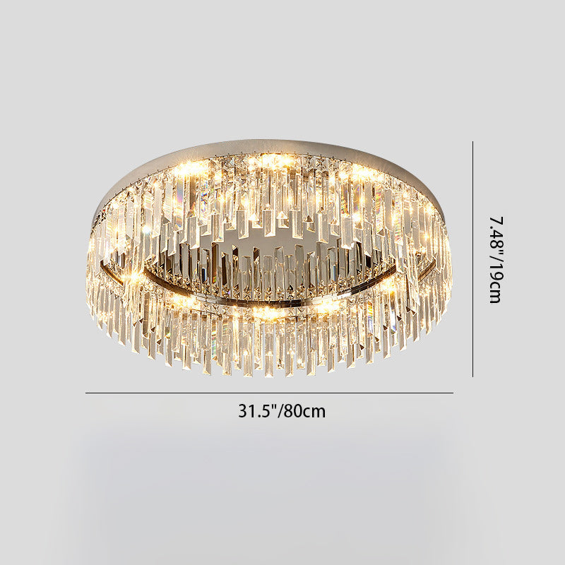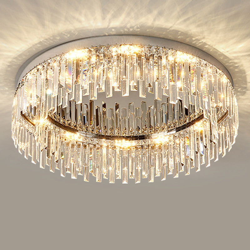 Modern Luxury Round Irregular Crystal Stainless Steel LED Flush Mount Ceiling Light For Living Room