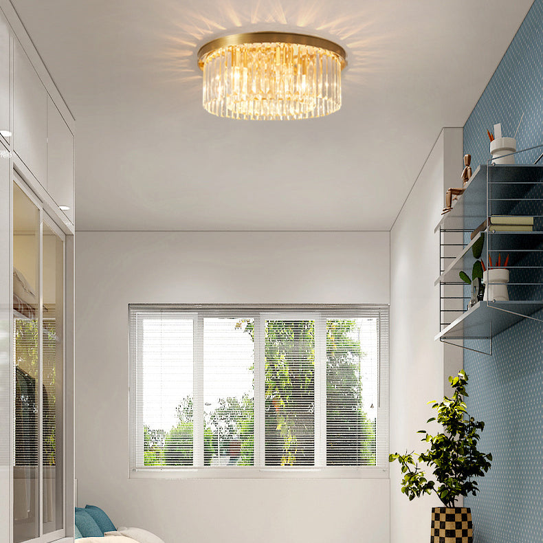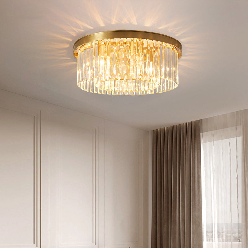 Modern Luxury Round Long Full Copper Crystal 4/5/6/8 Light Flush Mount Ceiling Light For Living Room