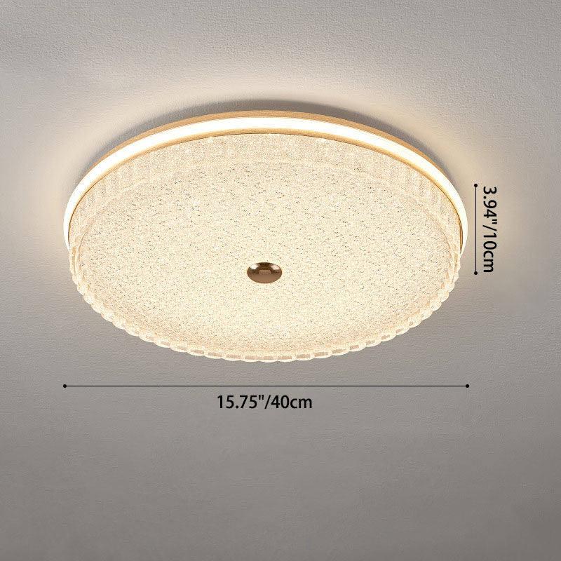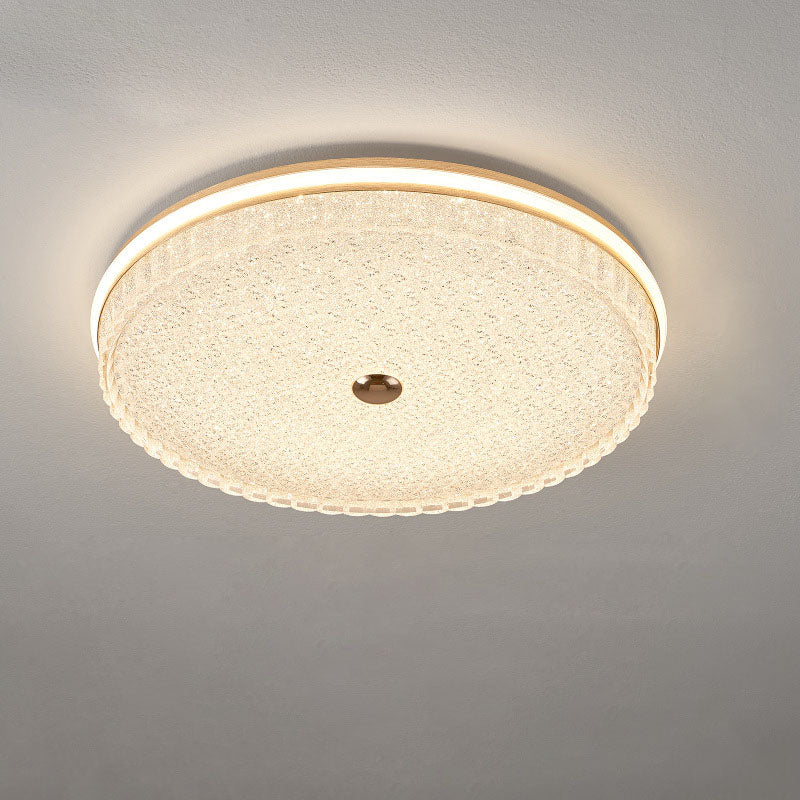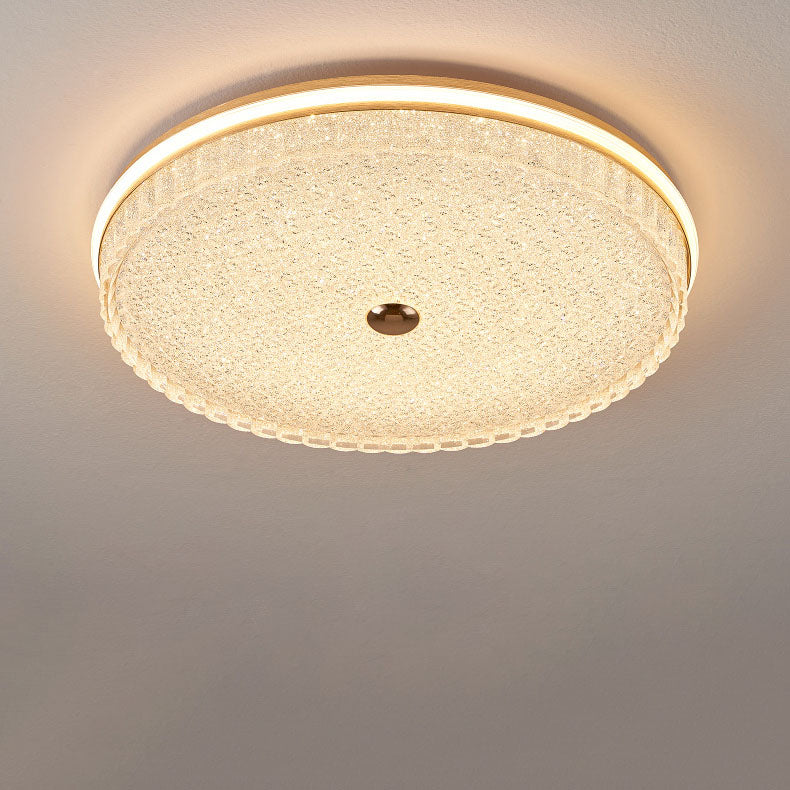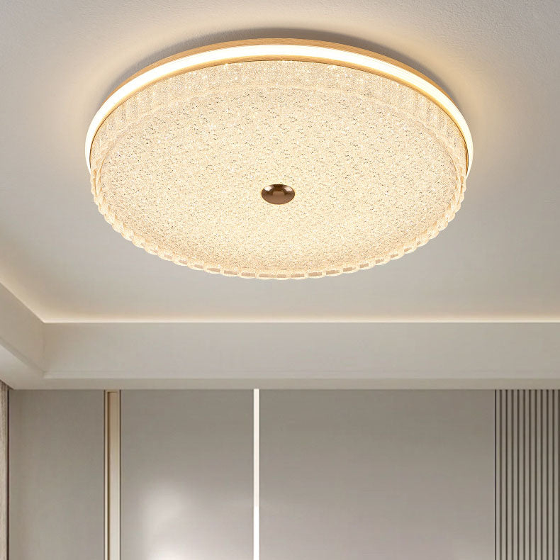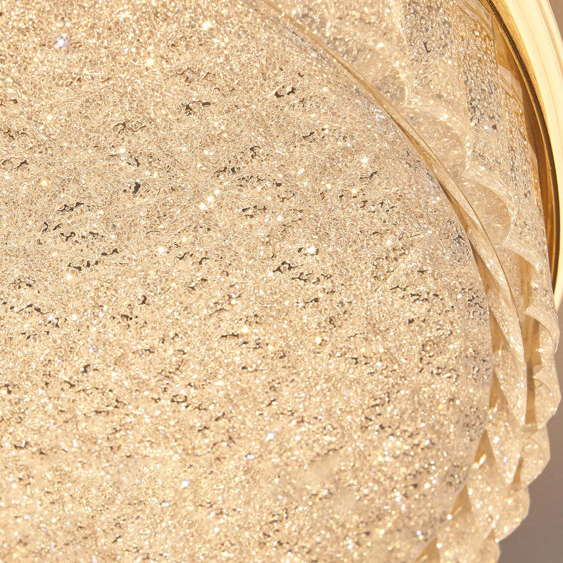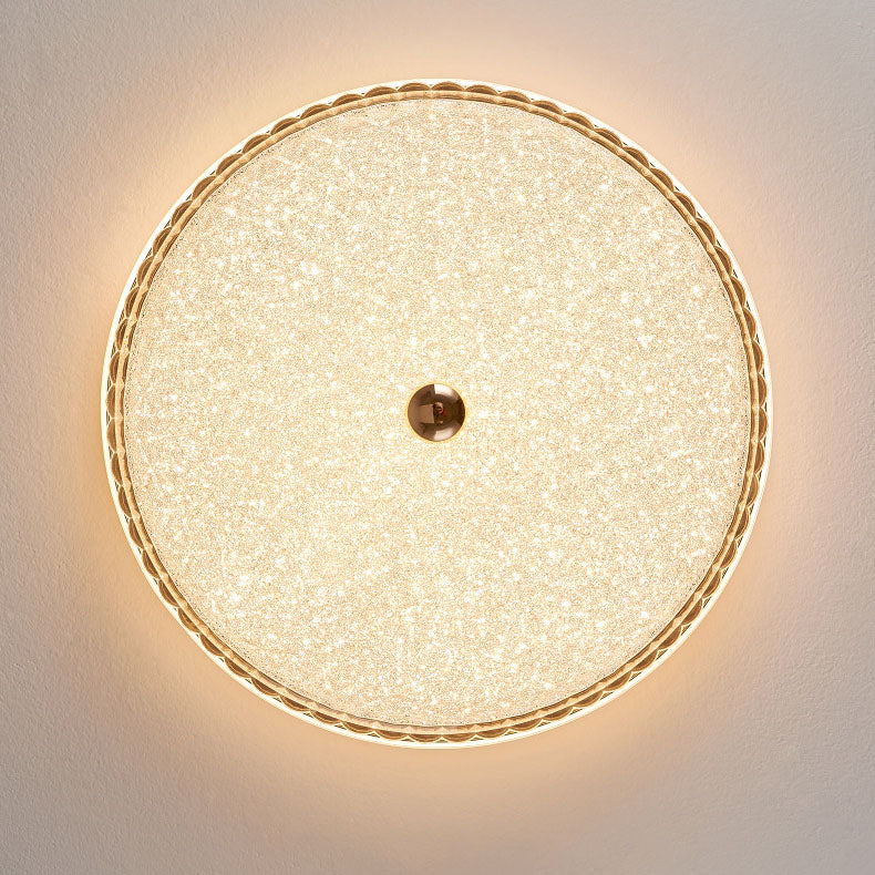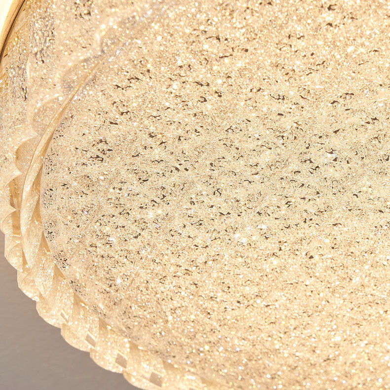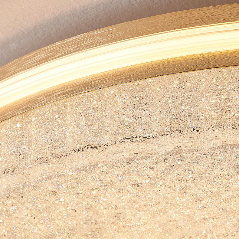 Modern Luxury Round Metal Aluminium Crystal Sand LED Flush Mount Ceiling Light For Bedroom