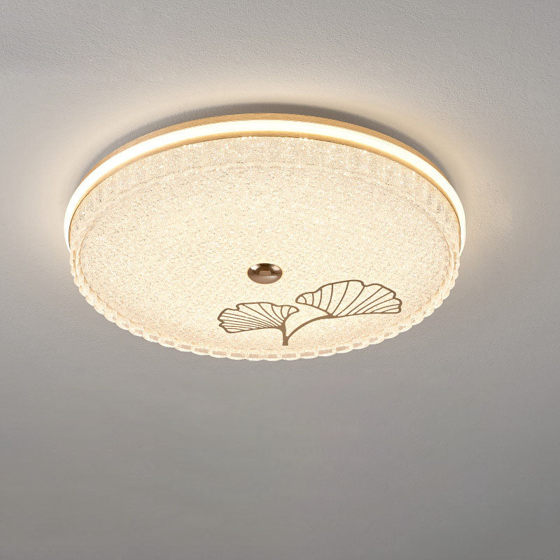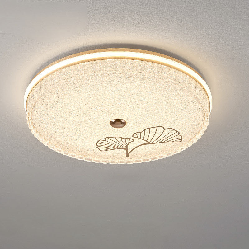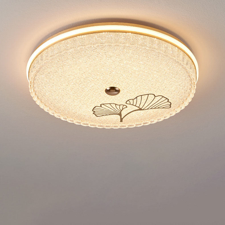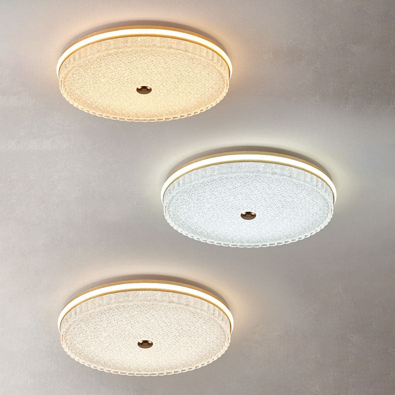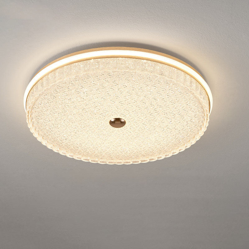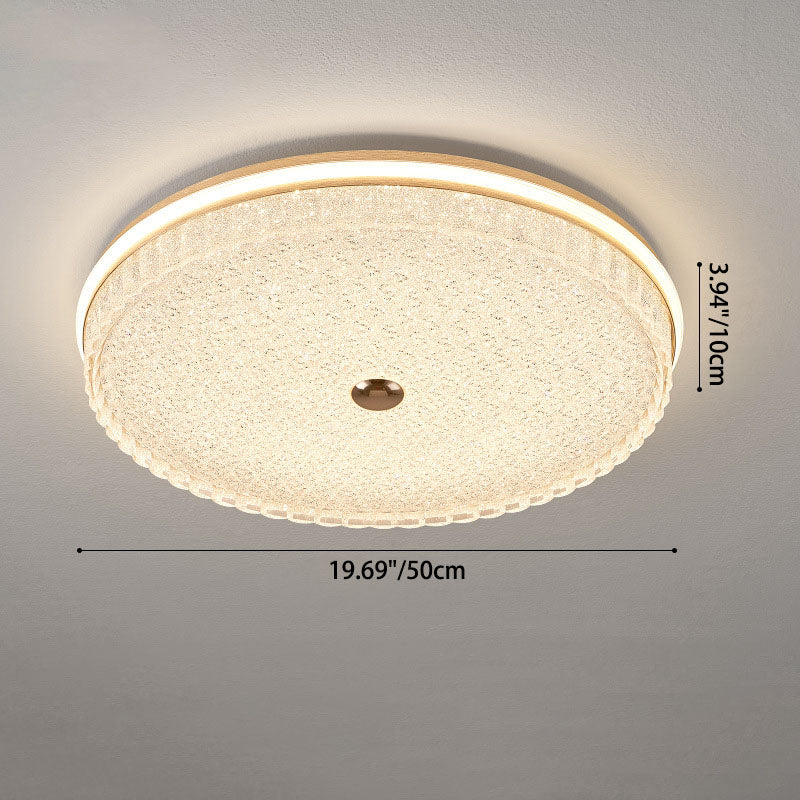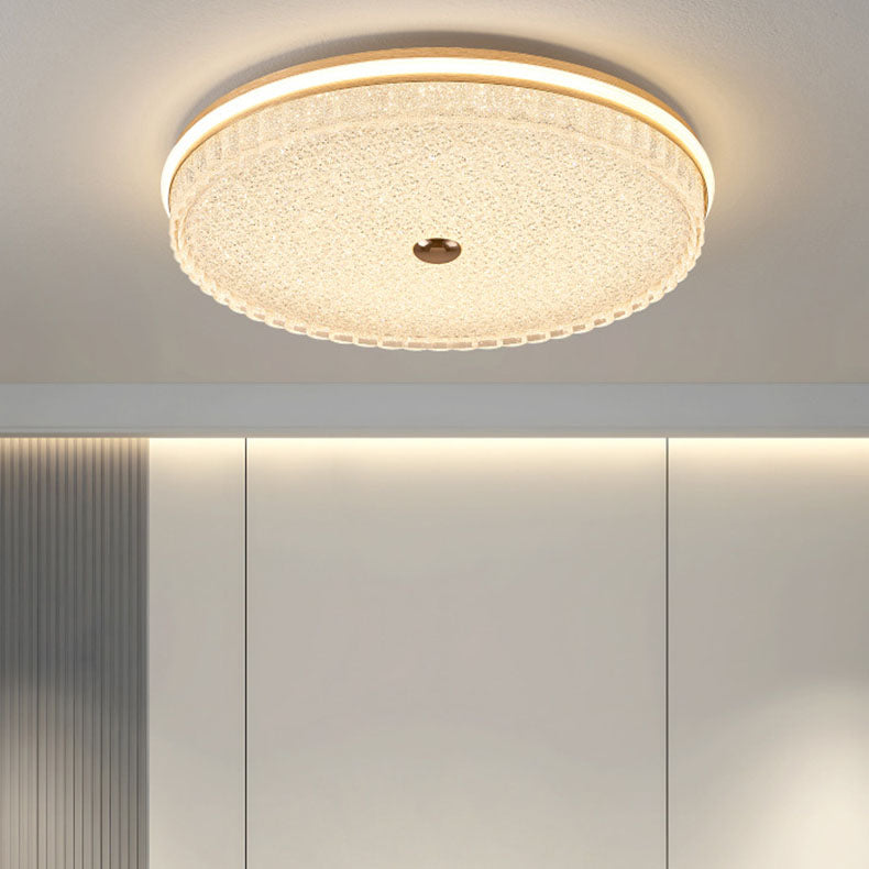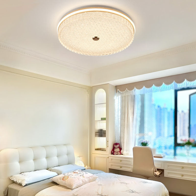 Modern Luxury Round Metal Aluminium Crystal Sand LED Flush Mount Ceiling Light For Bedroom