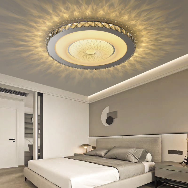 Modern Luxury Round Stainless Steel Acrylic Crystal LED Flush Mount Ceiling Light For Bedroom
