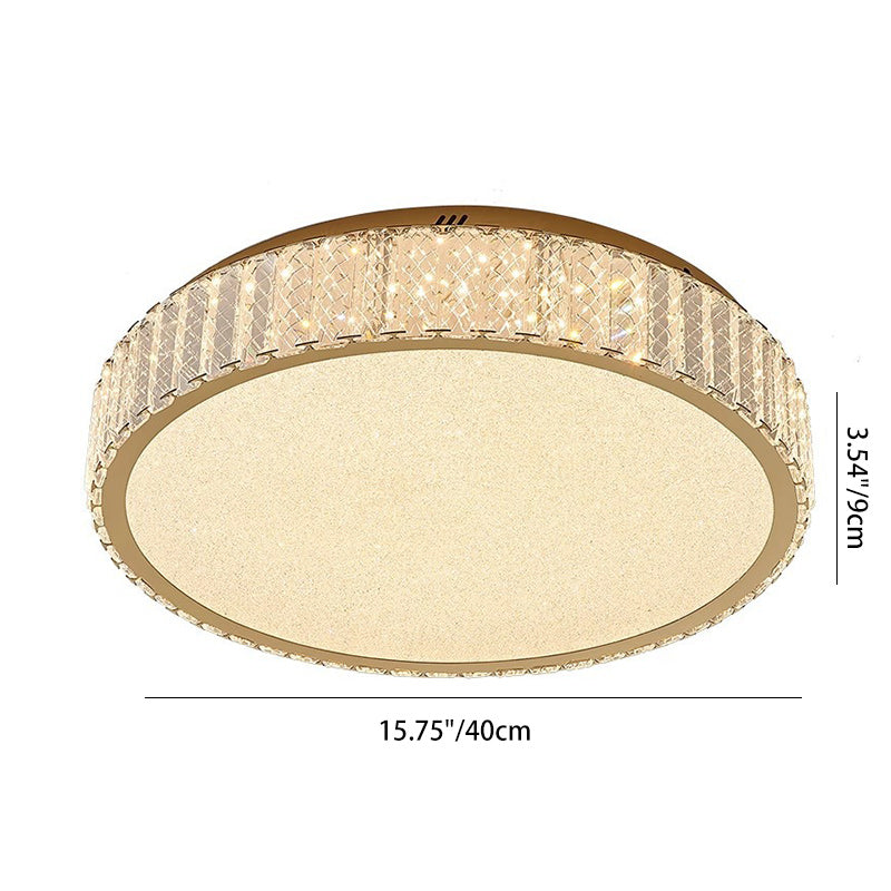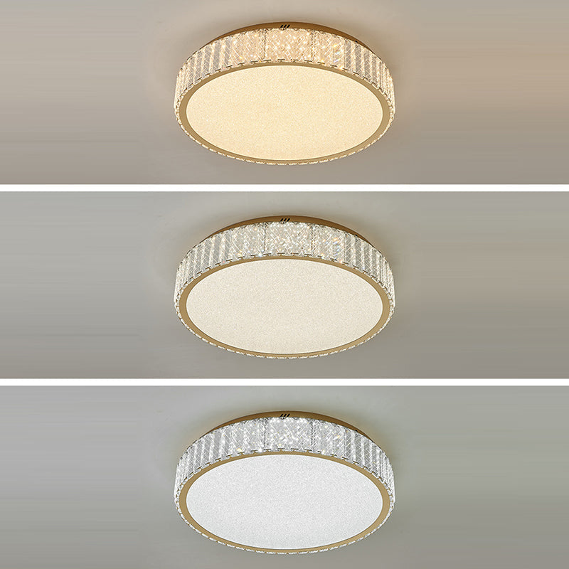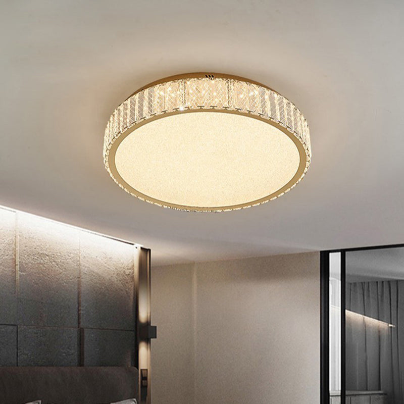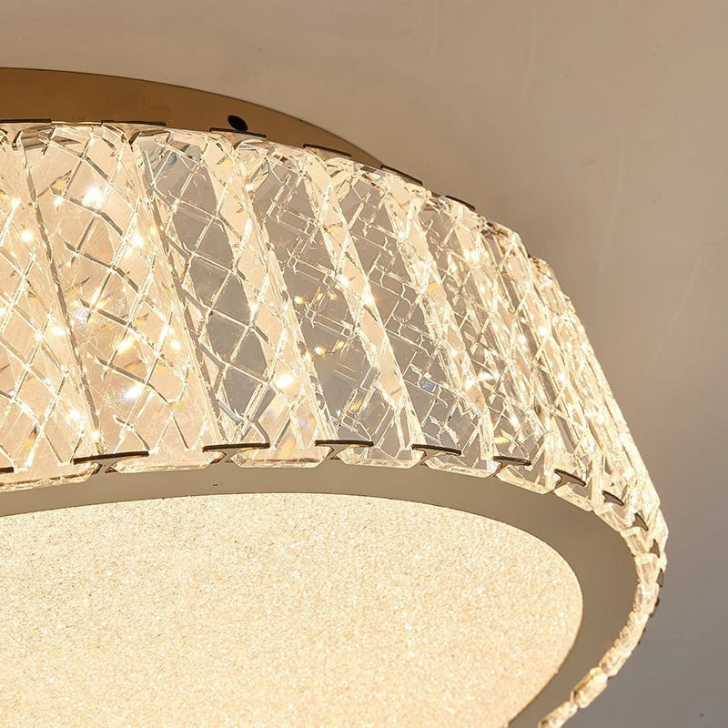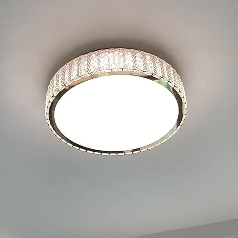 Modern Luxury Round Stainless Steel Crystal LED Flush Mount Ceiling Light For Bedroom