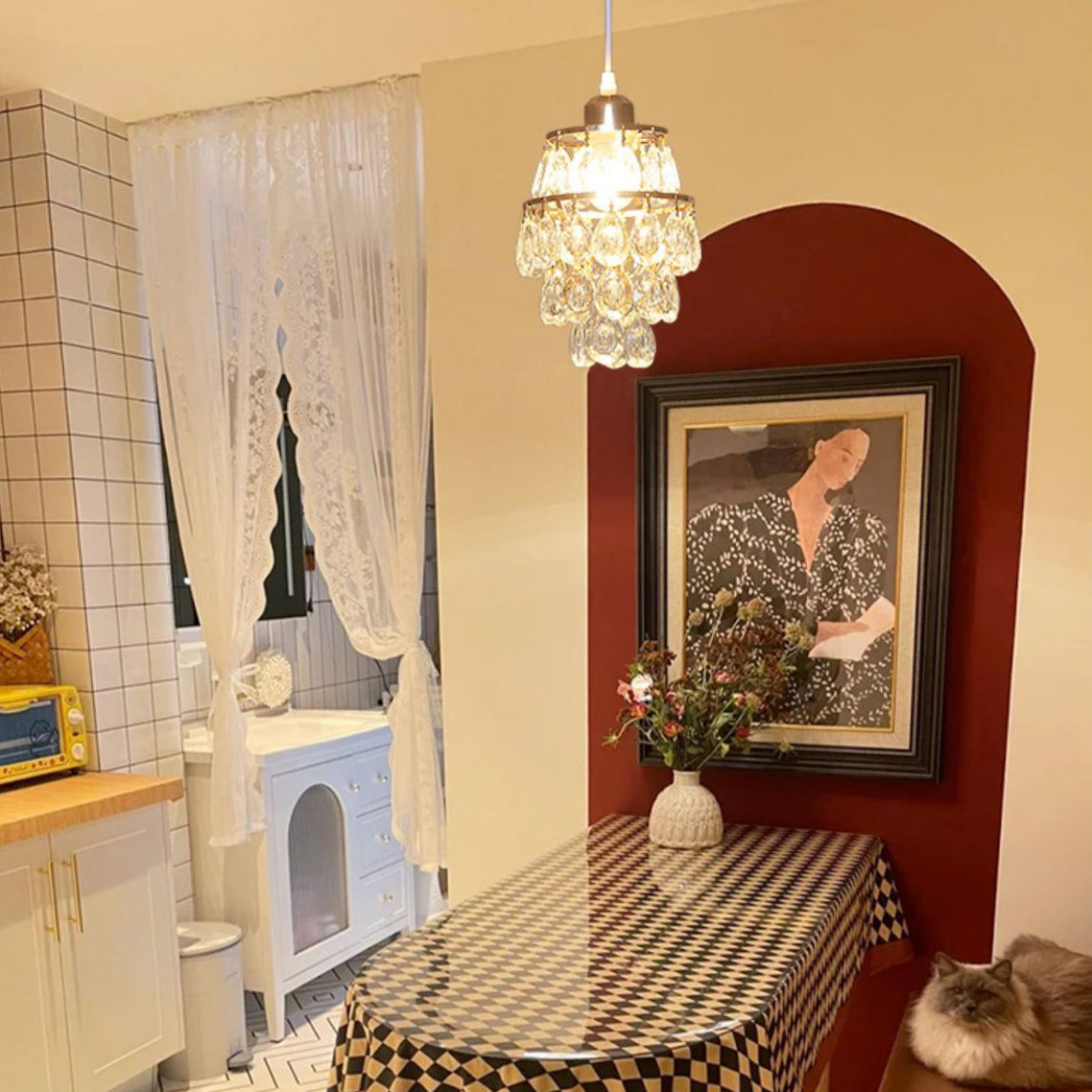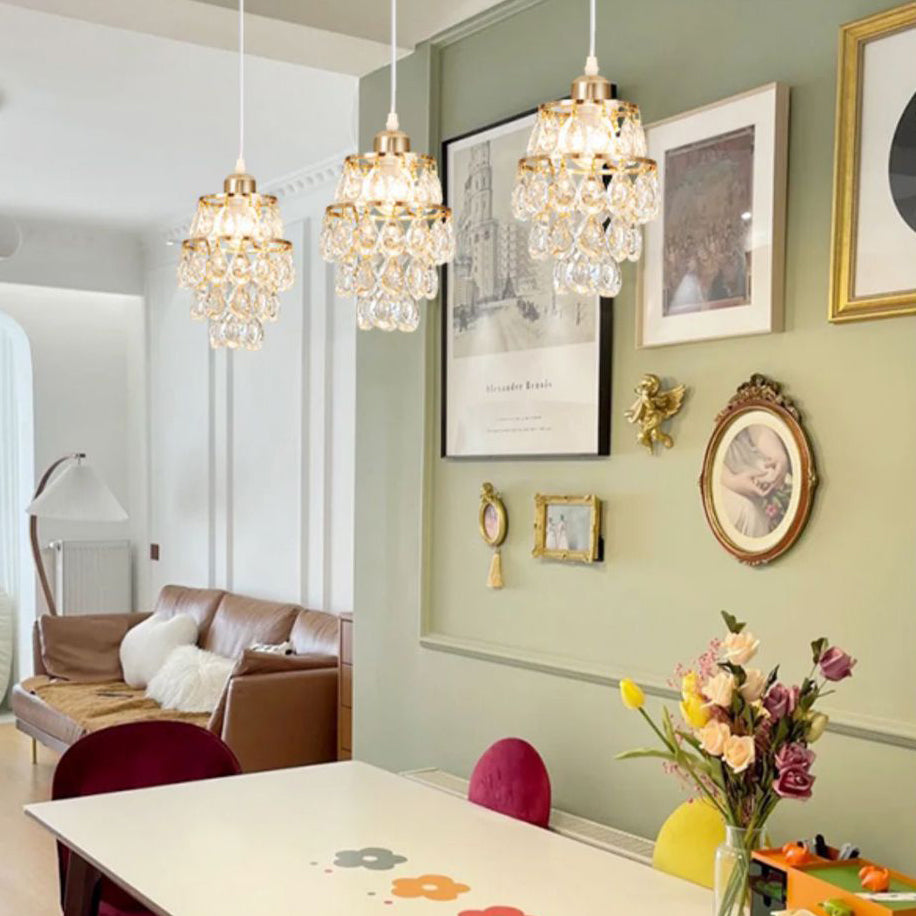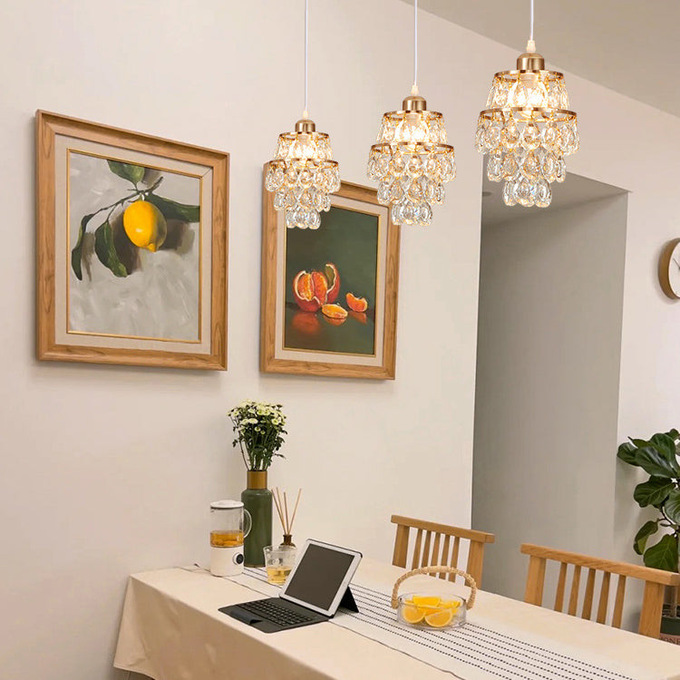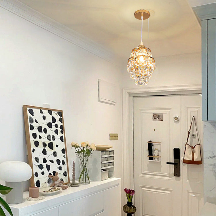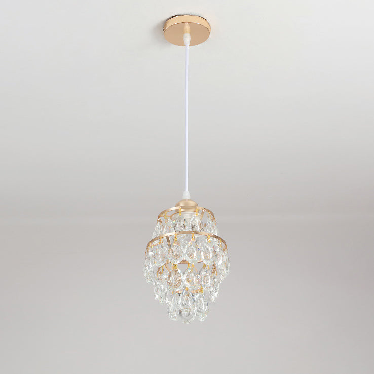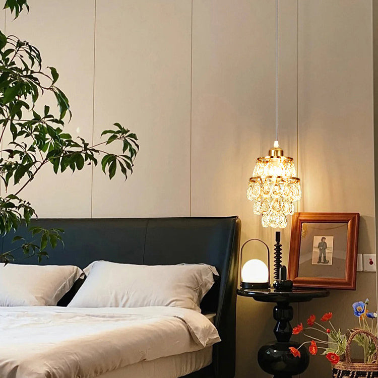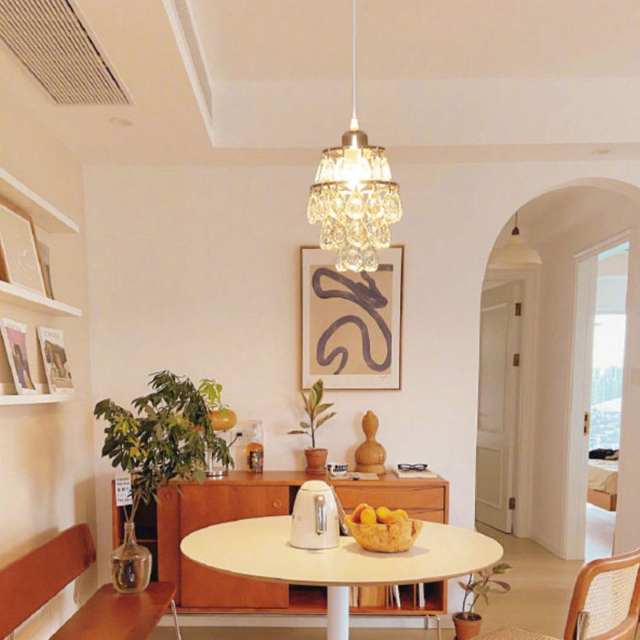 Modern Luxury Round Teardrop Crystal Iron 1-Light Pendant Light For Living Room
