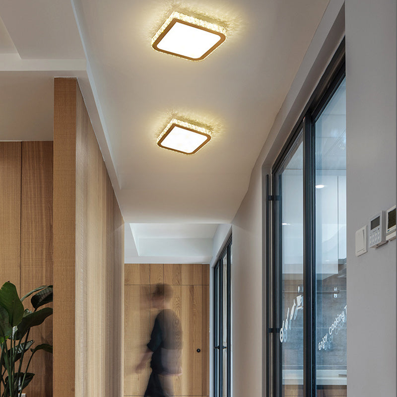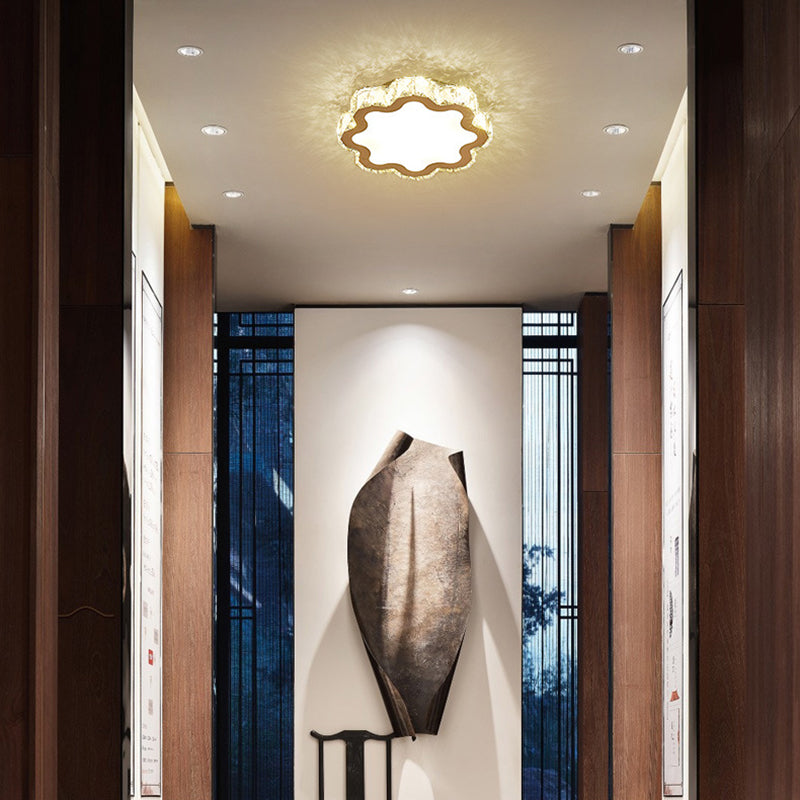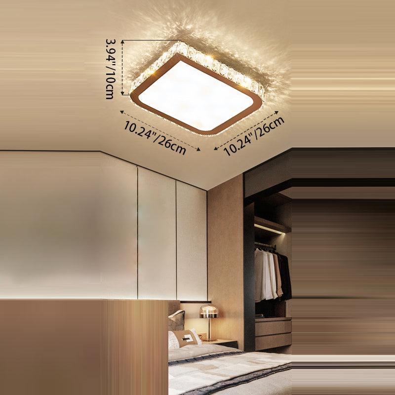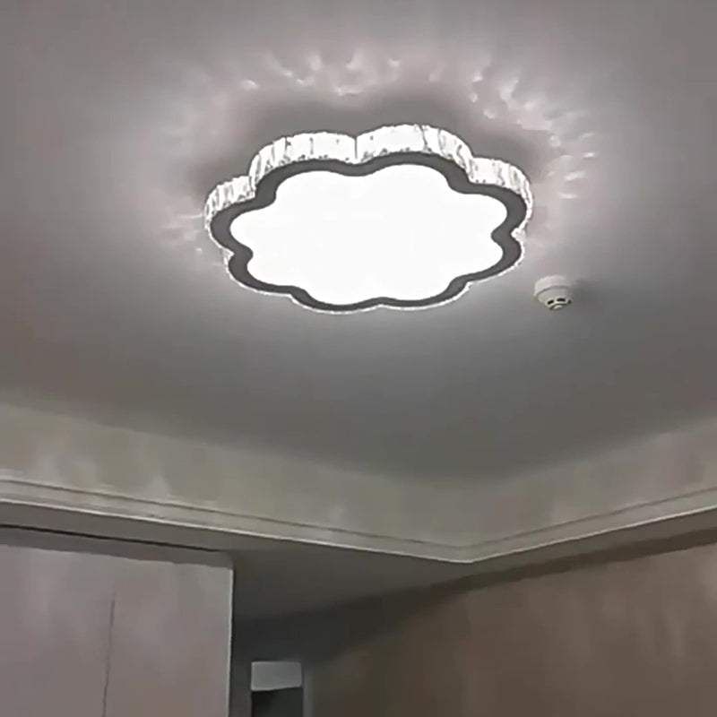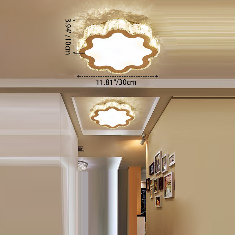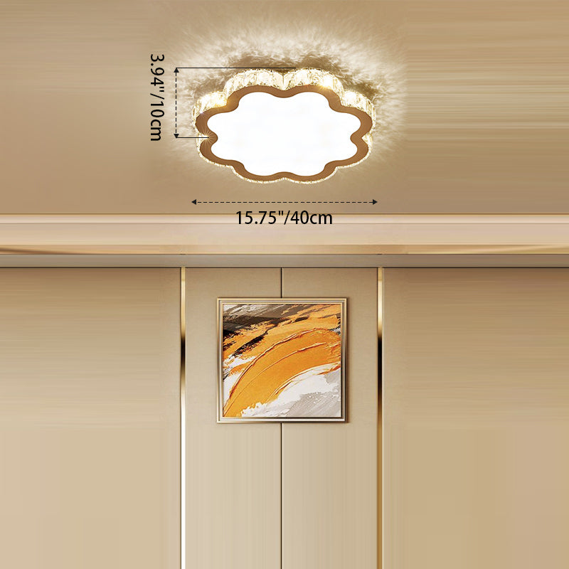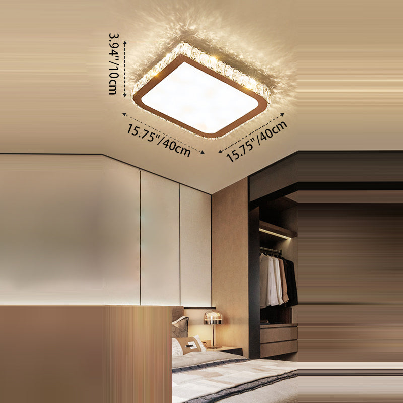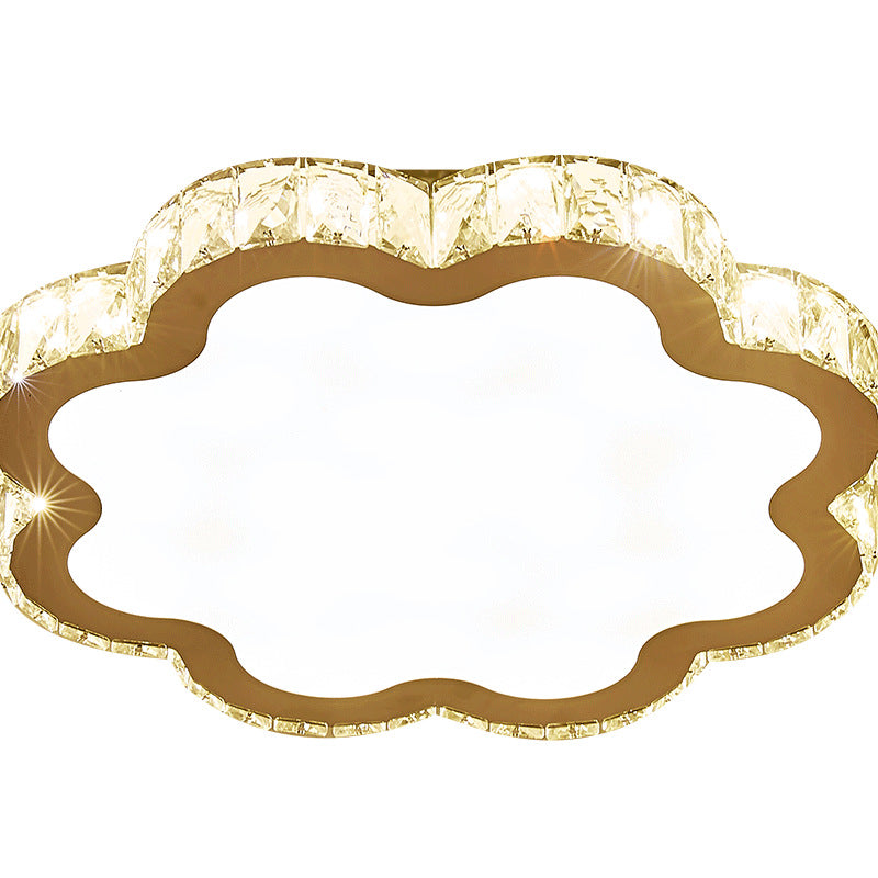 Modern Luxury Square Flower Crystal Stainless Steel LED Flush Mount Ceiling Light For Living Room