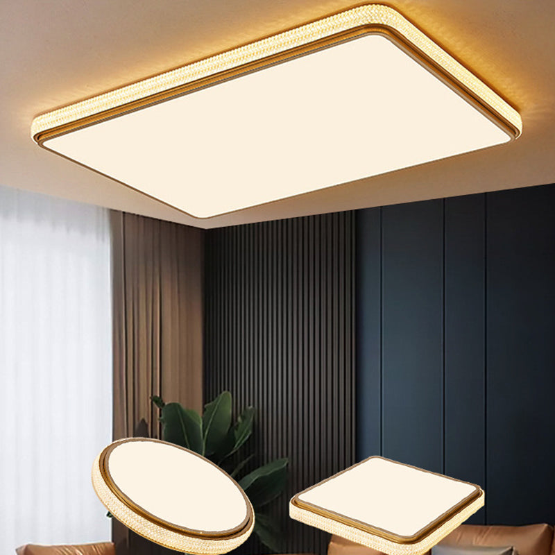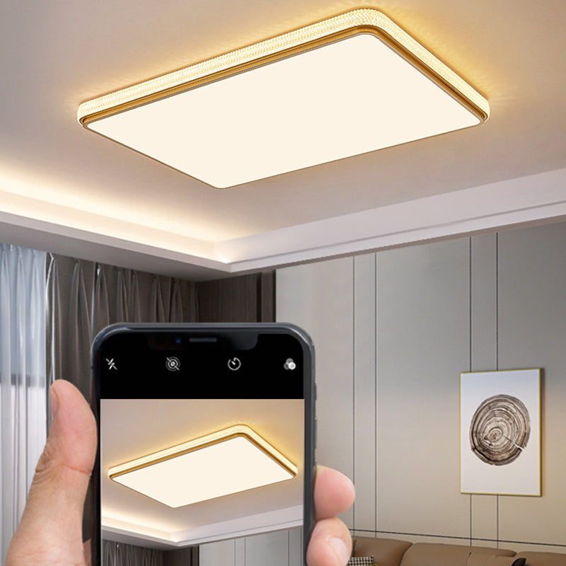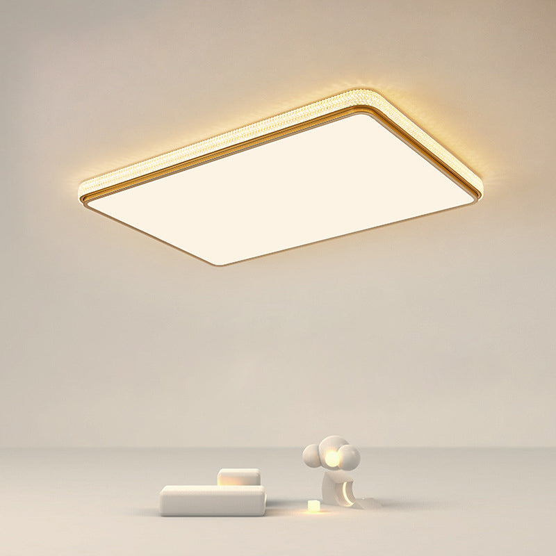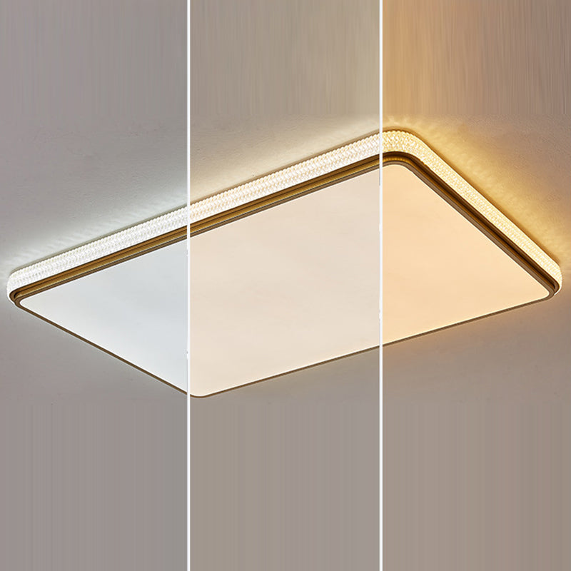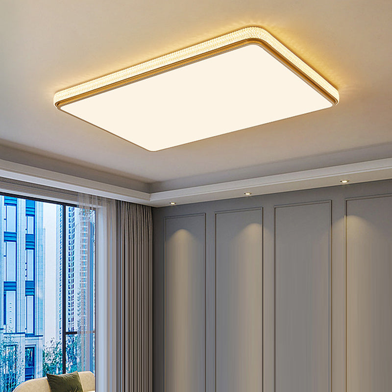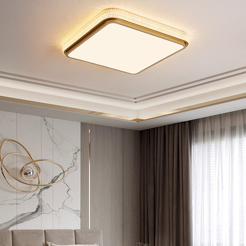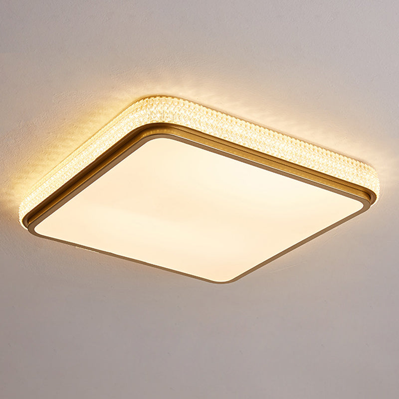 Modern Luxury Square Rectangle Crystal Acrylic Iron LED Flush Mount Ceiling Light For Living Room