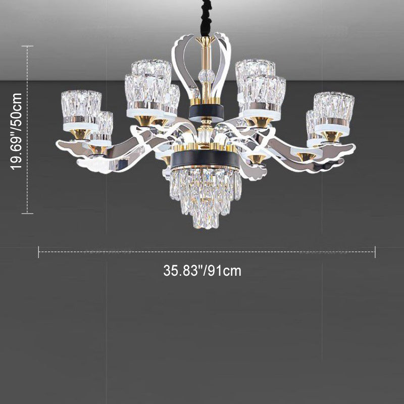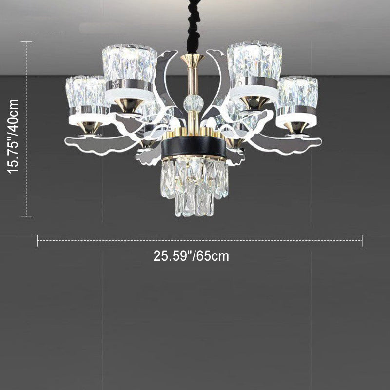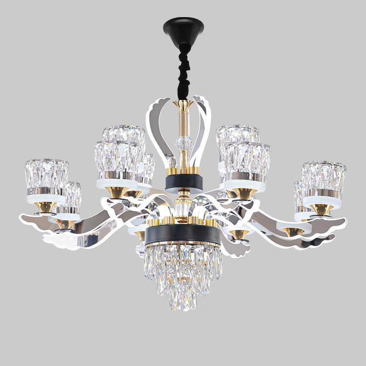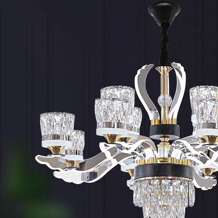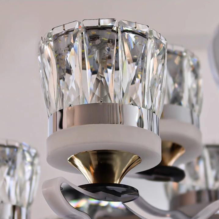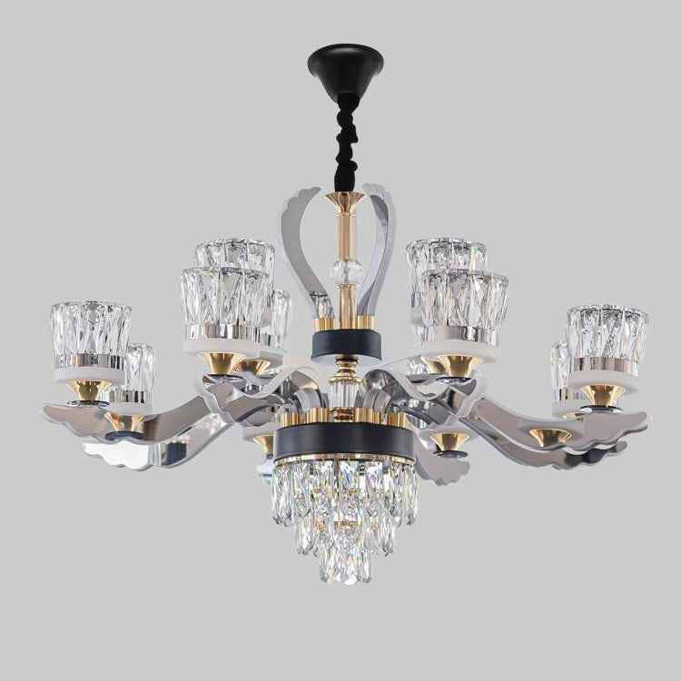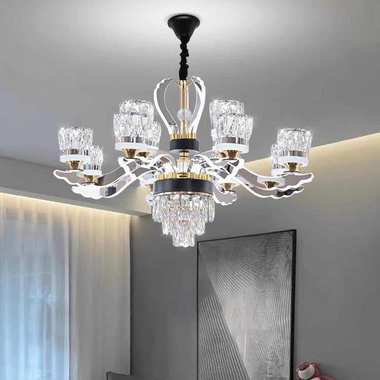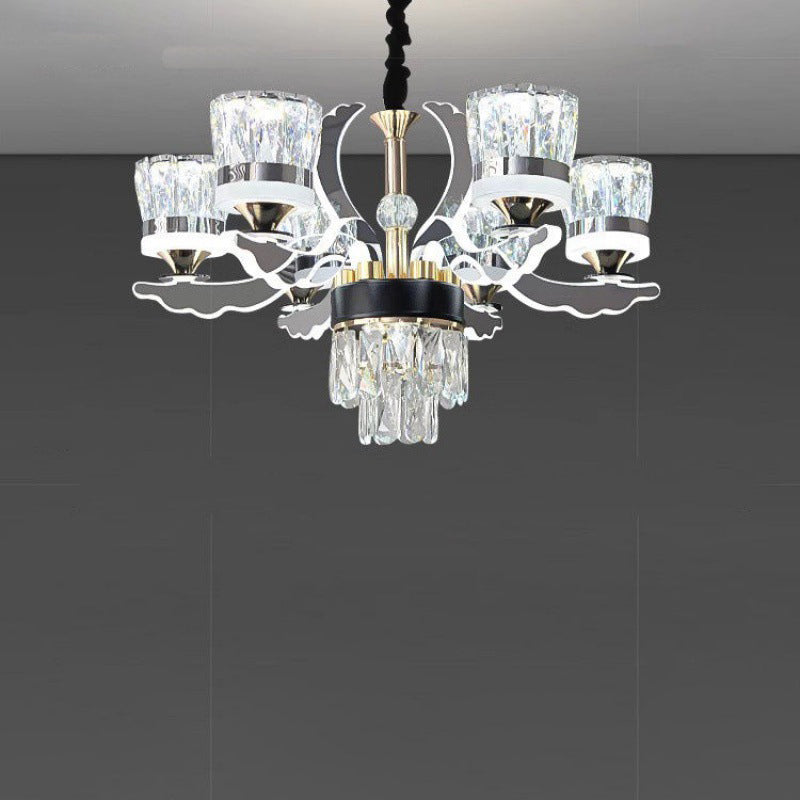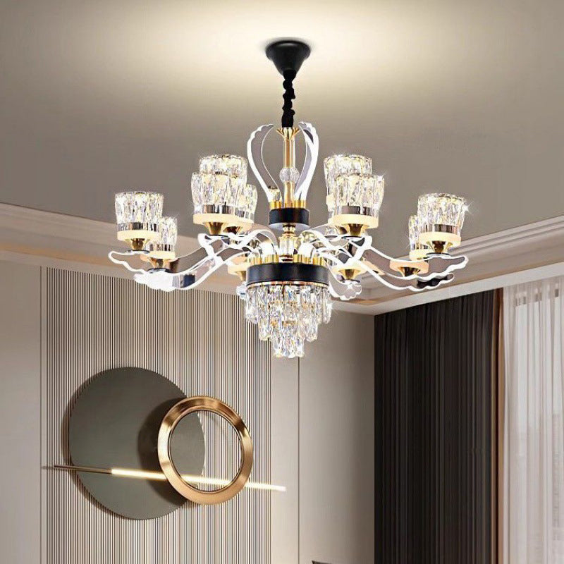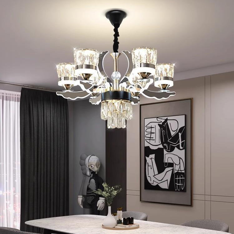 Modern Luxury Stainless Steel Acrylic Crystal Cylinder Lampshade LED Chandelier For Dining Room