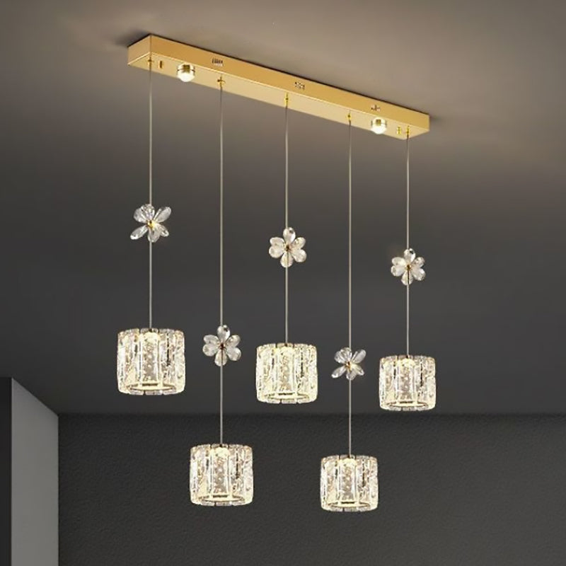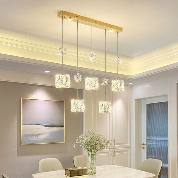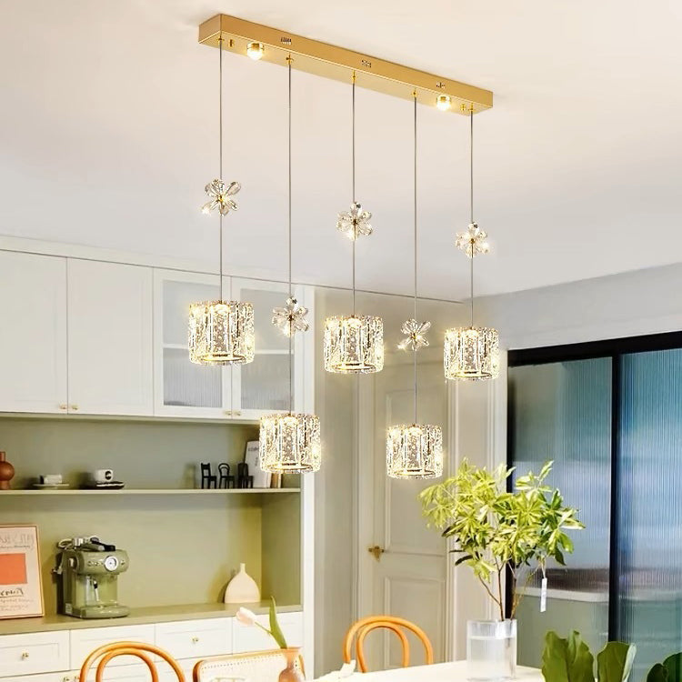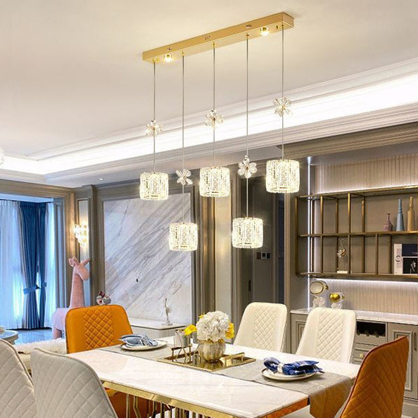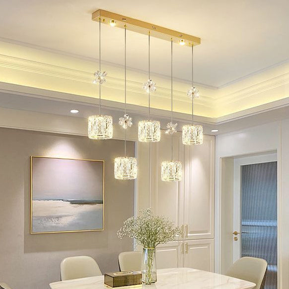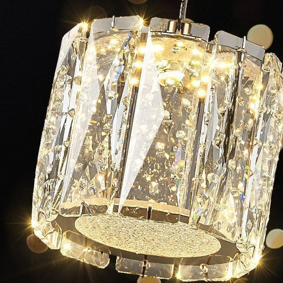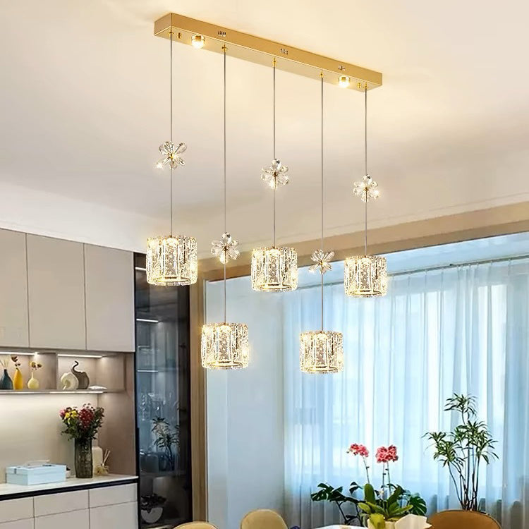 Modern Luxury Stainless Steel Crystal Cylinder LED Island Light Chandelier For Living Room