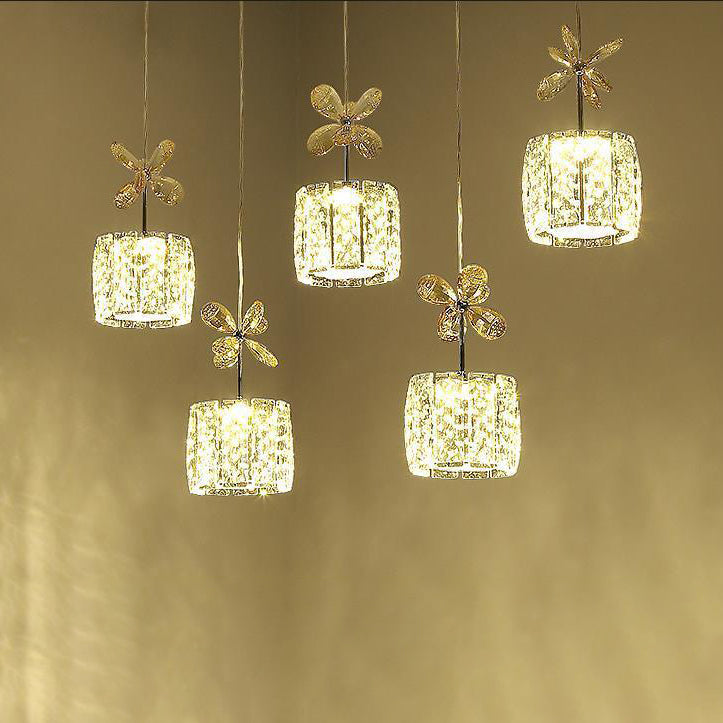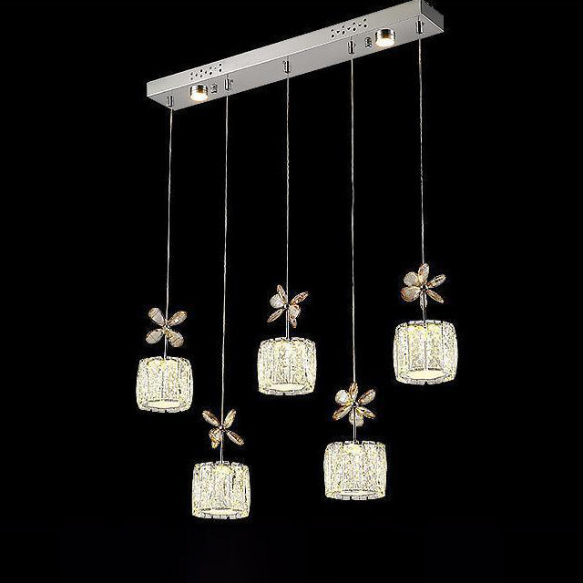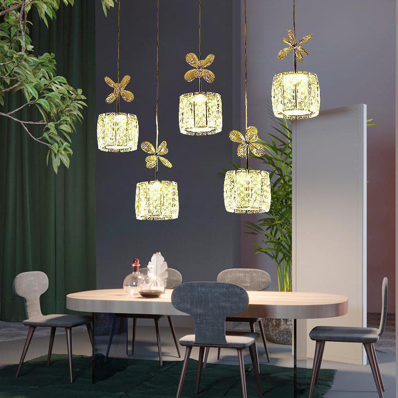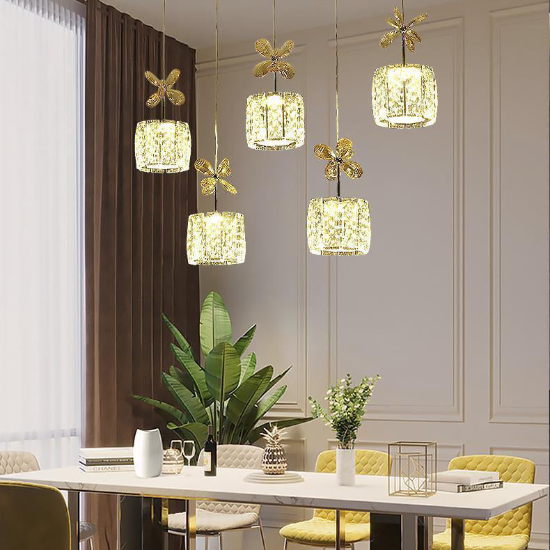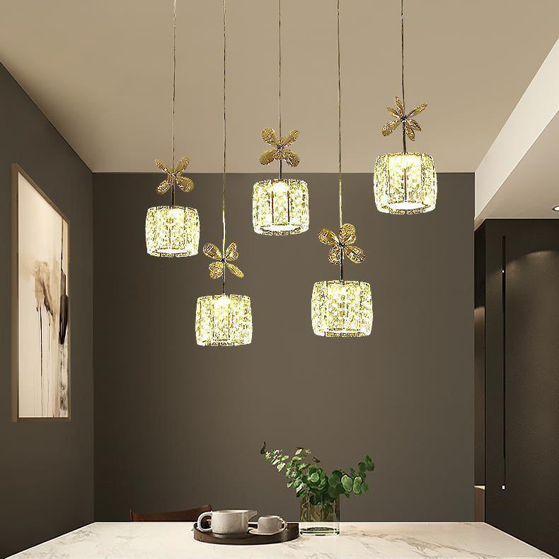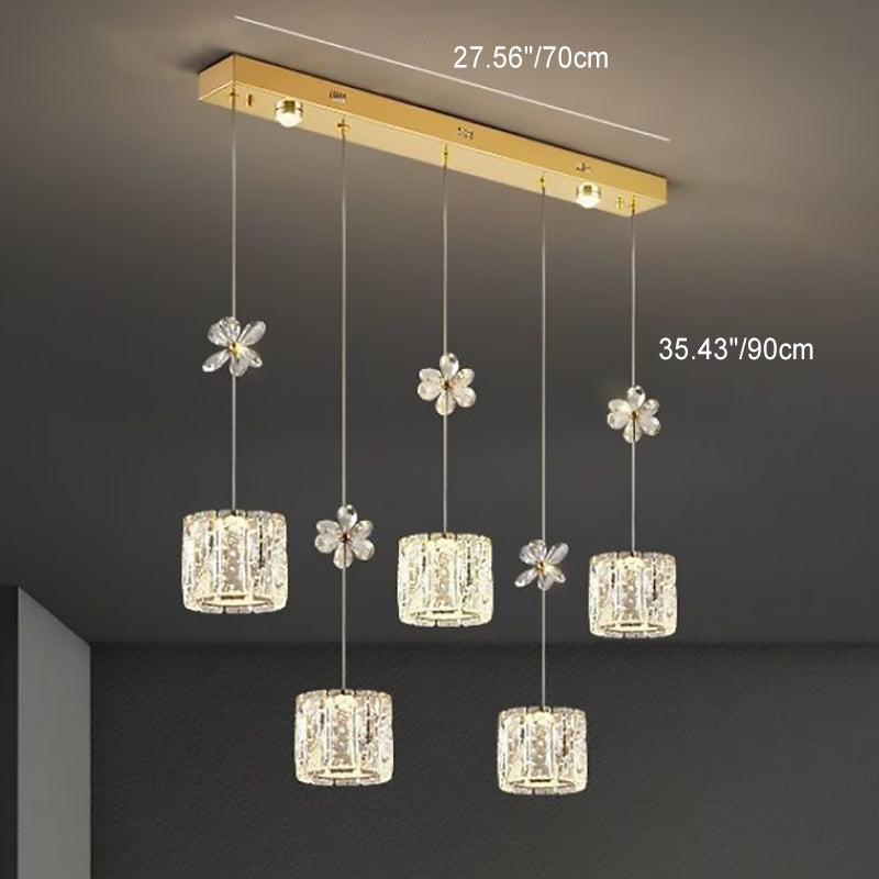 Modern Luxury Stainless Steel Crystal Cylinder LED Island Light Chandelier For Living Room