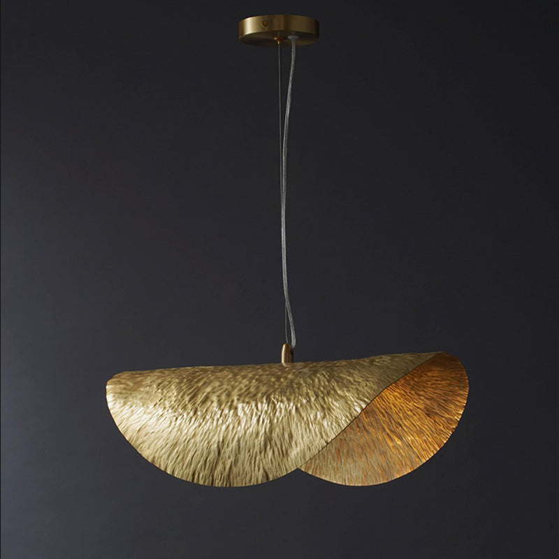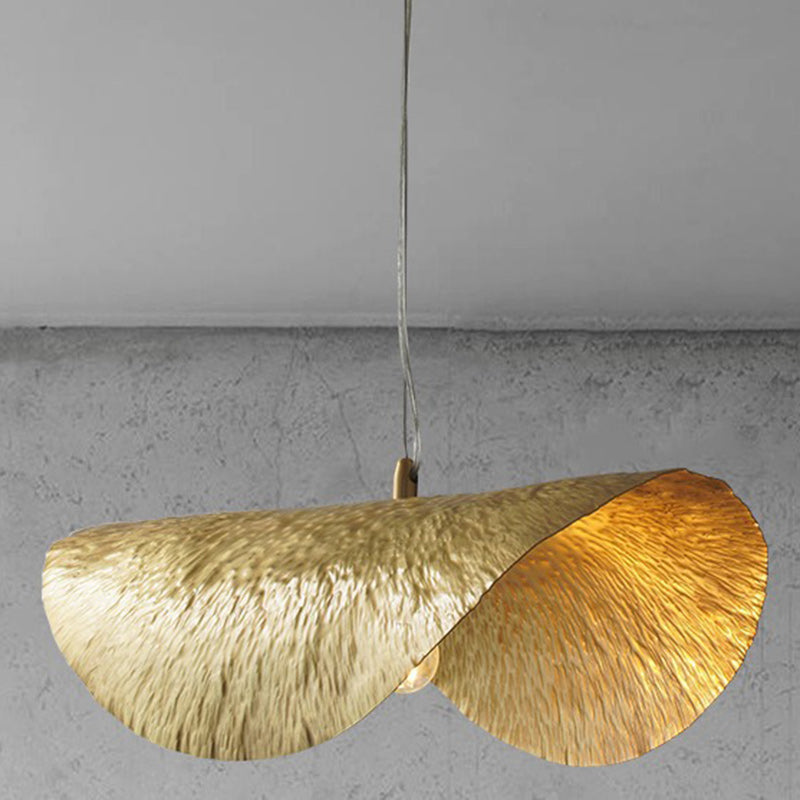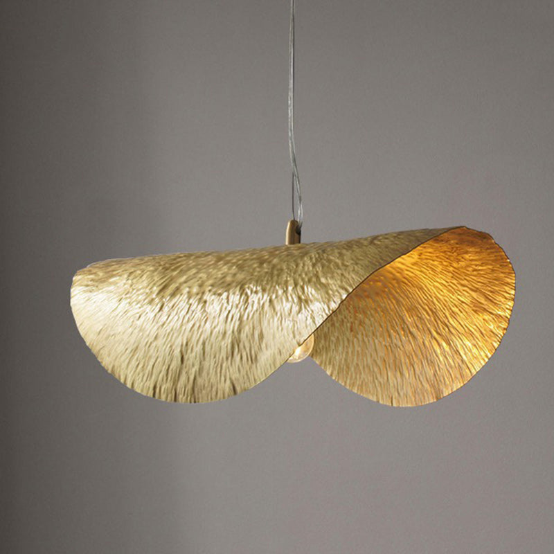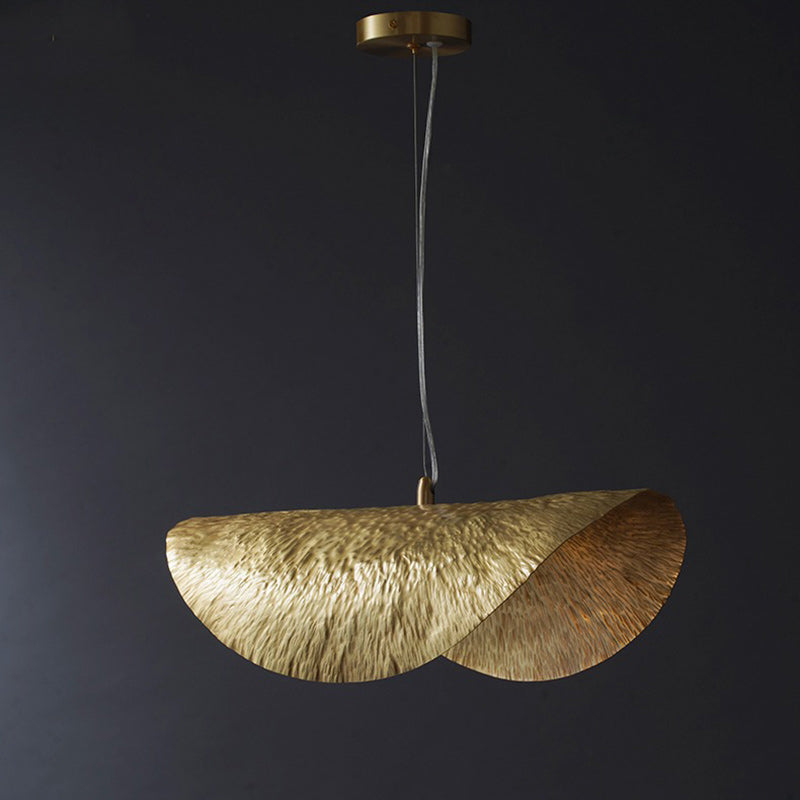 Modern Mid-century Brass Hat Lotus Leaf Symmetrical 1-Light Pendant Light For Living Room