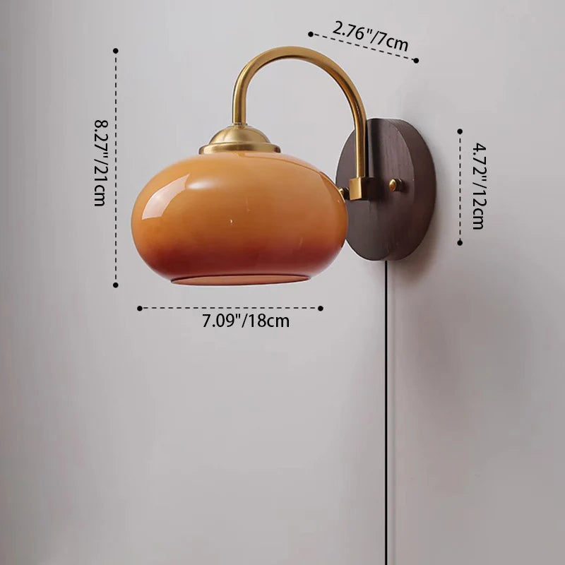 Modern Mid-Century Cream Round Oval Ash Wood Glass 1-Light Wall Sconce Lamp For Bedroom
