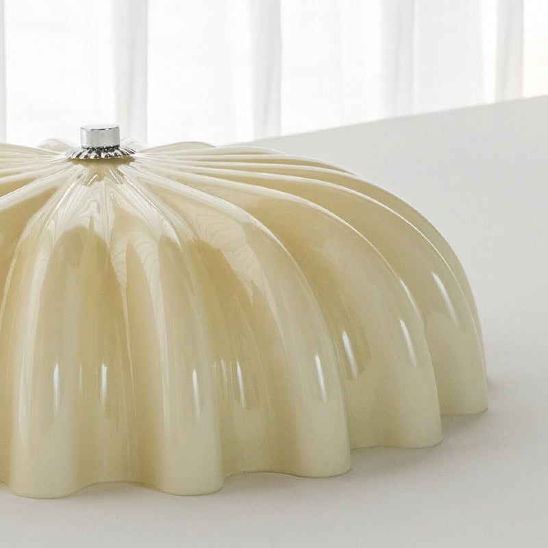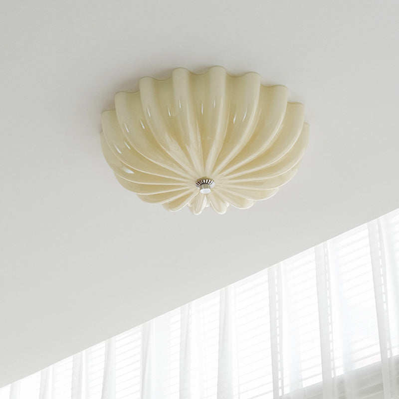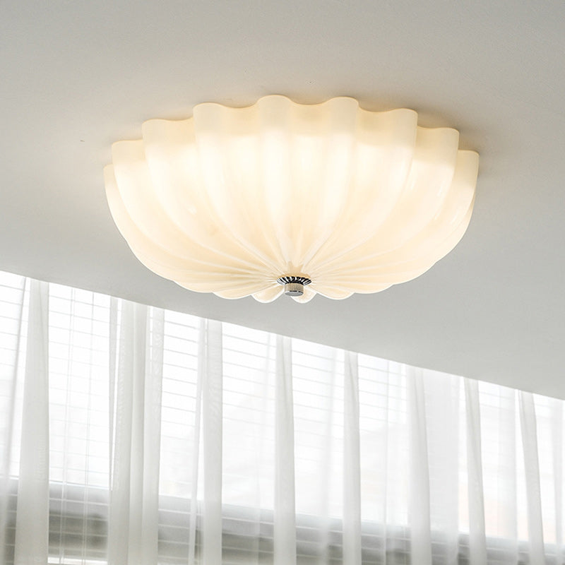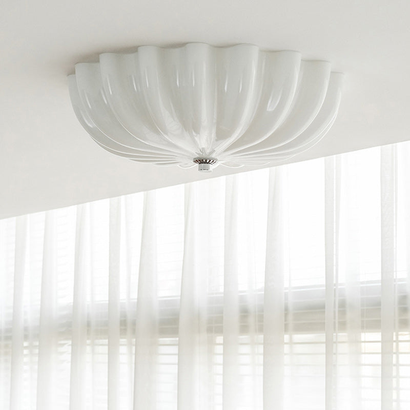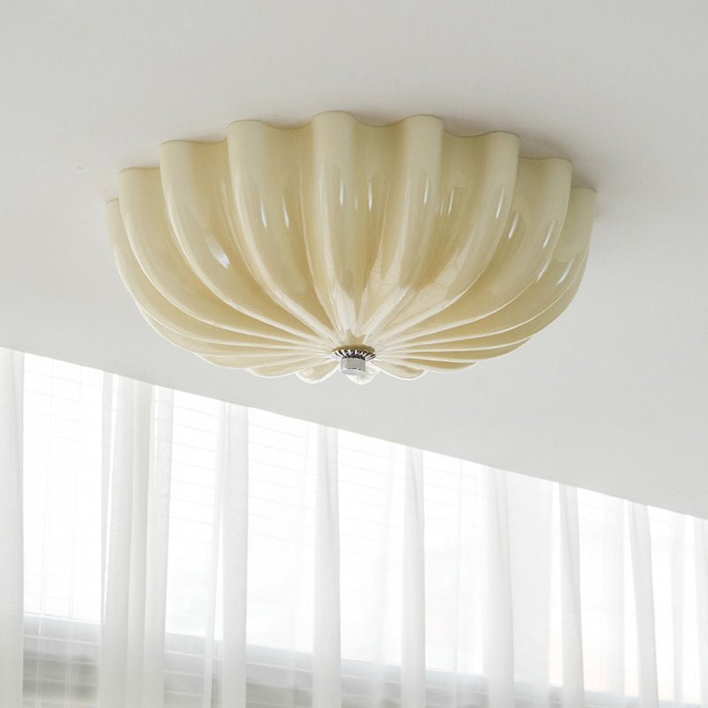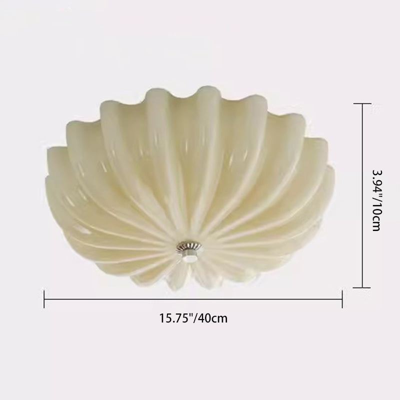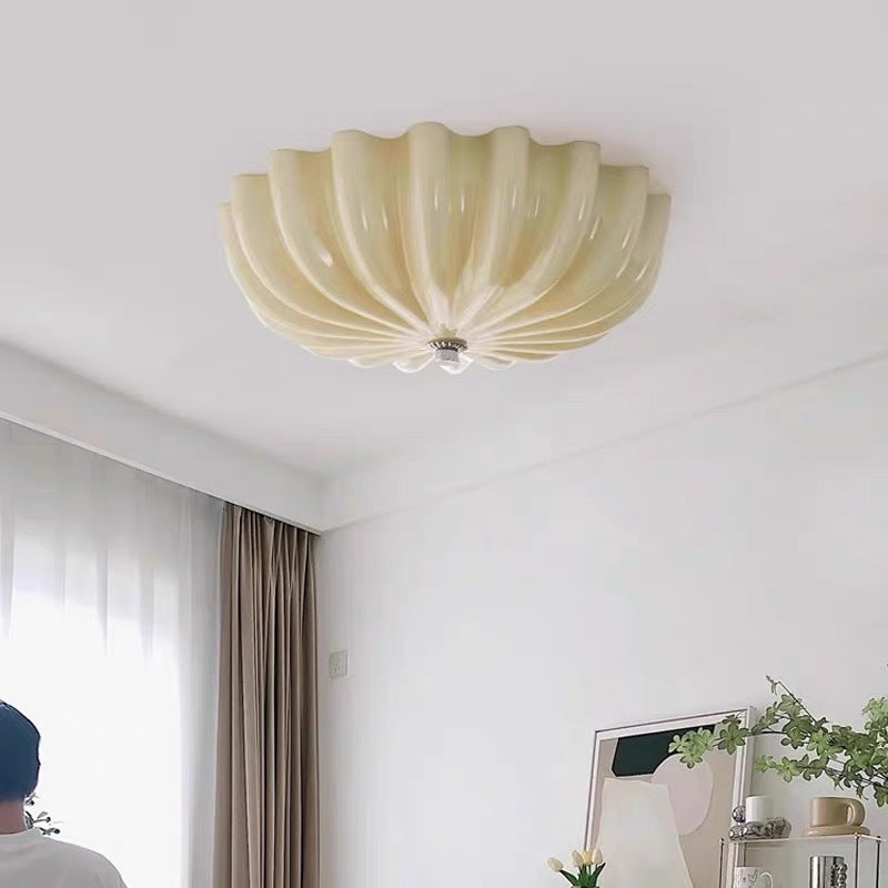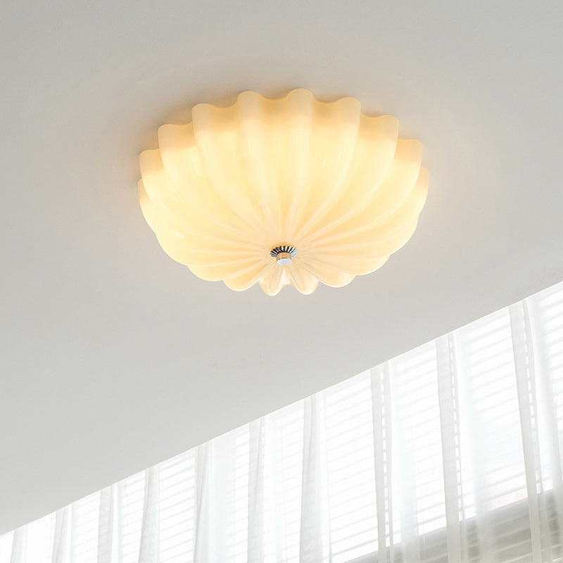 Modern Mid-Century Cream Round Petal Hardware Glass LED Flush Mount Ceiling Light For Bedroom