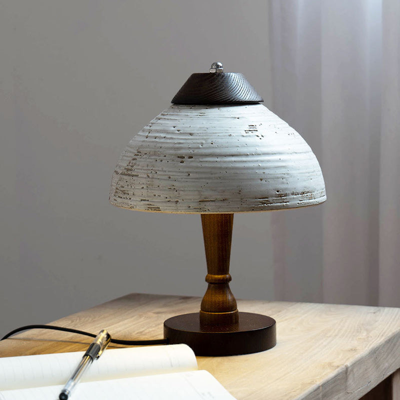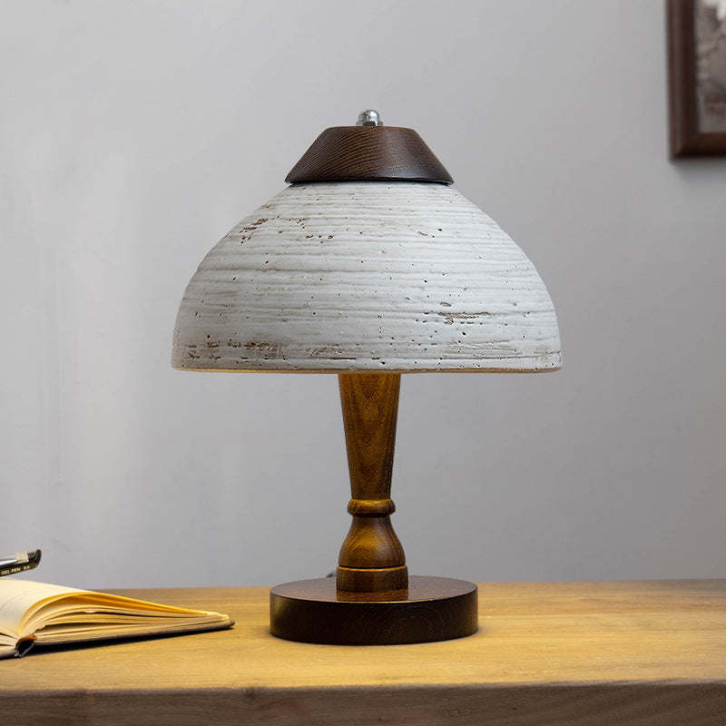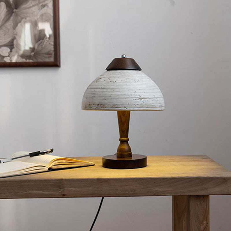 Modern Mid-Century Dome Ceramic Wood LED Table Lamp For Bedroom
