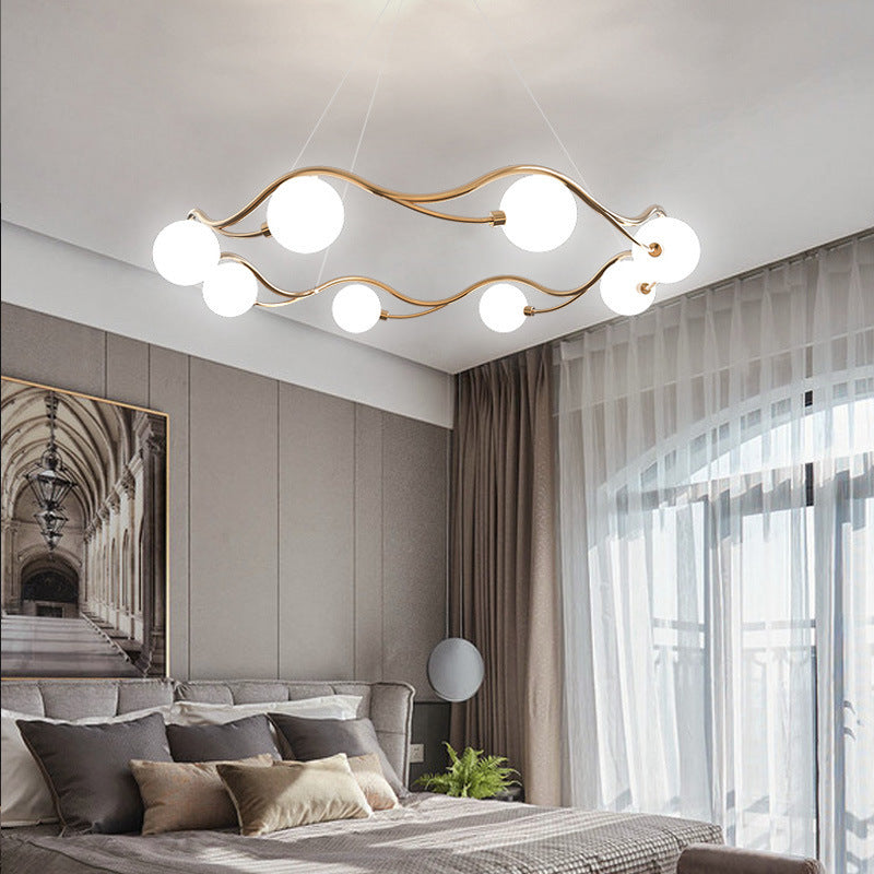 Modern Mid-Century Ring Round Orb Metal Glass 8/10 Light Chandelier For Bedroom