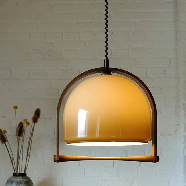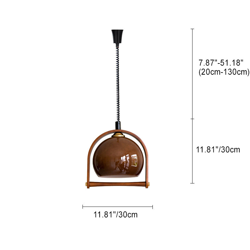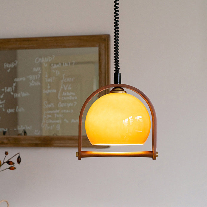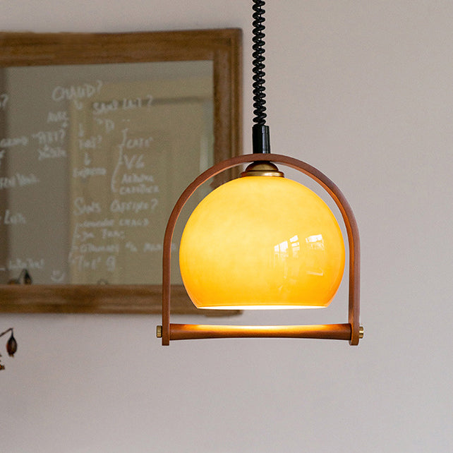 Modern Mid-Century Round Wood Glass 1-Light Pendant Light For Bedroom