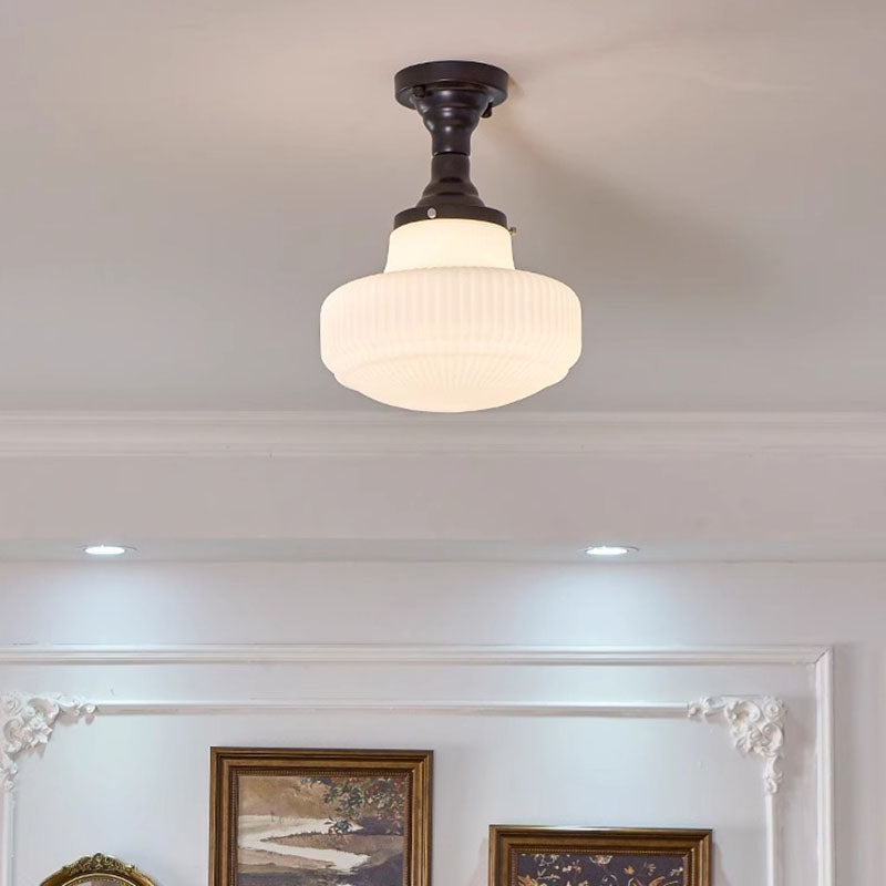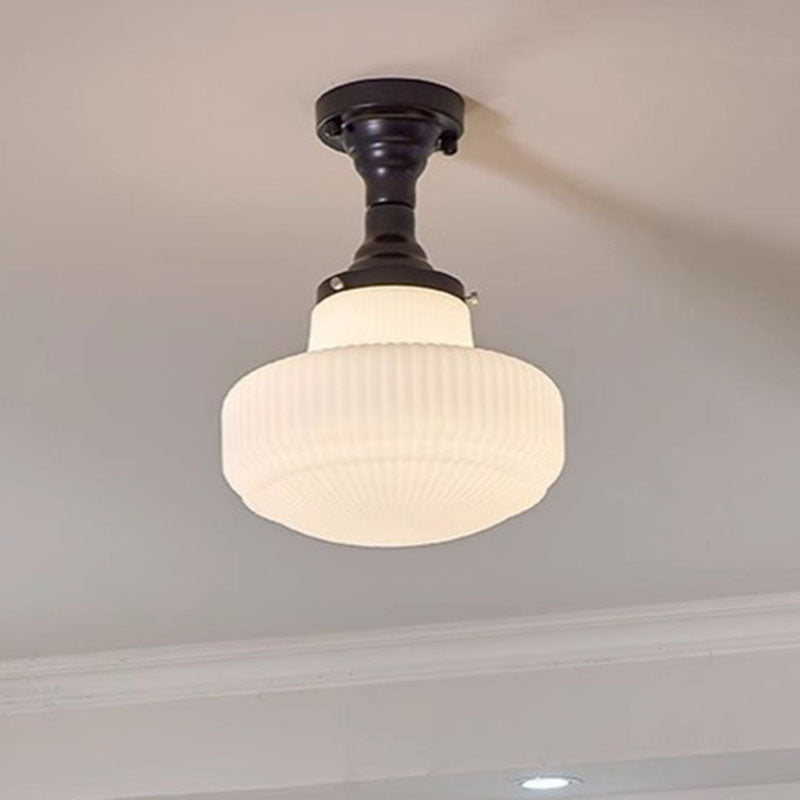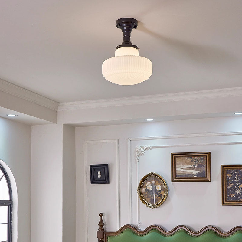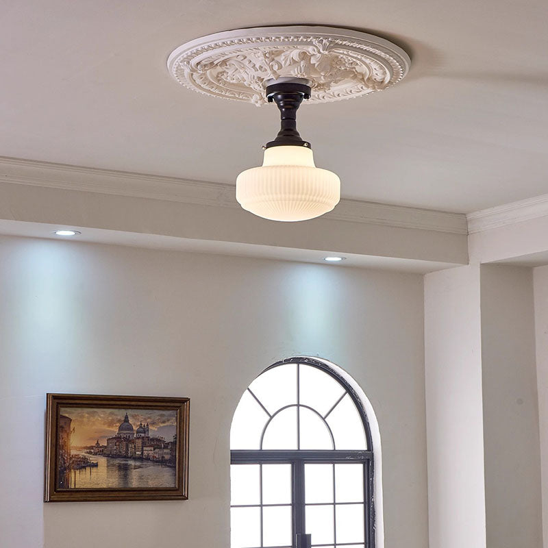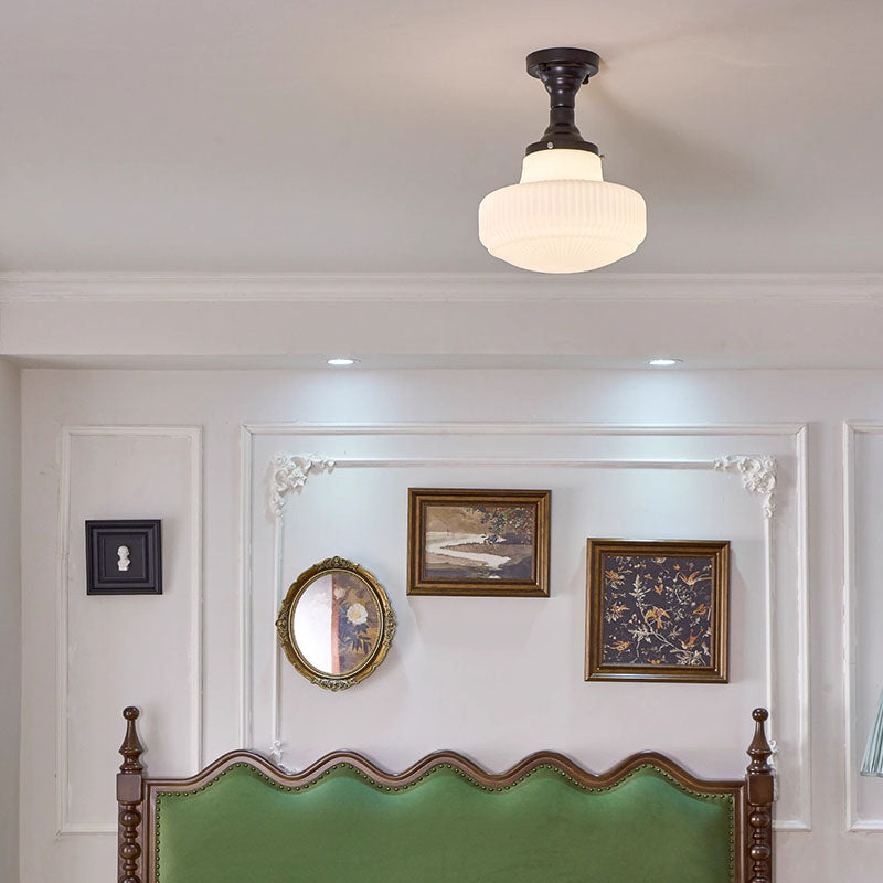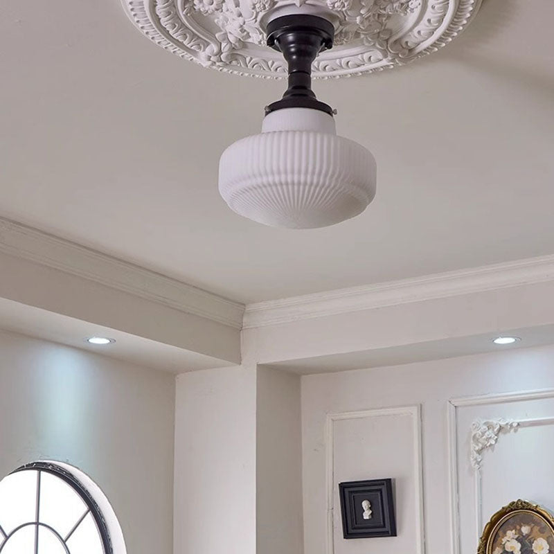 Traditional French Iron Glass Round 1-Light Semi-Flush Mount Ceiling Light For Living Room