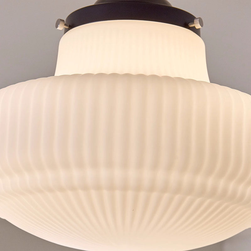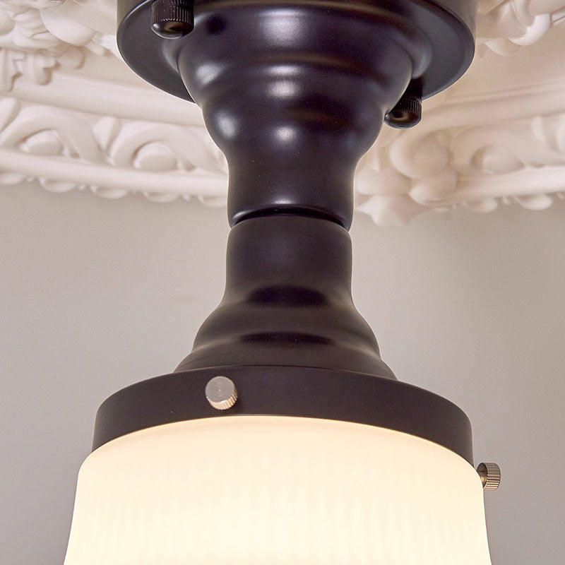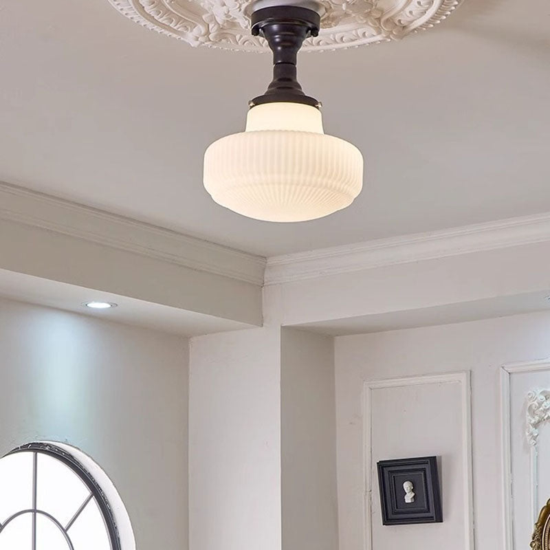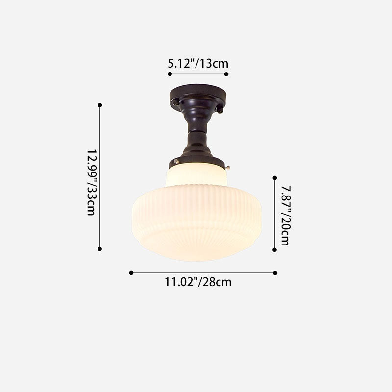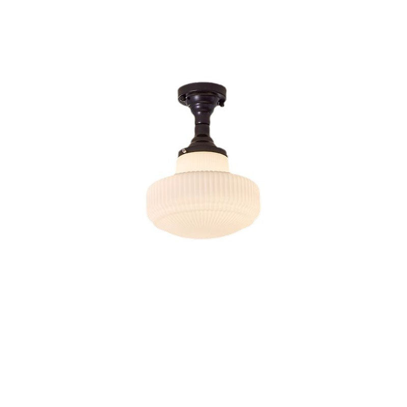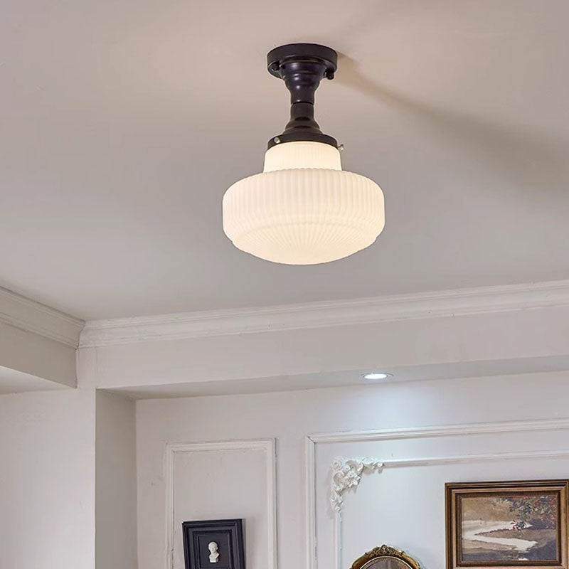 Traditional French Iron Glass Round 1-Light Semi-Flush Mount Ceiling Light For Living Room