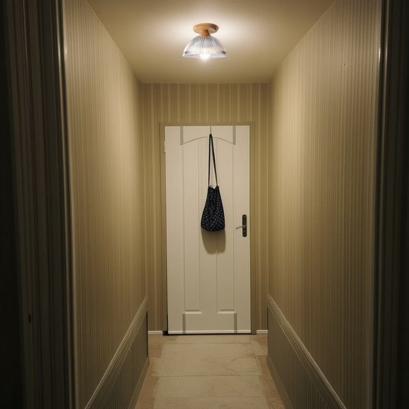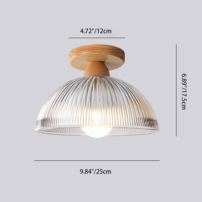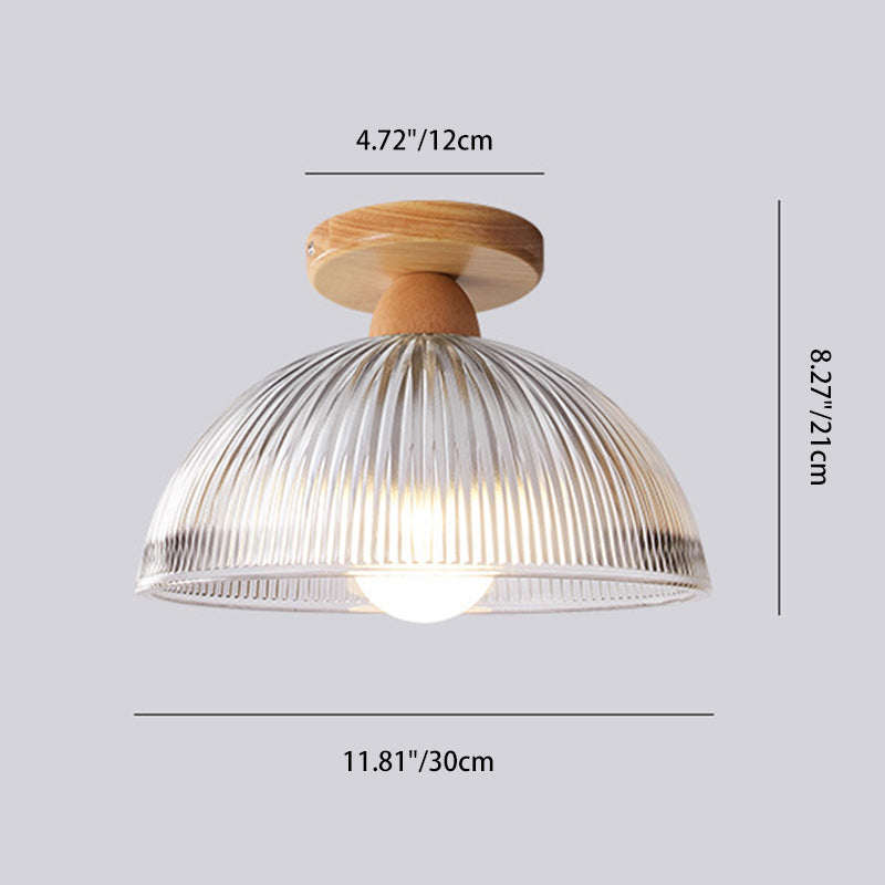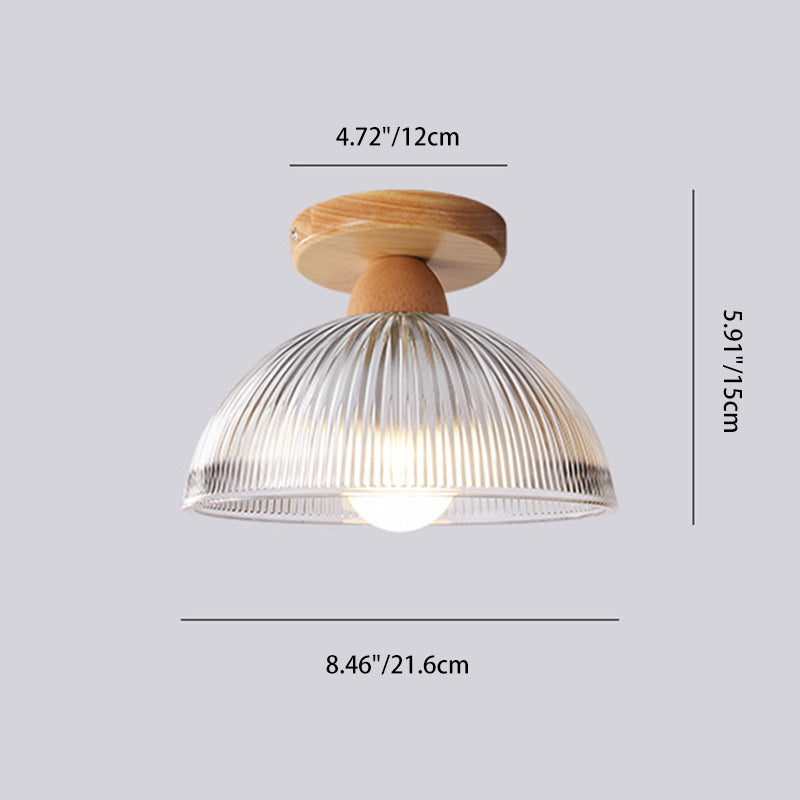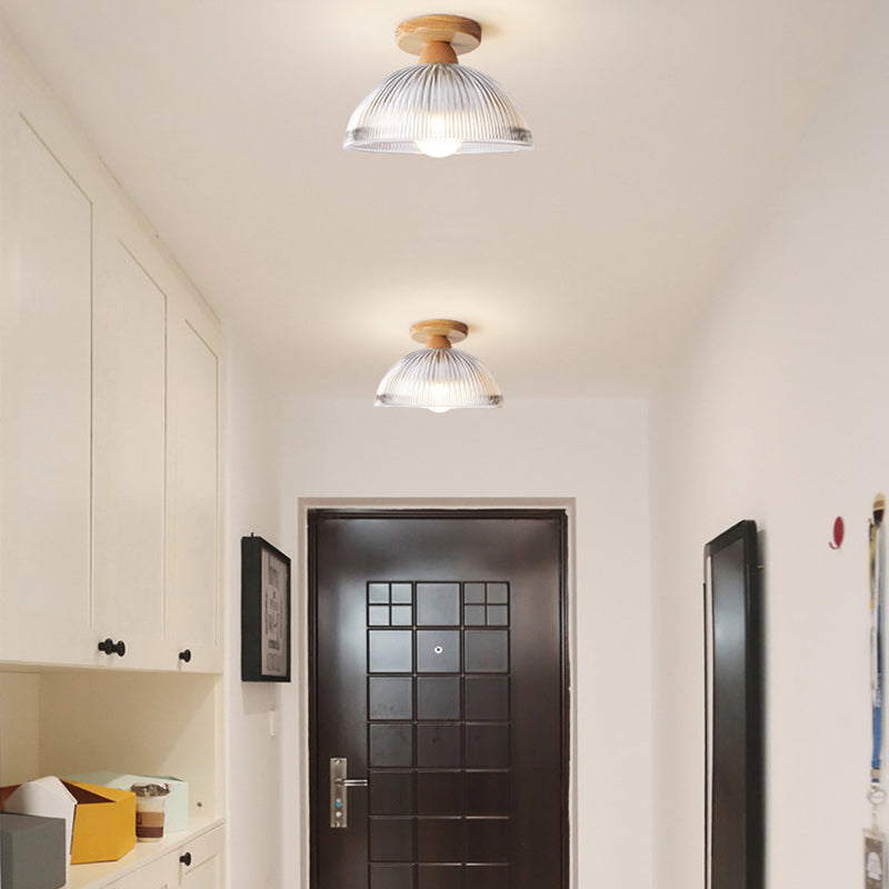 Modern Minimalist Bowl Glass Wood 1-Light Semi-Flush Mount Ceiling Light For Hallway
