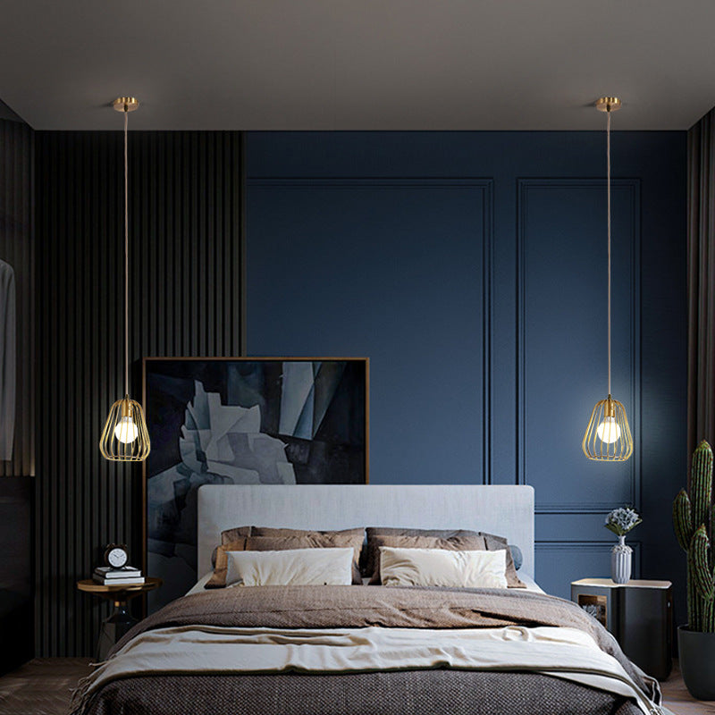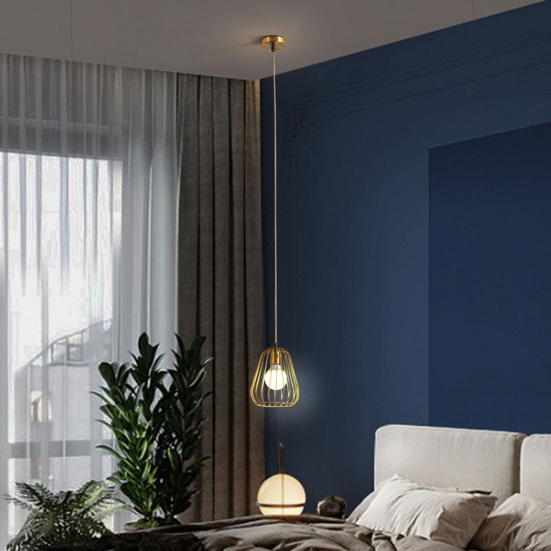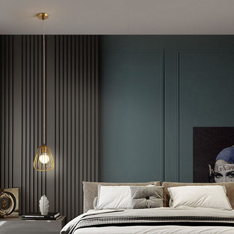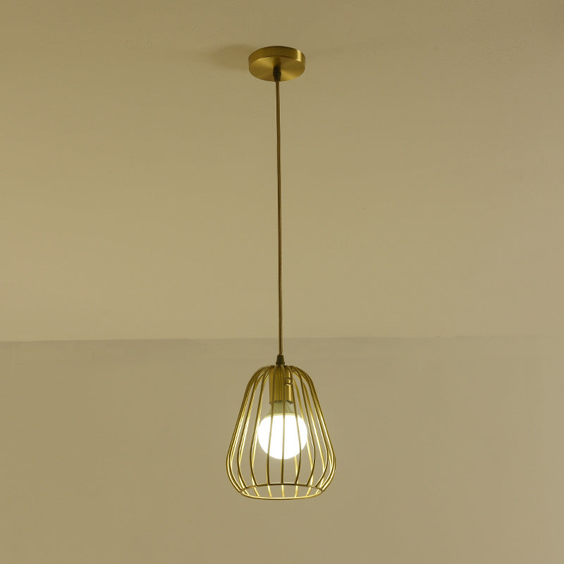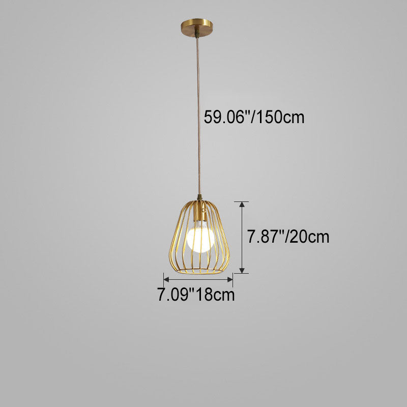 Modern Minimalist Brass Oval Cage 1-Light Pendant Light
