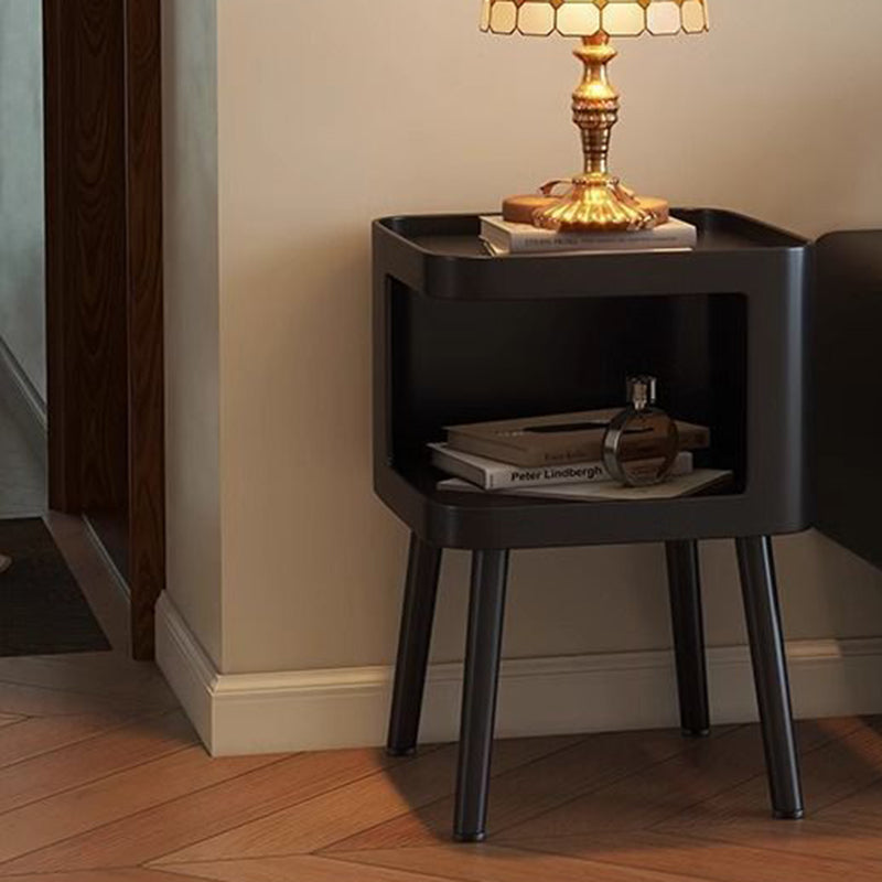 Modern Minimalist Carbon Steel Square 2-Tier Nightstand For Bedroom & Living Room