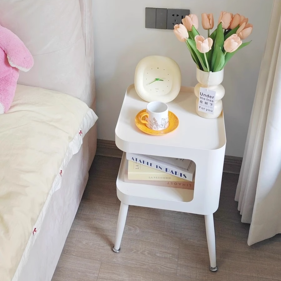 This modern minimalist 2-tier nightstand features a sleek square design made of durable carbon steel, ideal for small spaces in bedrooms or living rooms. Available in classic black or white, it's perfect for organized storage with a touch of vintage charm.