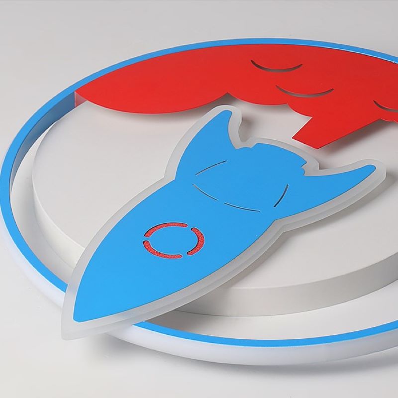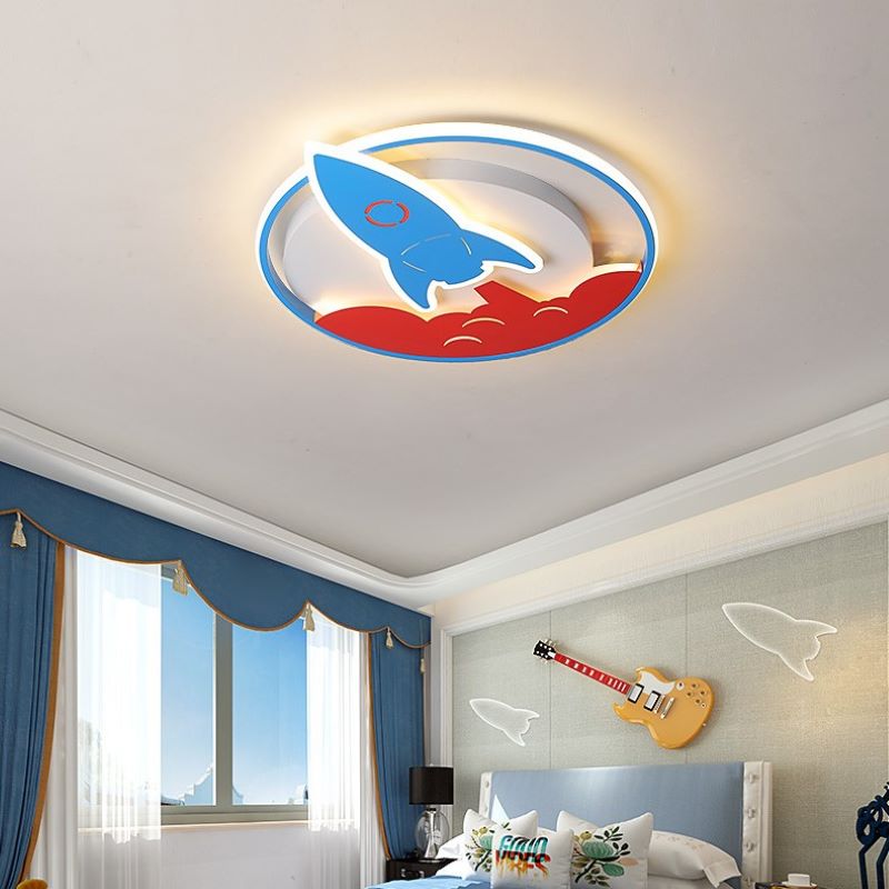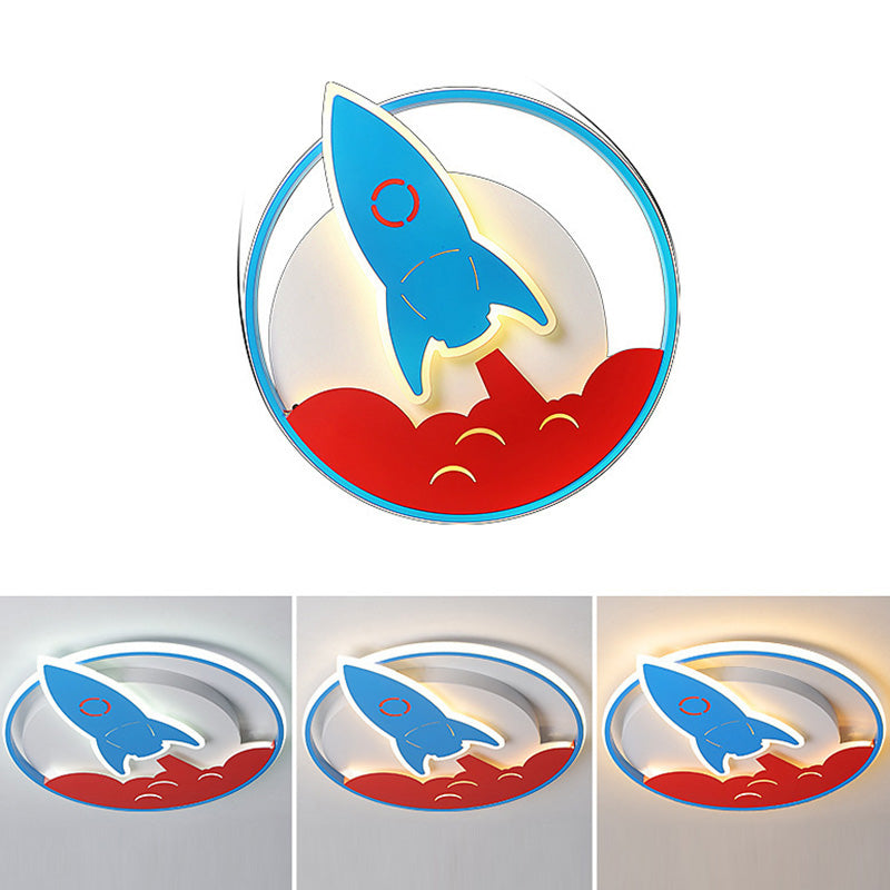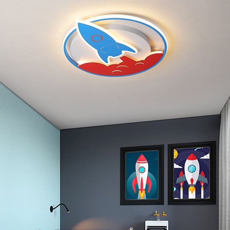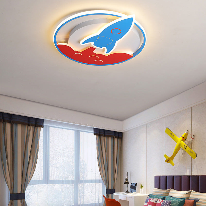 Modern Minimalist Cartoon Rocket Round Iron Aluminum Acrylic LED Flush Mount Ceiling Light For Bedroom