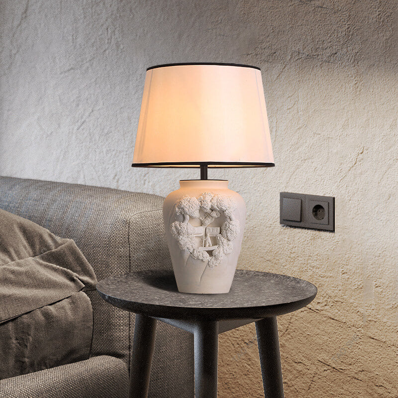 Modern Minimalist Carved Vase Base Ceramic Fabric 1-Light Table Lamp