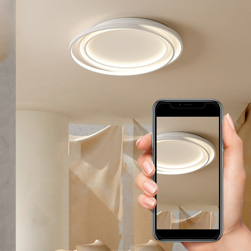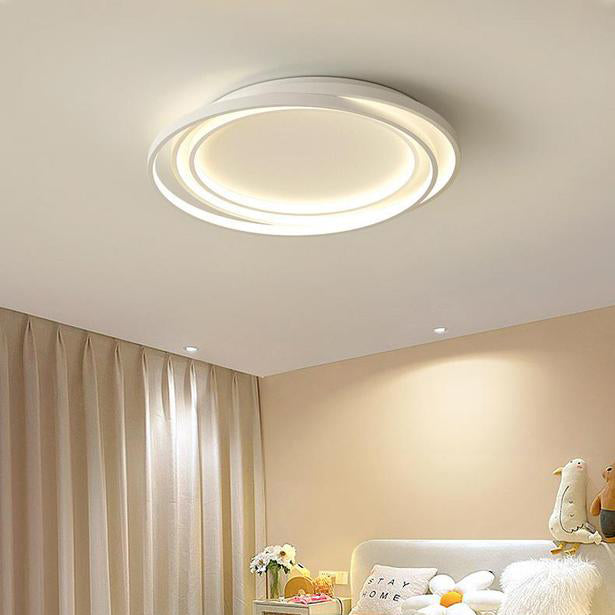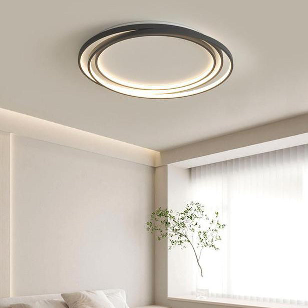 Modern Minimalist Circles Ring Silicone Iron LED Flush Mount Ceiling Light For Bedroom
