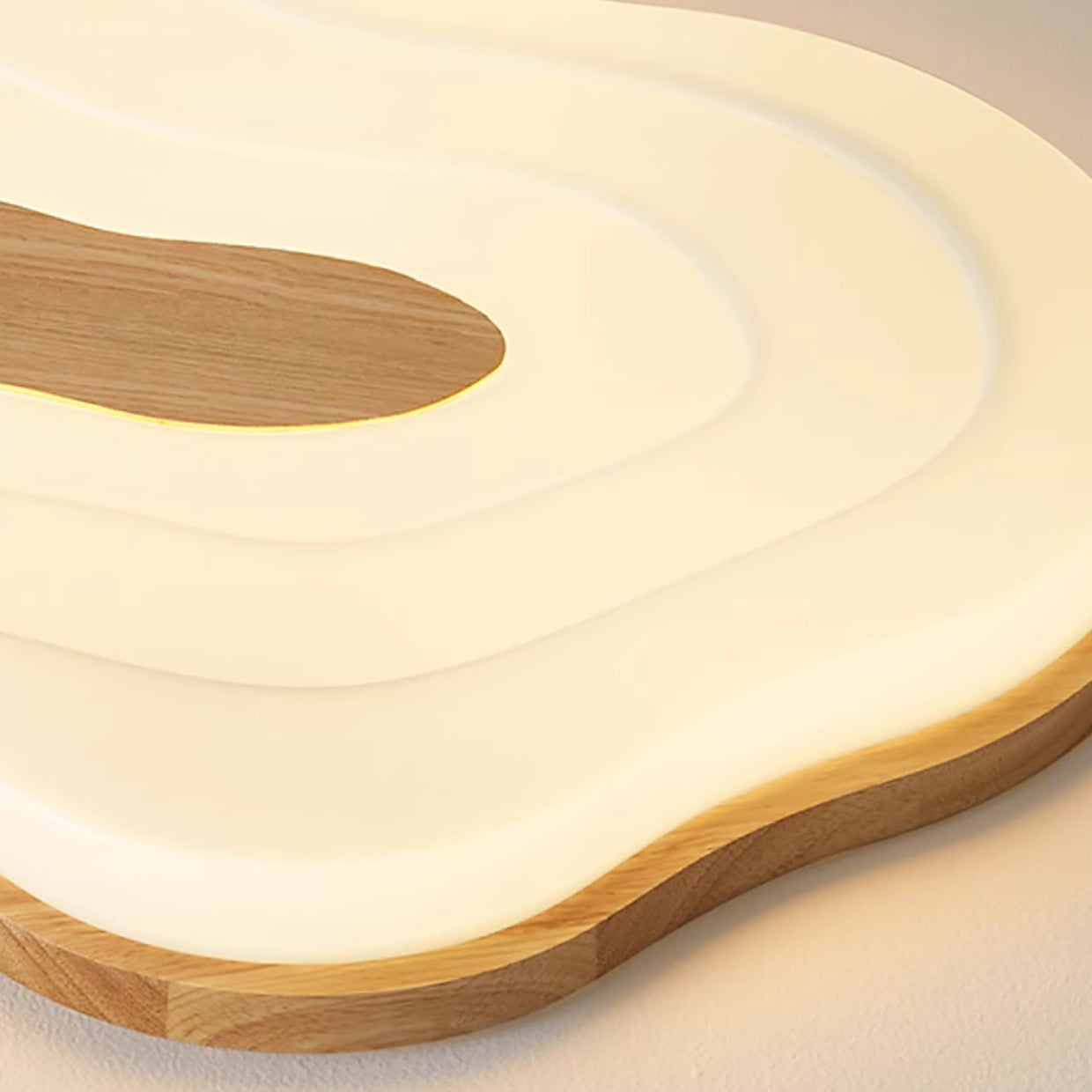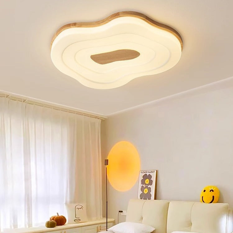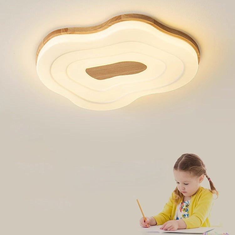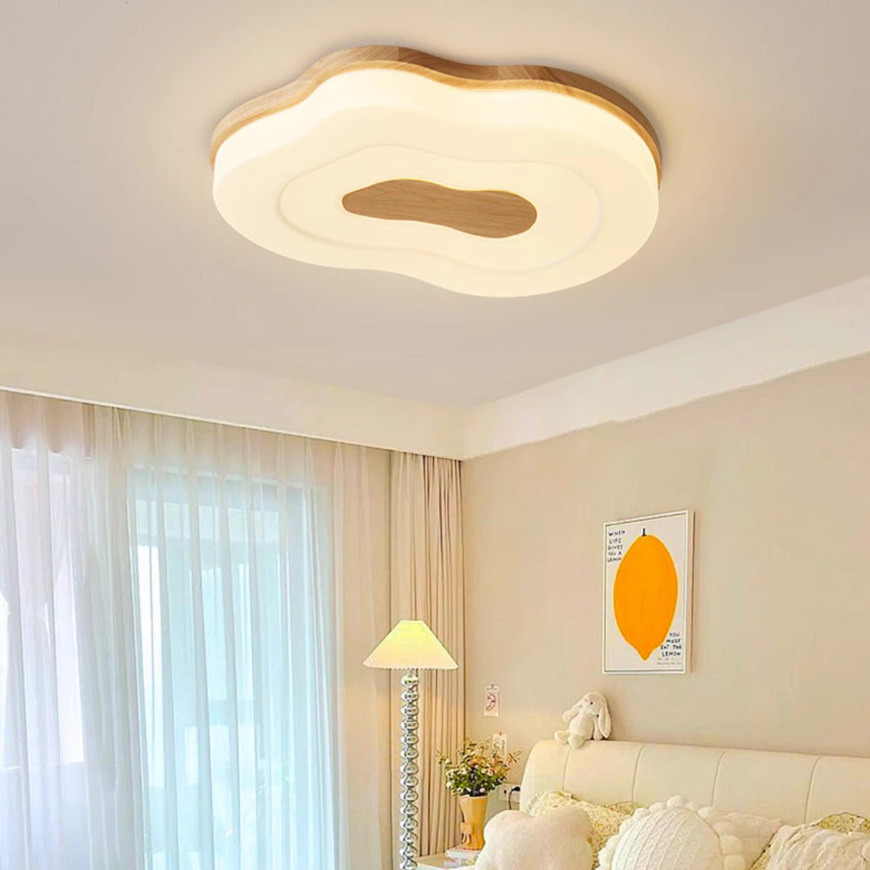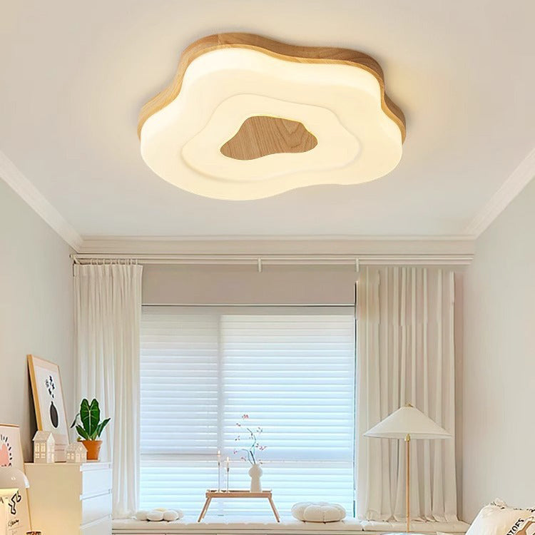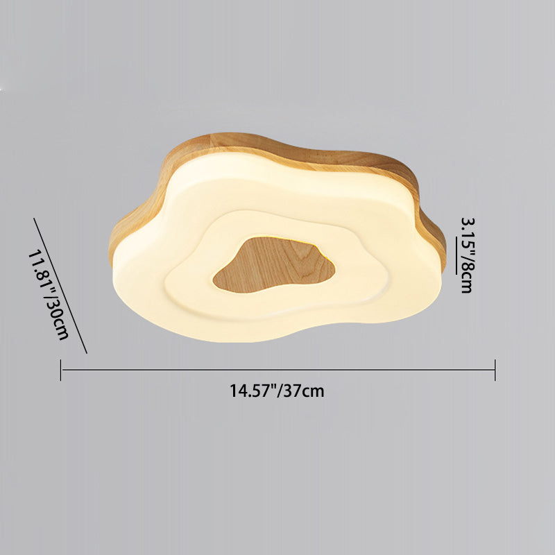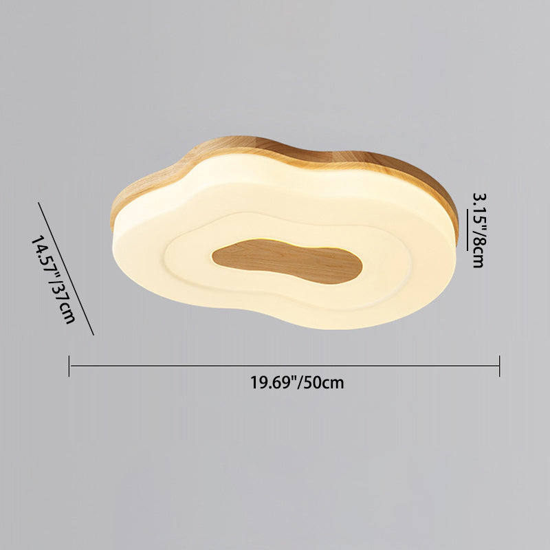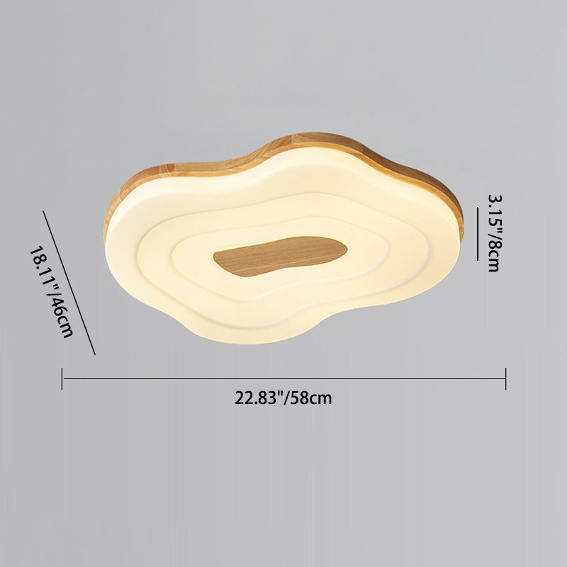 Modern Minimalist Cloud Dome Shape Rubberwood Acrylic LED Flush Mount Ceiling Light For Bedroom