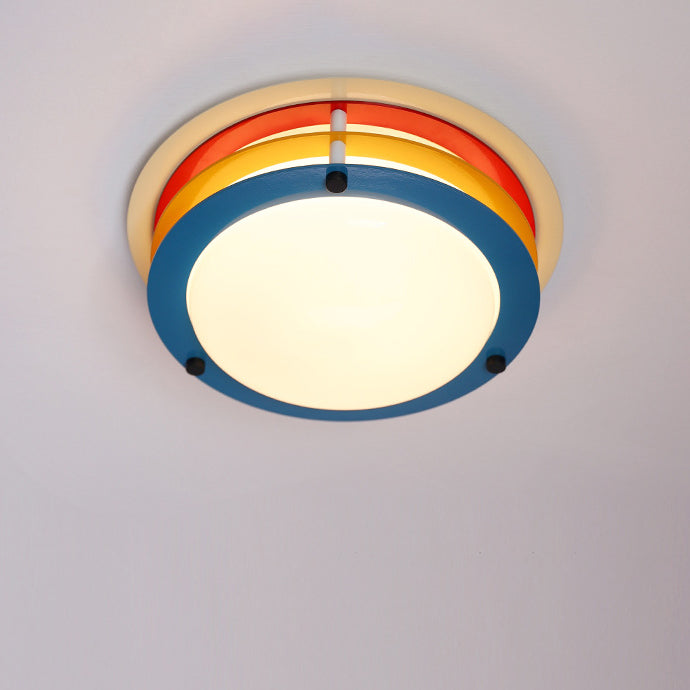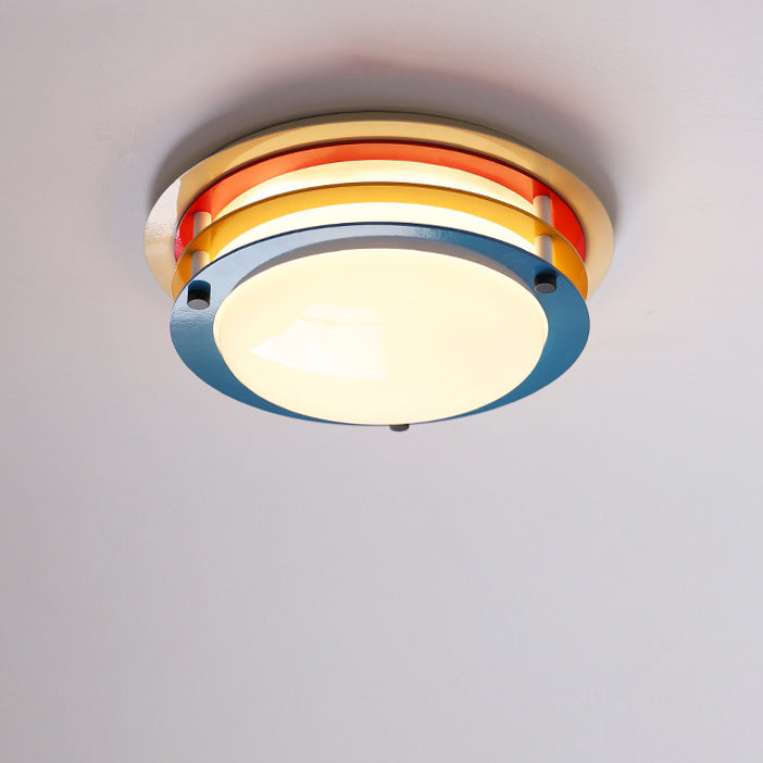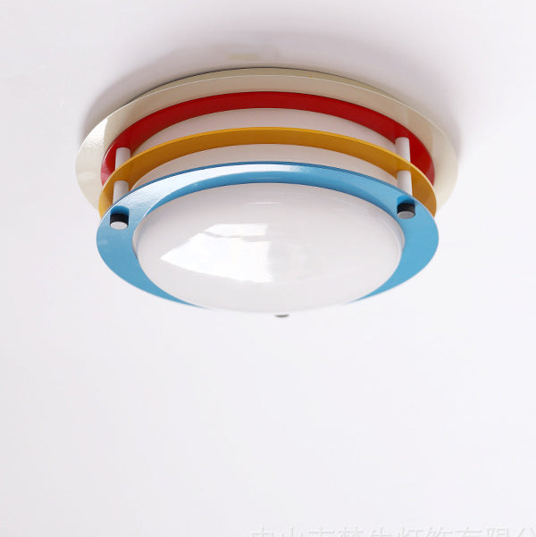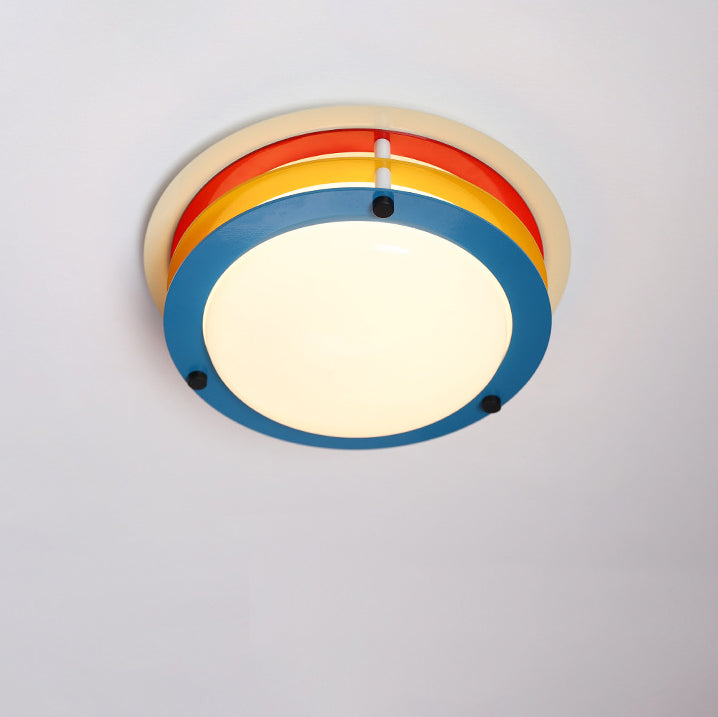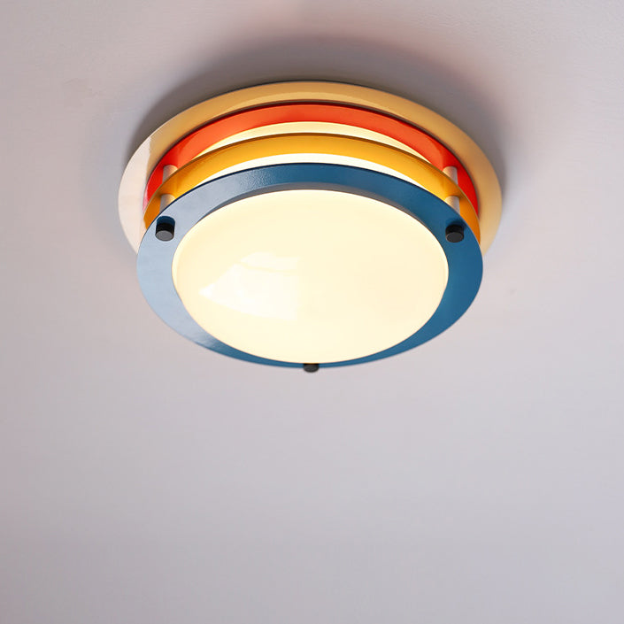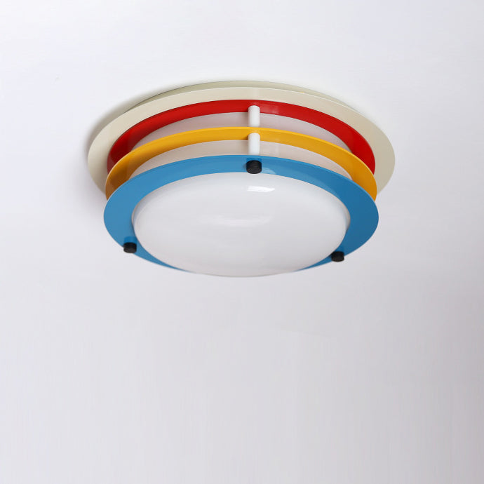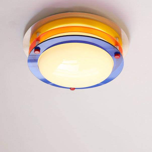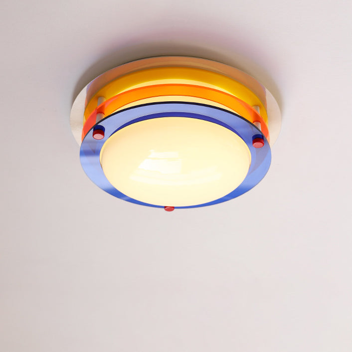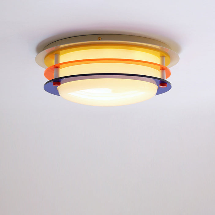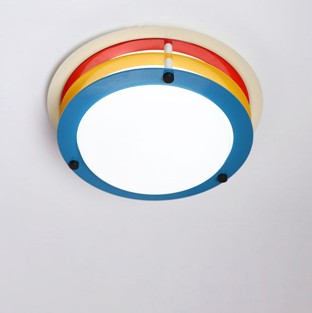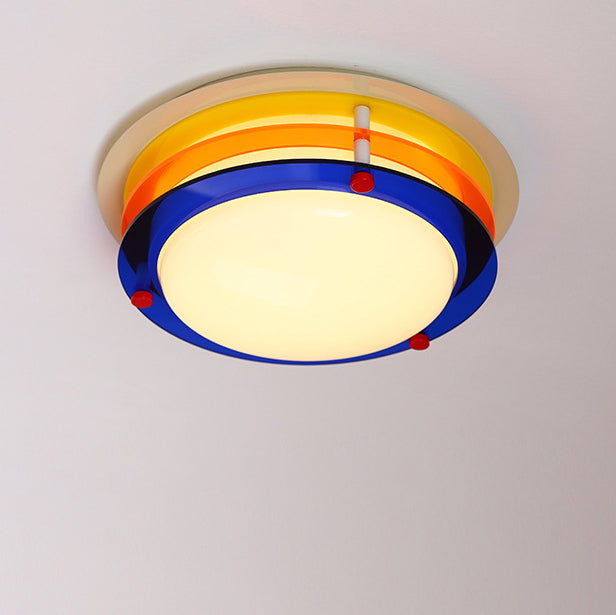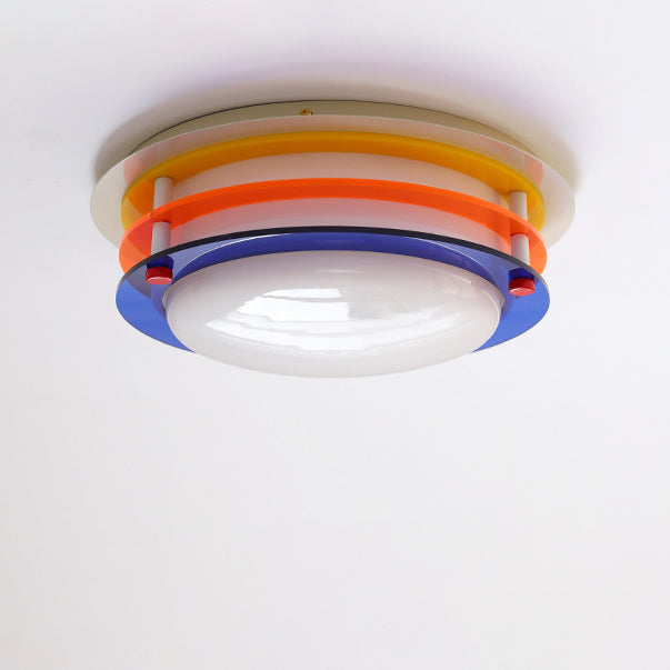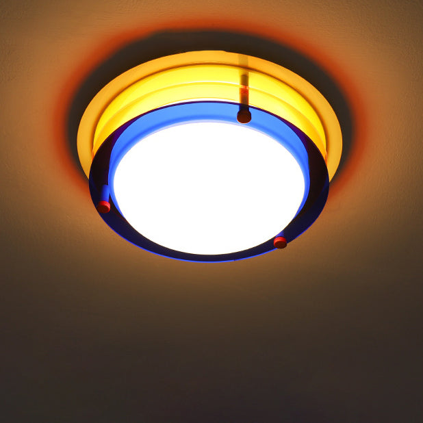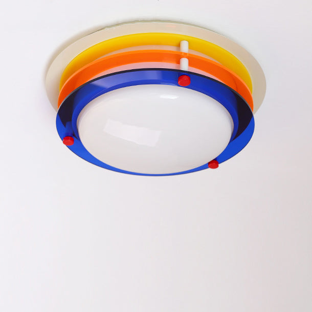 Modern Minimalist Colorful Iron Acrylic Disc Splicing LED Flush Mount Ceiling Light For Bedroom