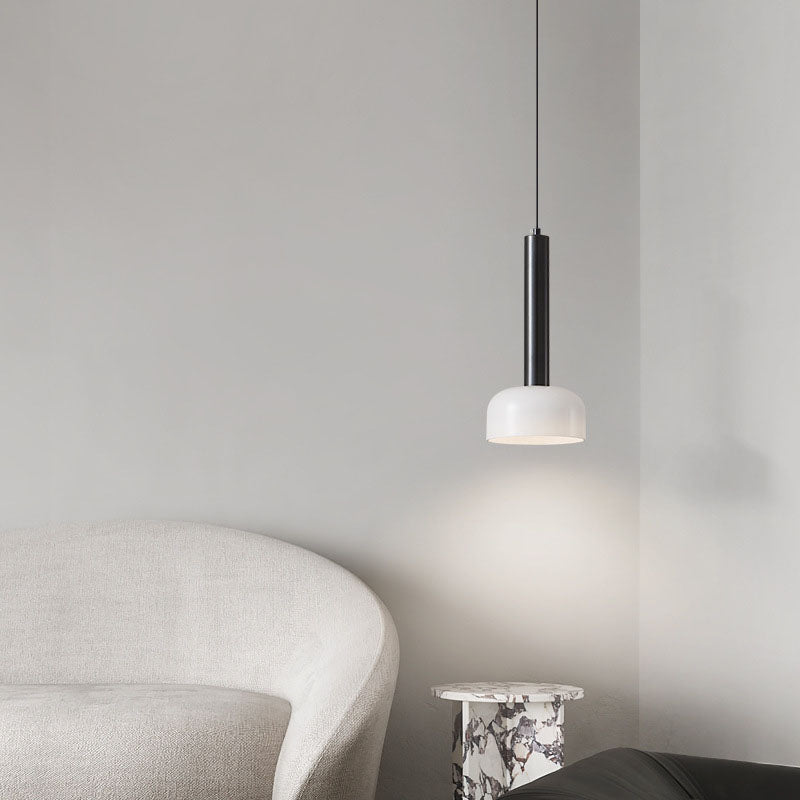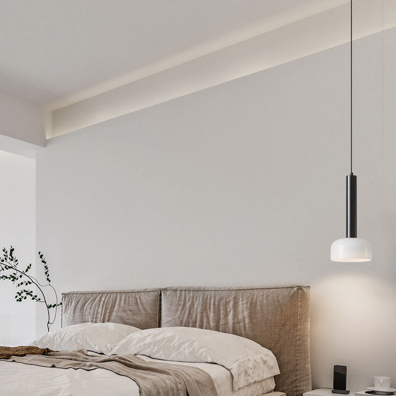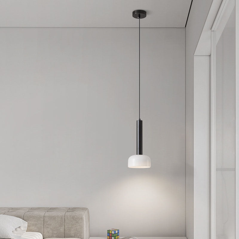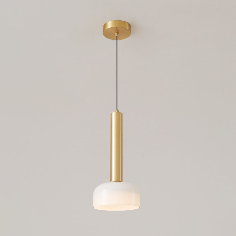 Modern Minimalist Copper Frame Glass Round Shade LED Pendant Light For Living Room