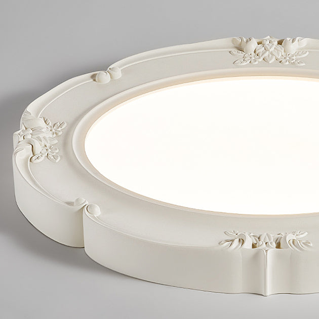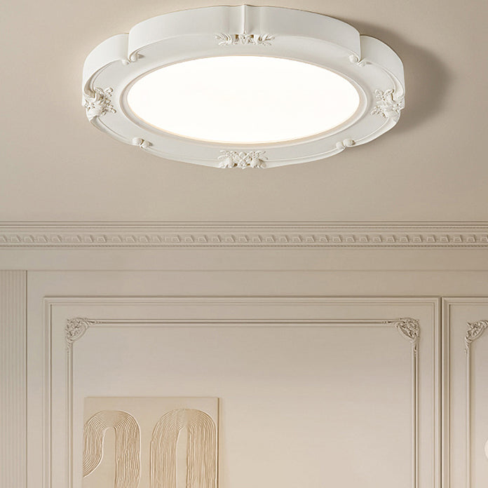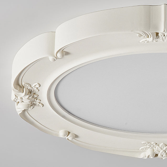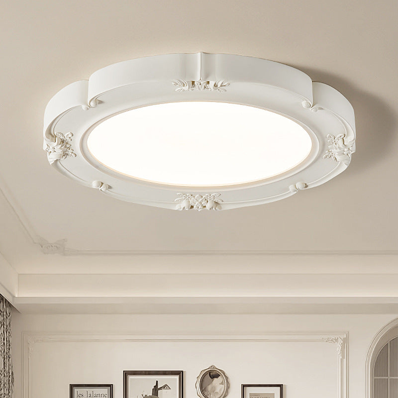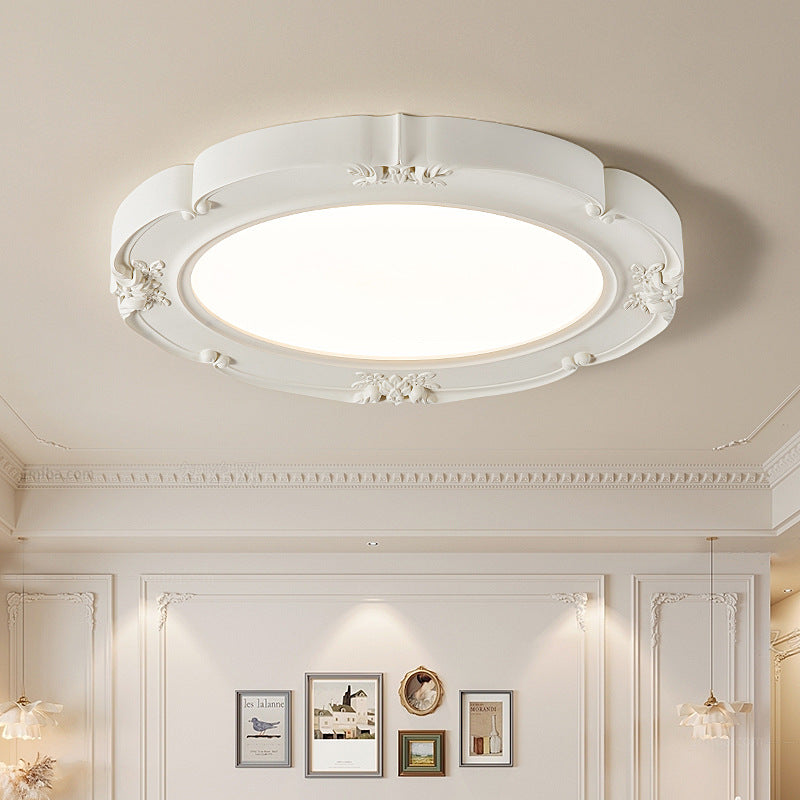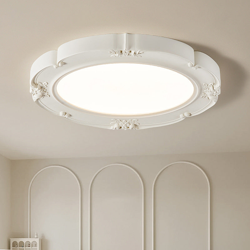 Modern Minimalist Cream Carved Round Dome Resin Acrylic LED Flush Mount Ceiling Light For Bedroom