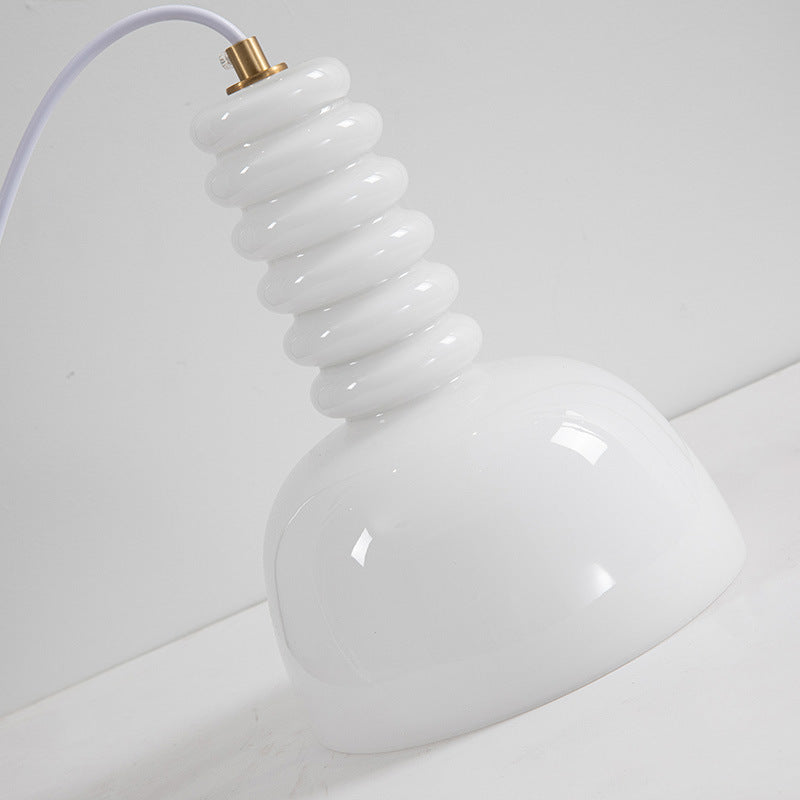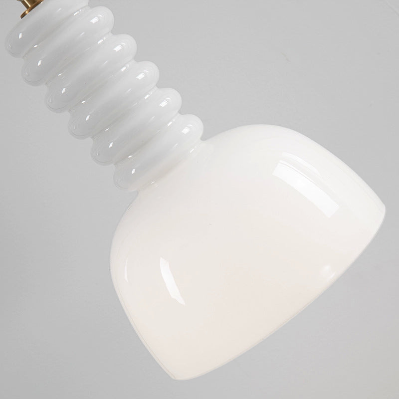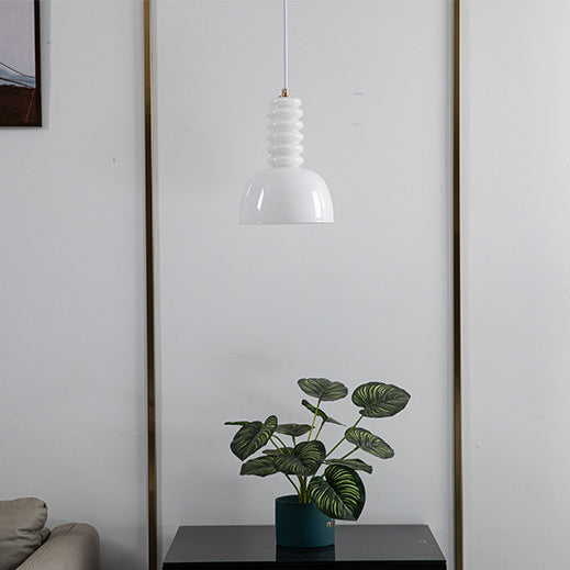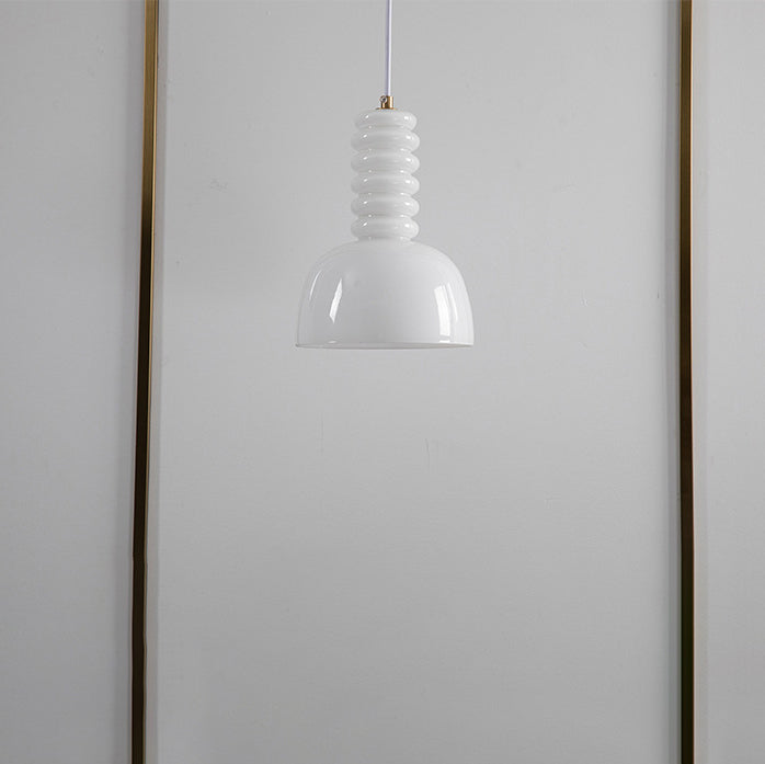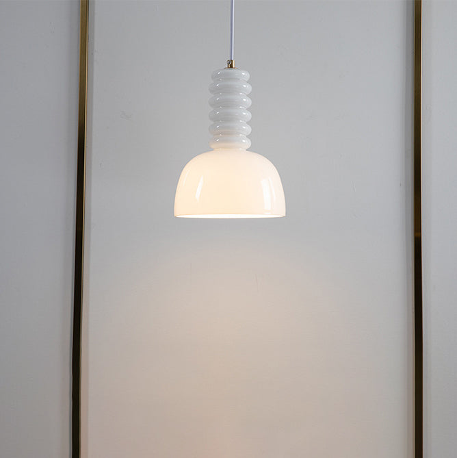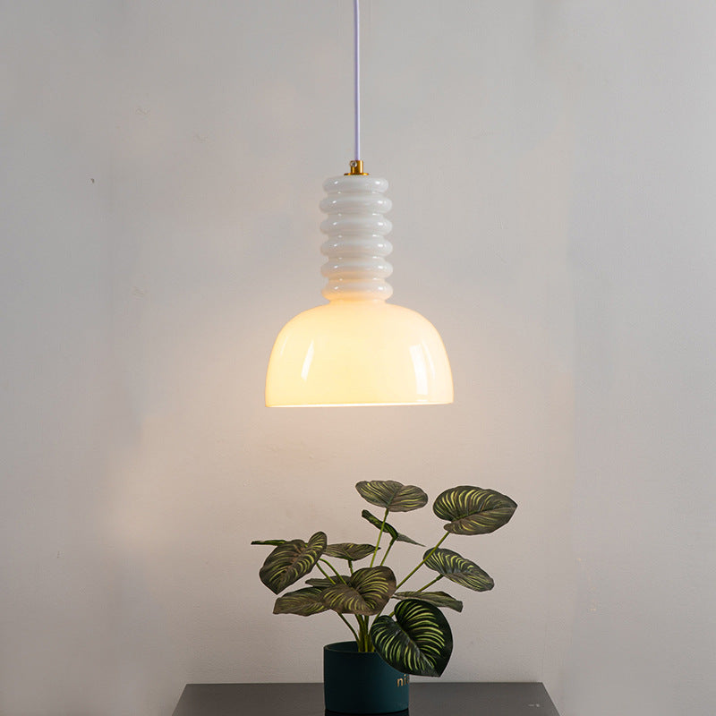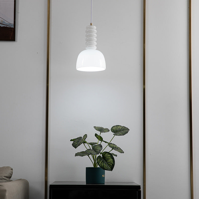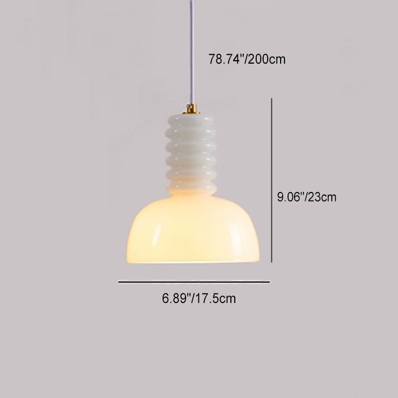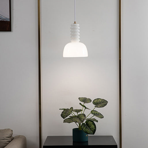 Modern Minimalist Cream Half Circle Cylinder Iron Glass 1-Light Pendant Light For Bedroom