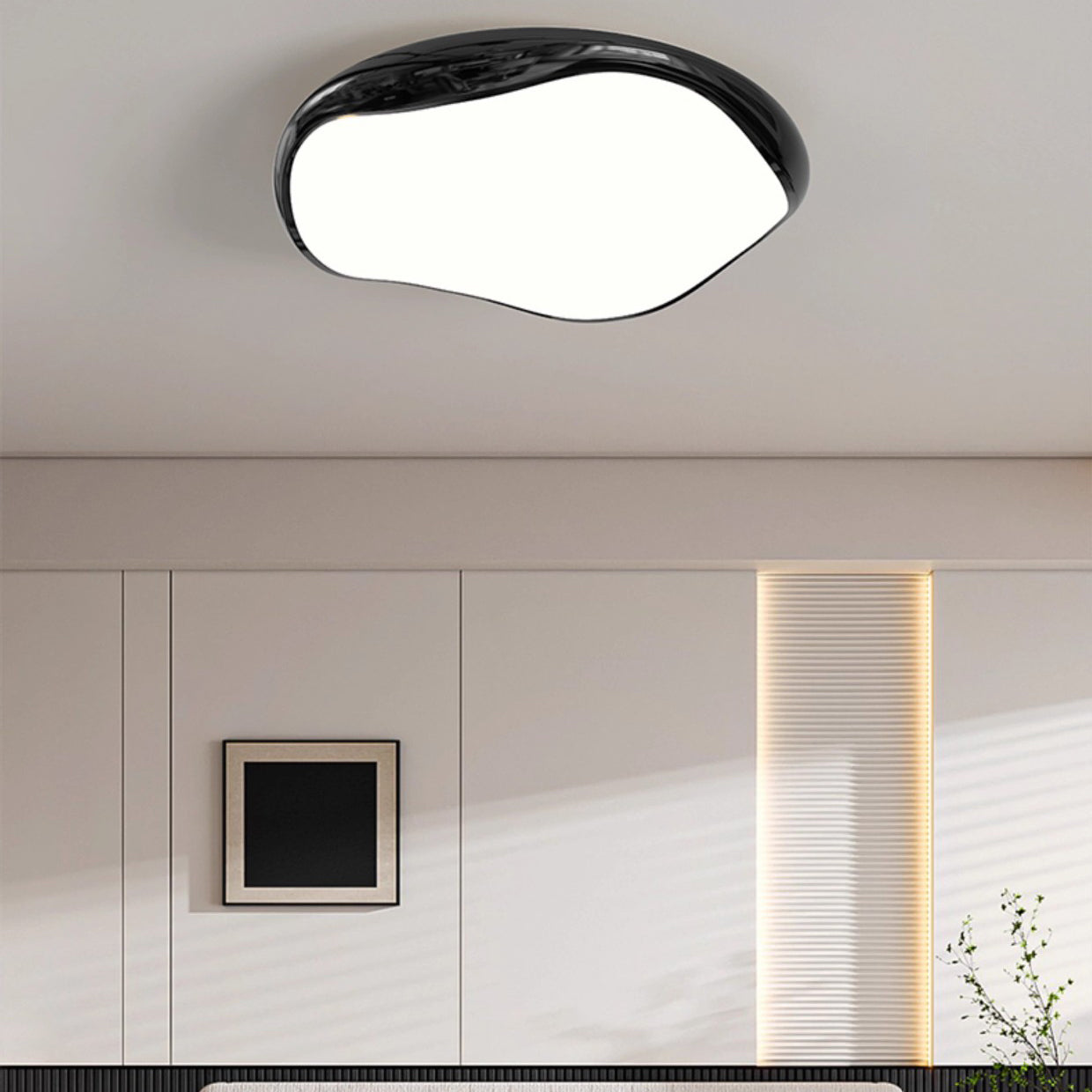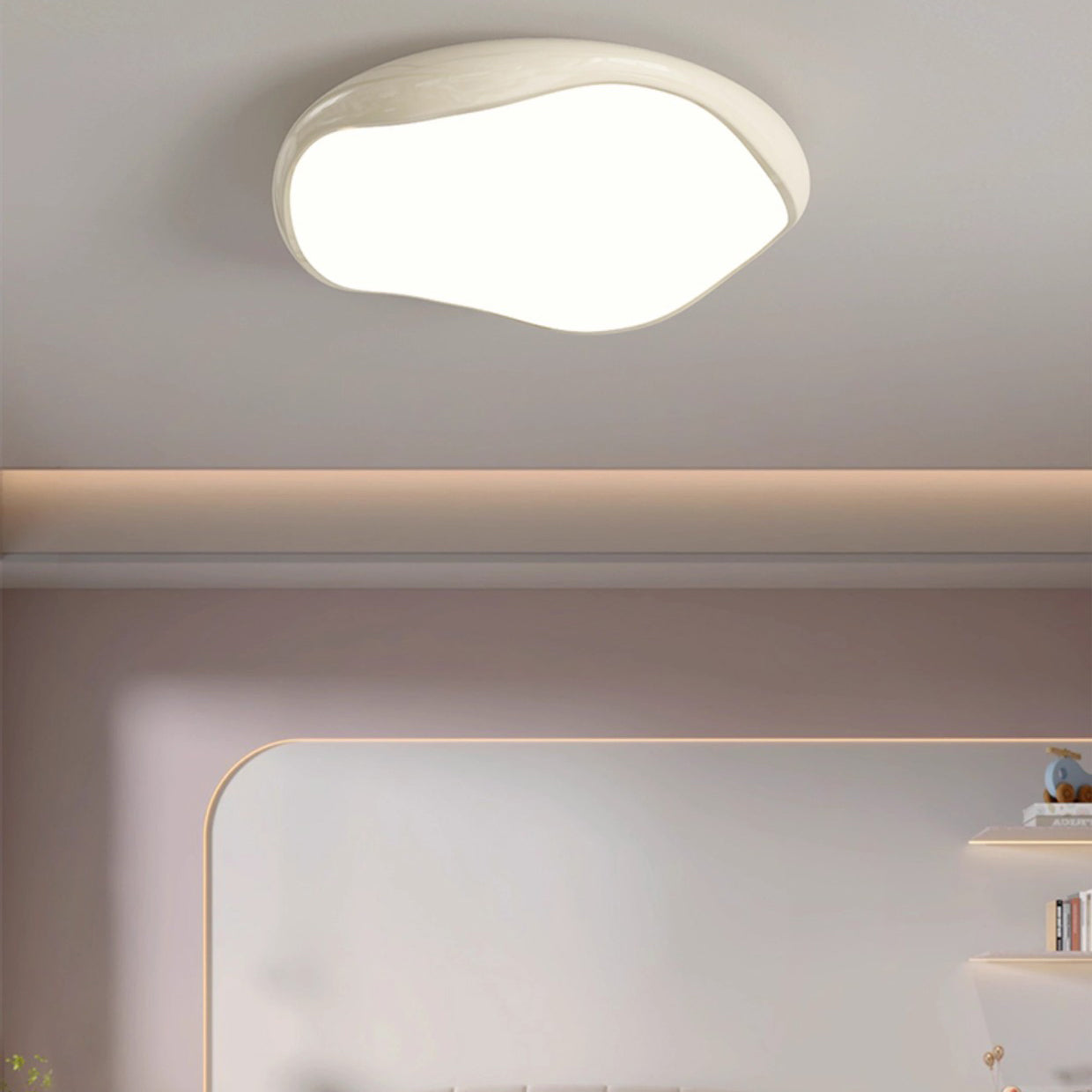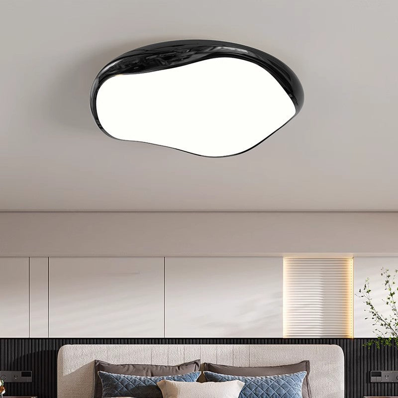 Modern Minimalist Cream Irregular Round Iron Acrylic LED Flush Mount Ceiling Light For Bedroom