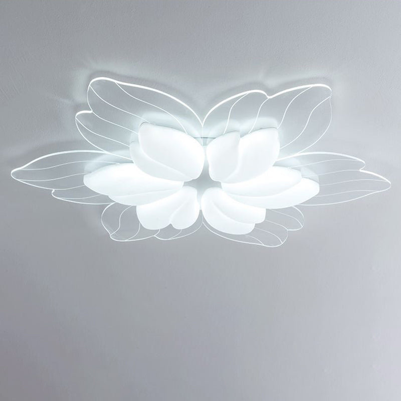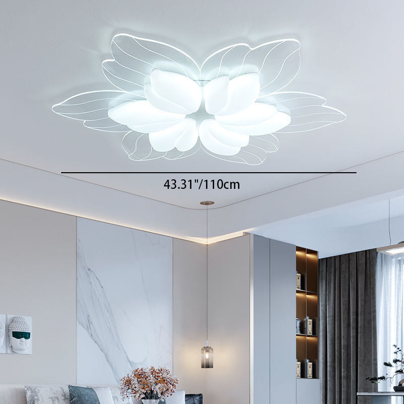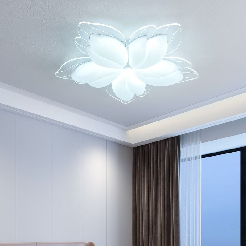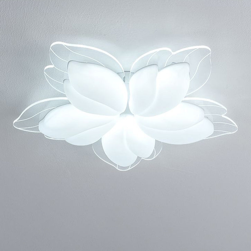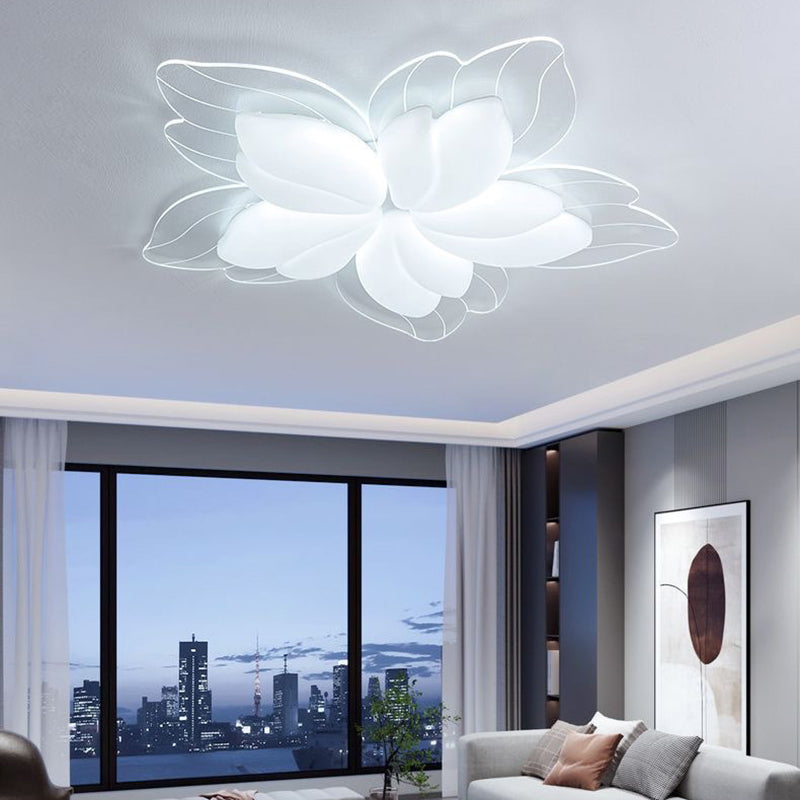 Modern Minimalist Cream Petal Flower Acrylic Iron LED Flush Mount Ceiling Light For Living Room