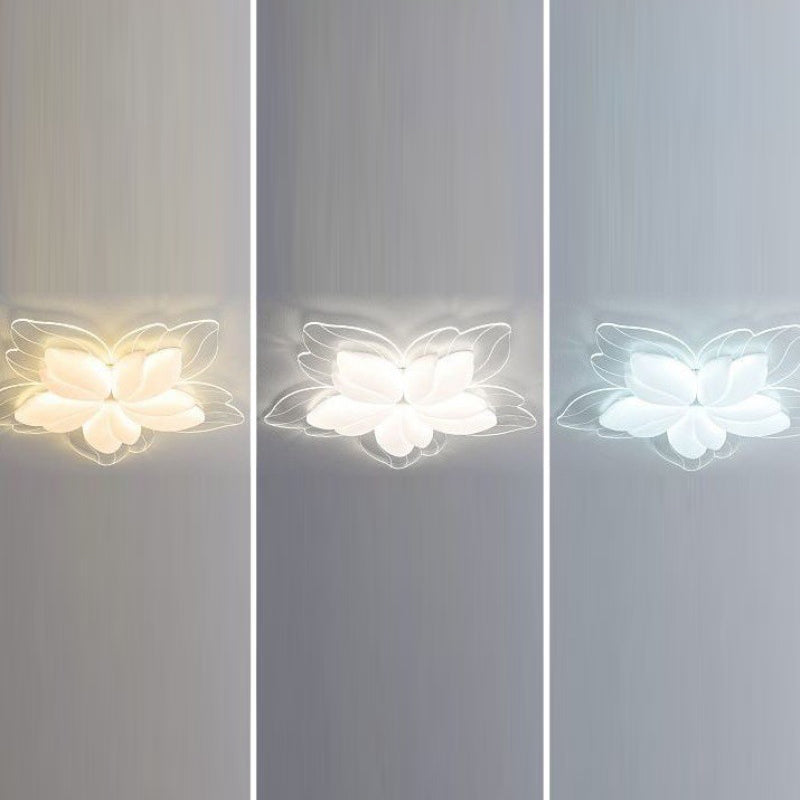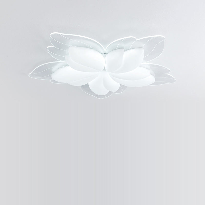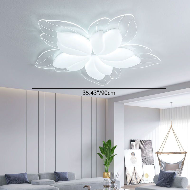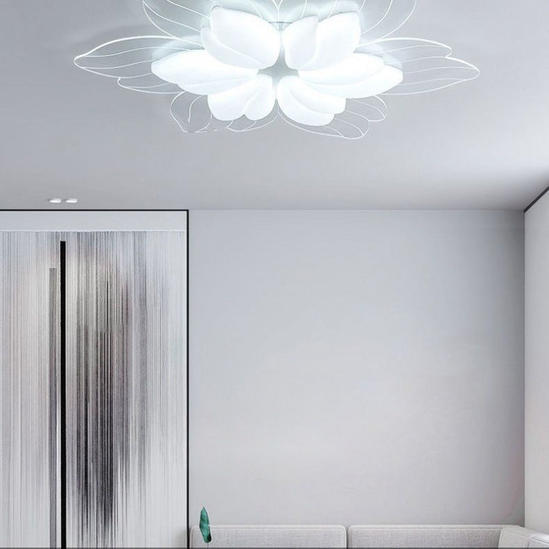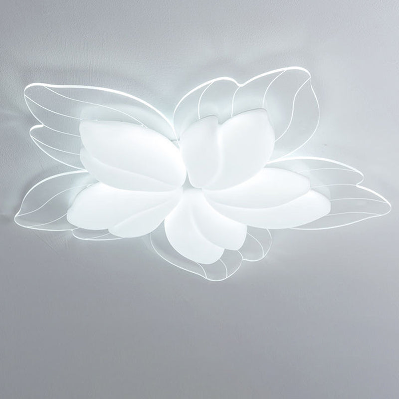 Modern Minimalist Cream Petal Flower Acrylic Iron LED Flush Mount Ceiling Light For Living Room