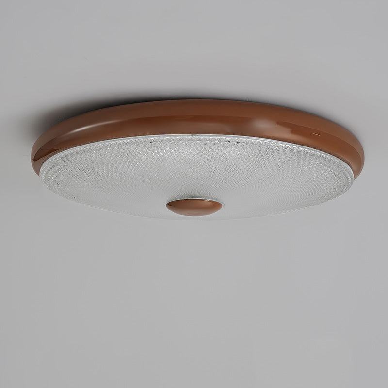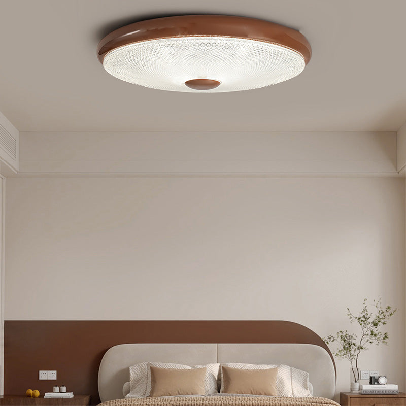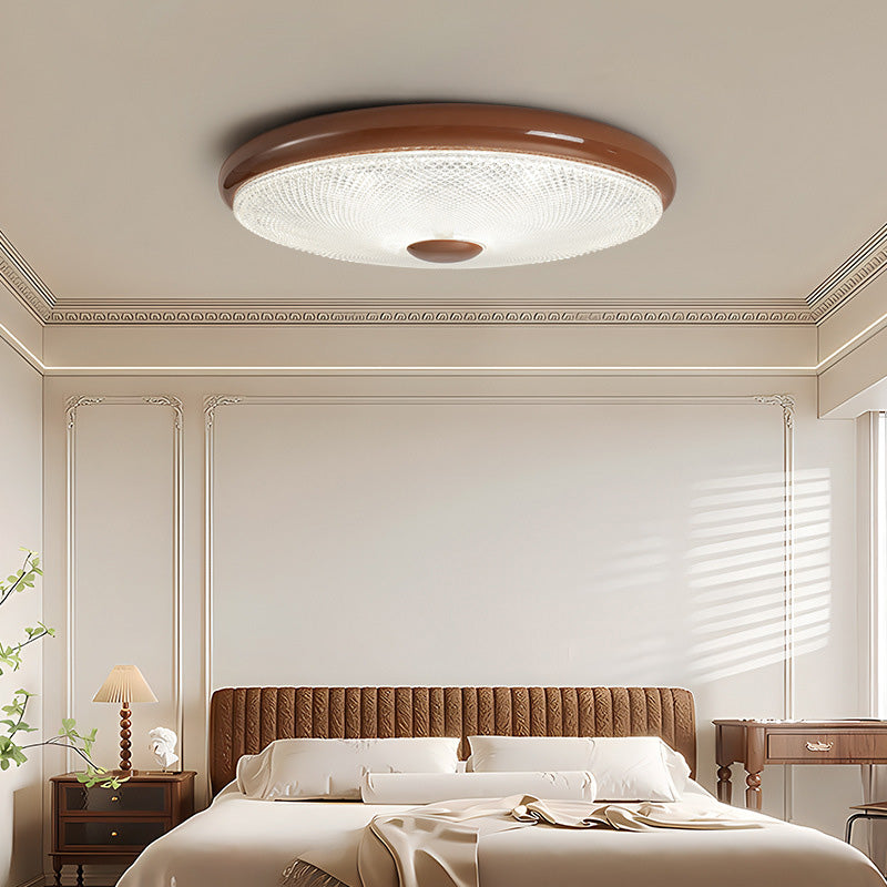 Modern Minimalist Cream Round Glass Crystal Iron LED Flush Mount Ceiling Light For Bedroom