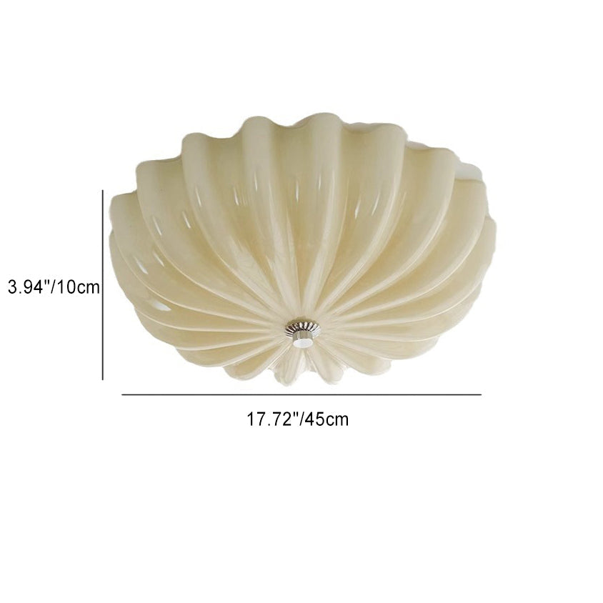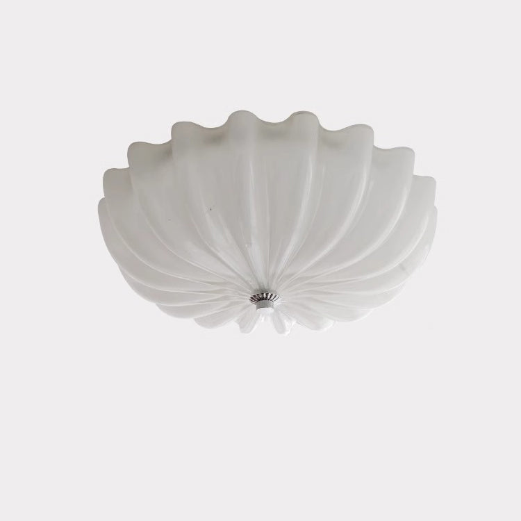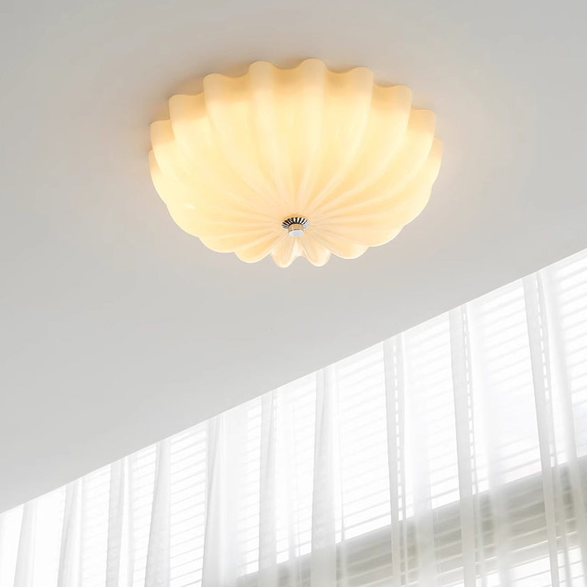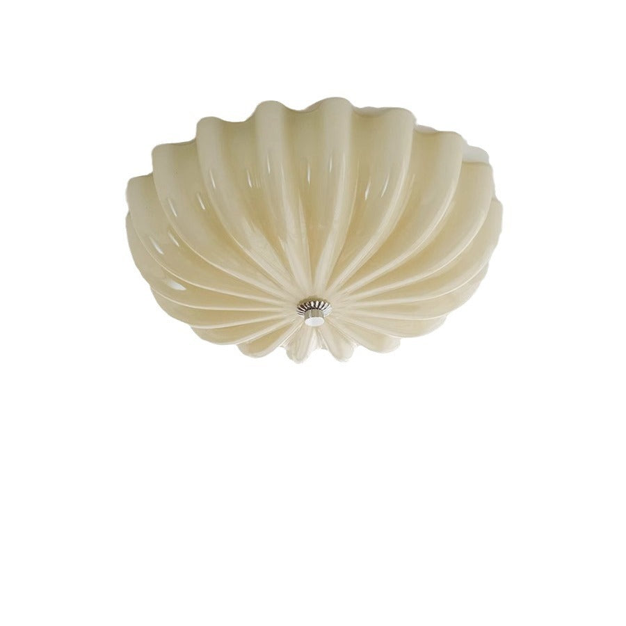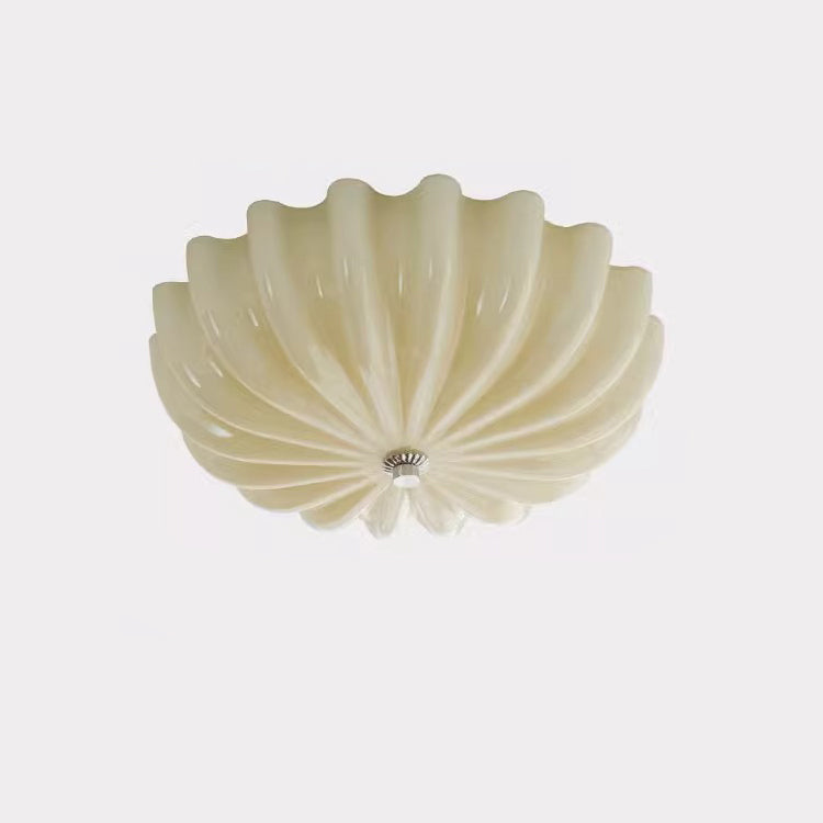 Modern Minimalist Cream Wave Pattern Round Glass Hardware LED Flush Mount Ceiling Light For Bedroom
