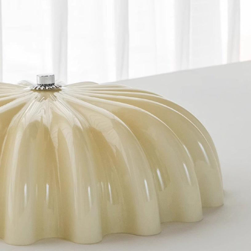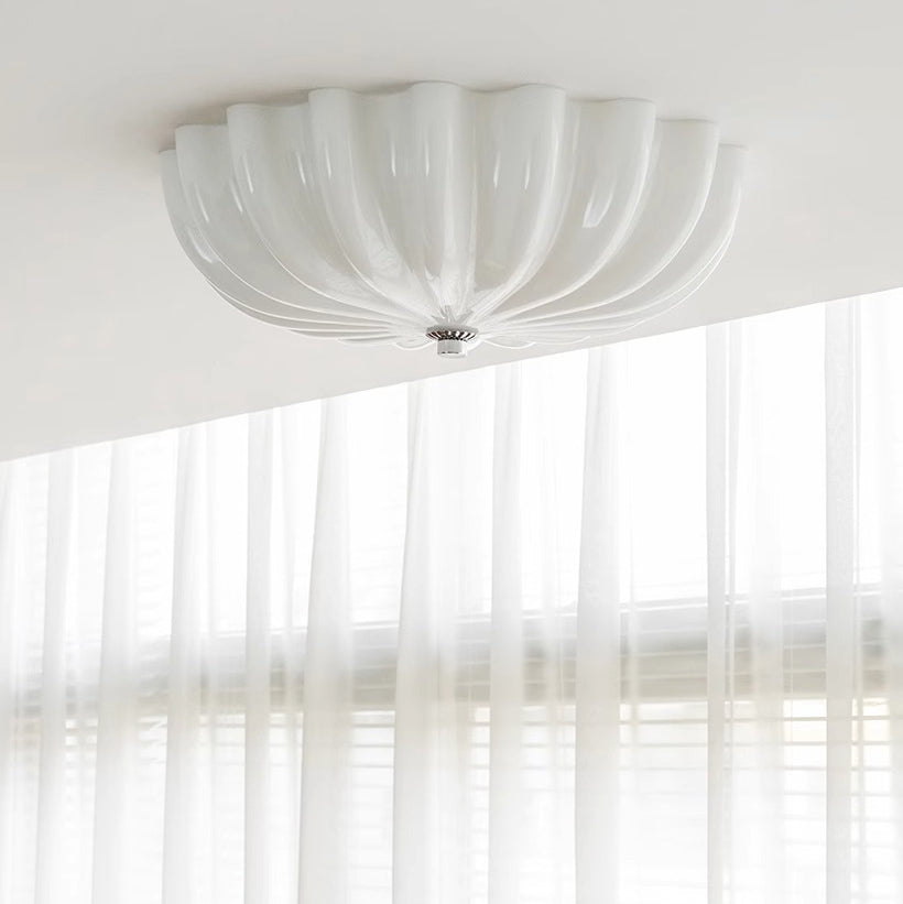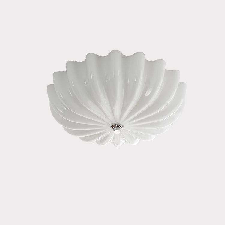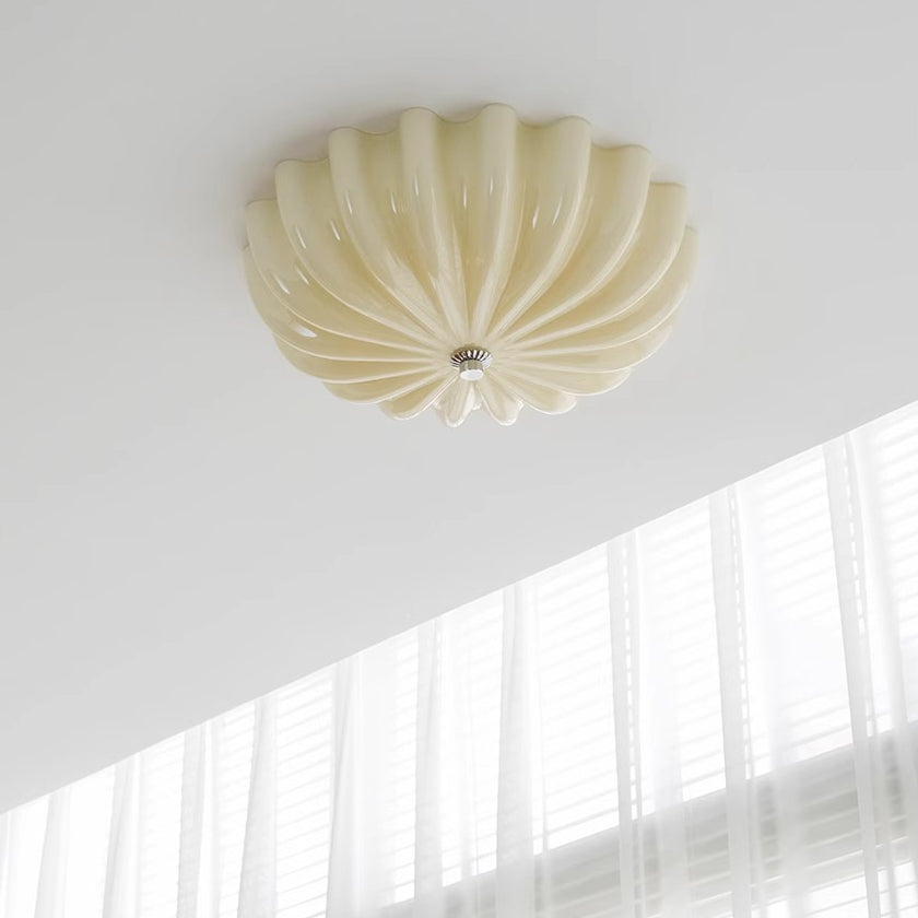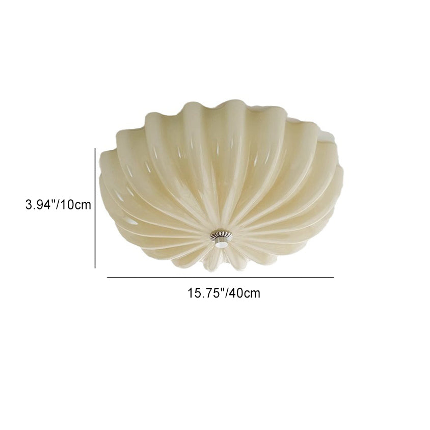 Modern Minimalist Cream Wave Pattern Round Glass Hardware LED Flush Mount Ceiling Light For Bedroom