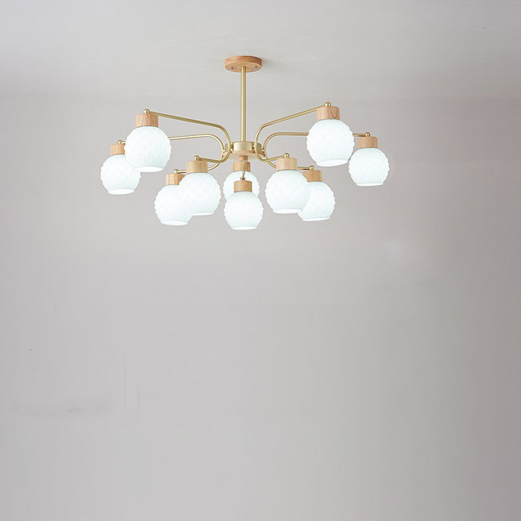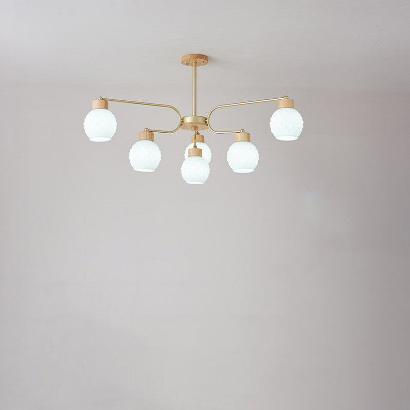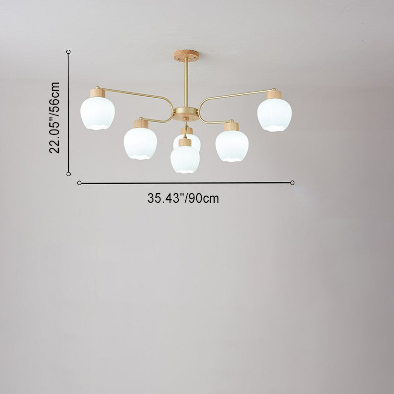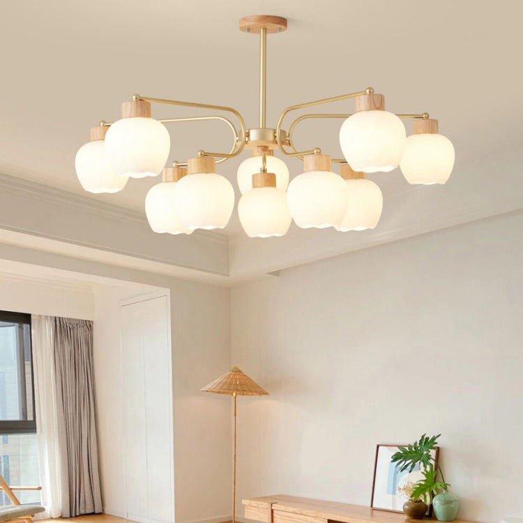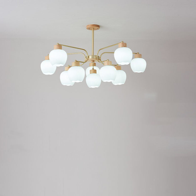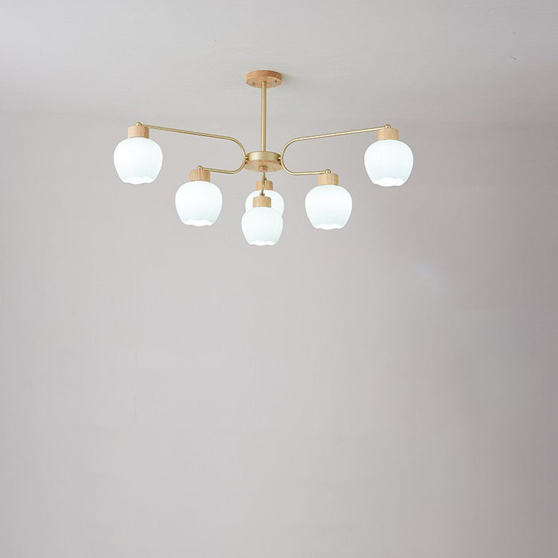 Modern Minimalist Curved Pole White Bellflower Hardware Wood Glass 6/10 Light Chandelier For Living Room