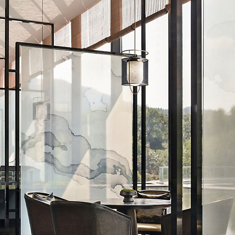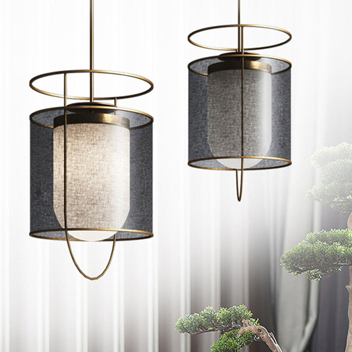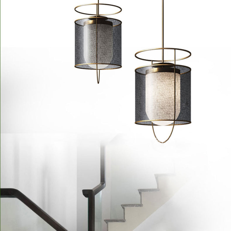 Modern Minimalist Cylinder Lantern Iron PVC LED Pendant Light For Living Room