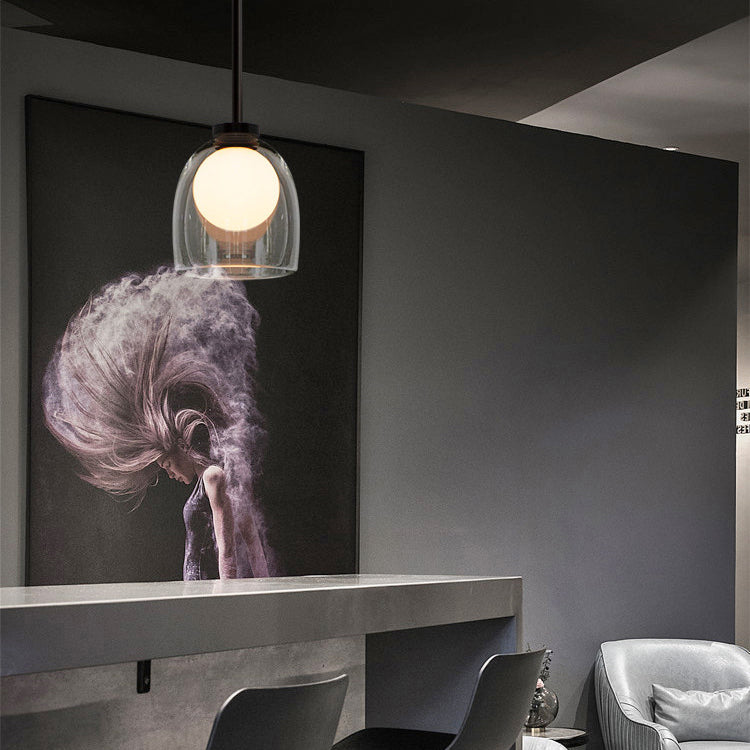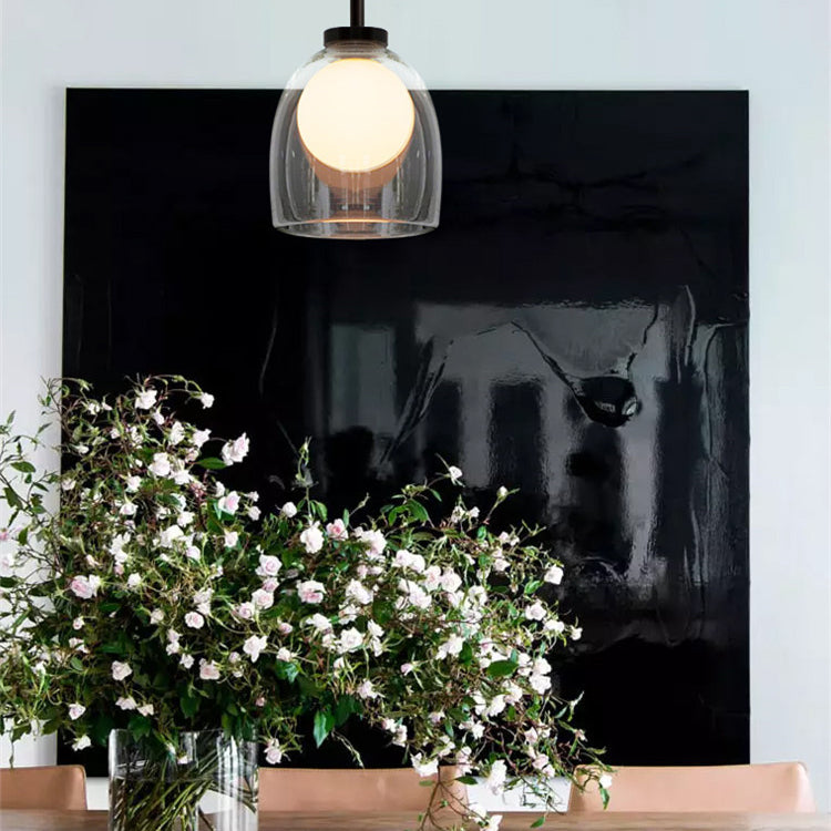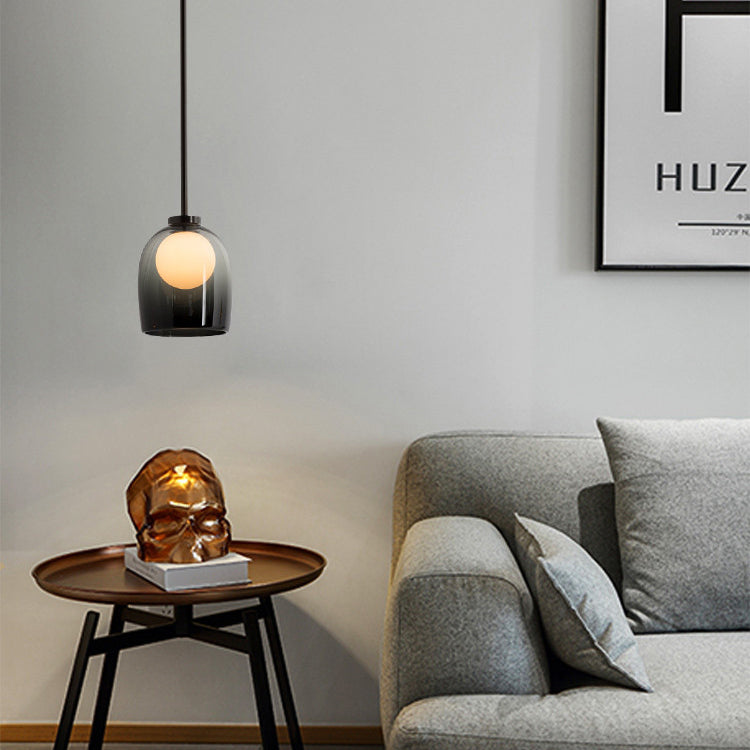 Modern Minimalist Cylinder Orb Glass 1-Light Pendant Light For Living Room