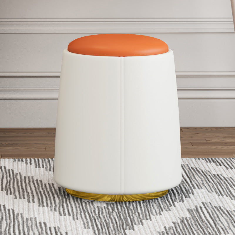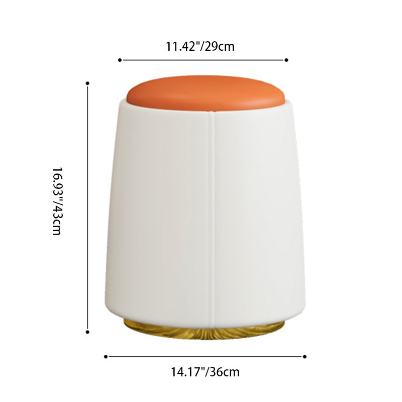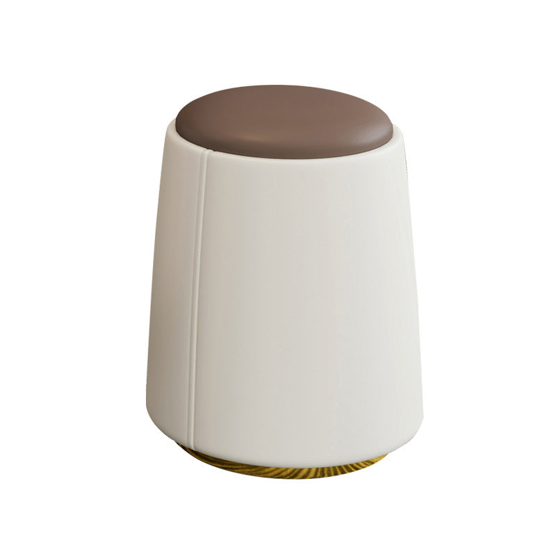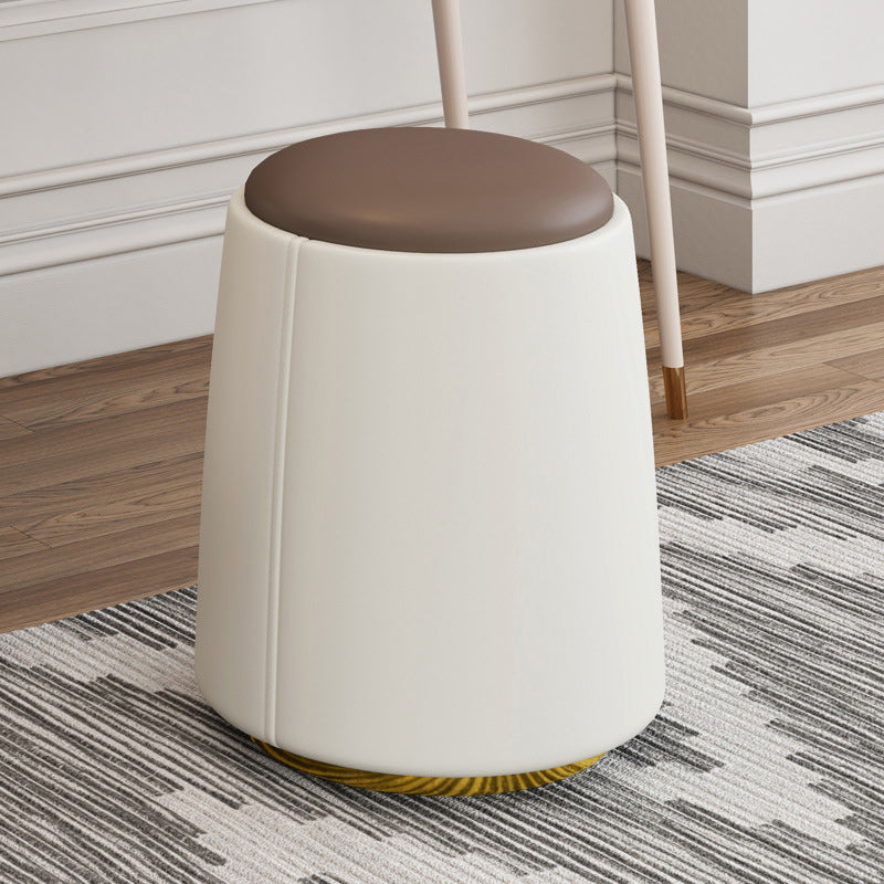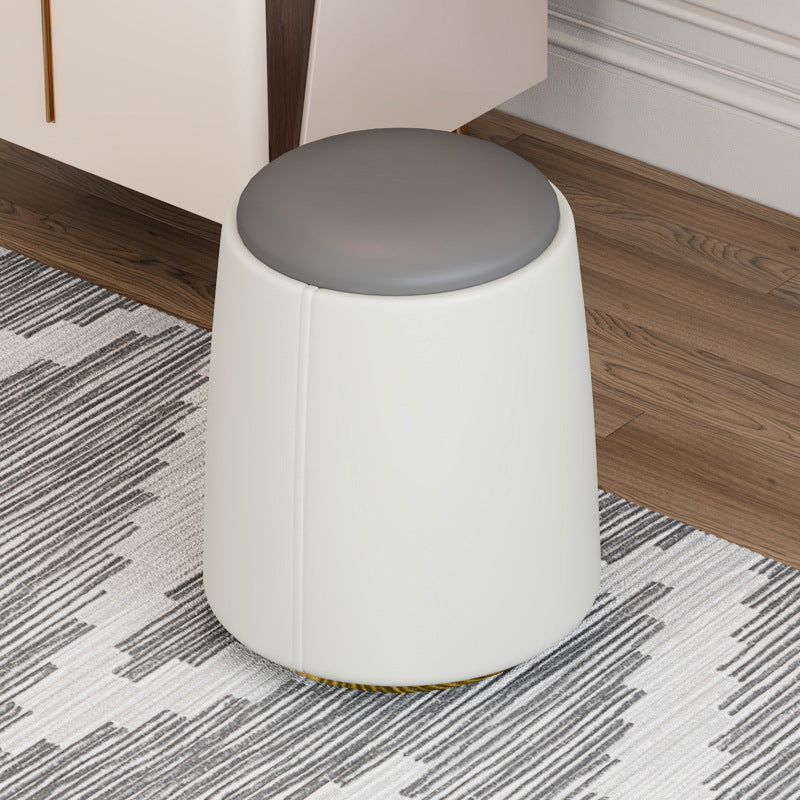 Modern Minimalist Cylinder Round Napa Leather Solid Wood Iron Vanity Stool Backless Armless For Bedroom