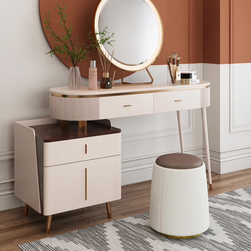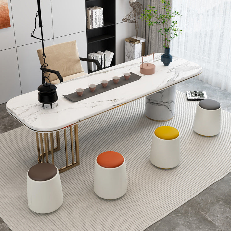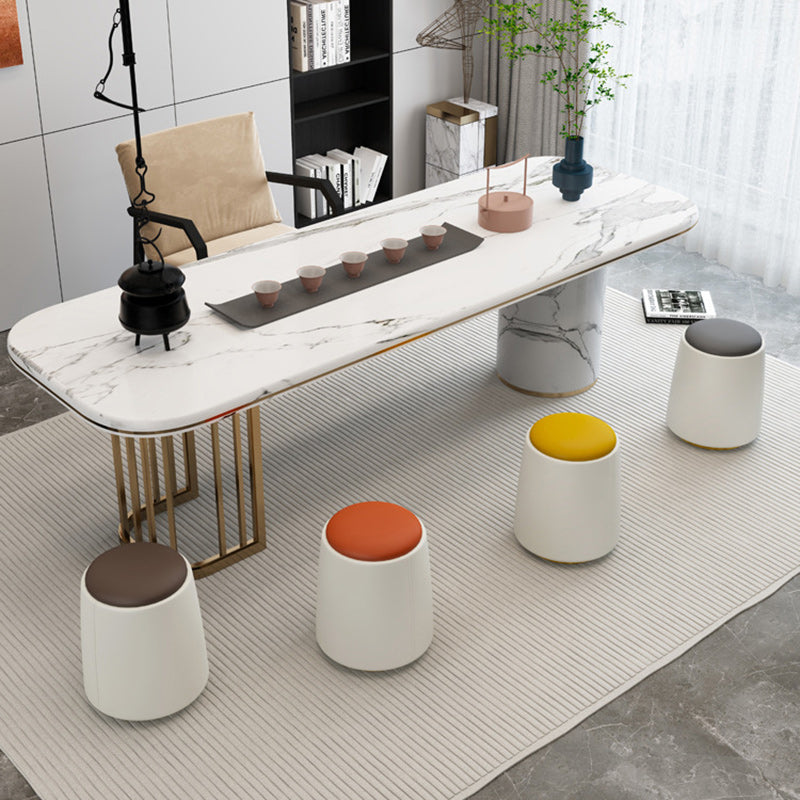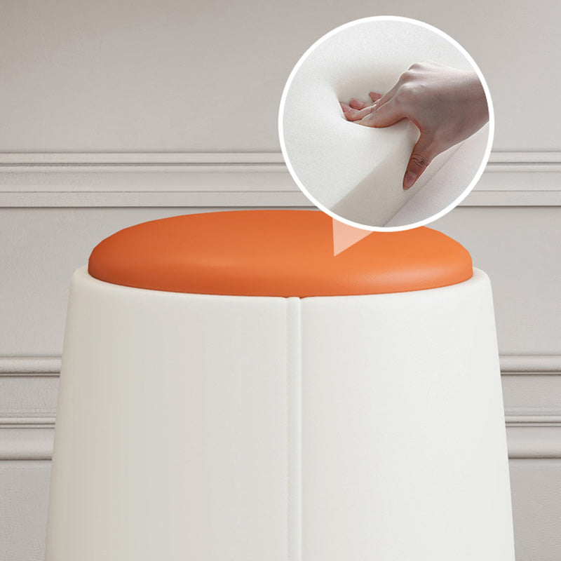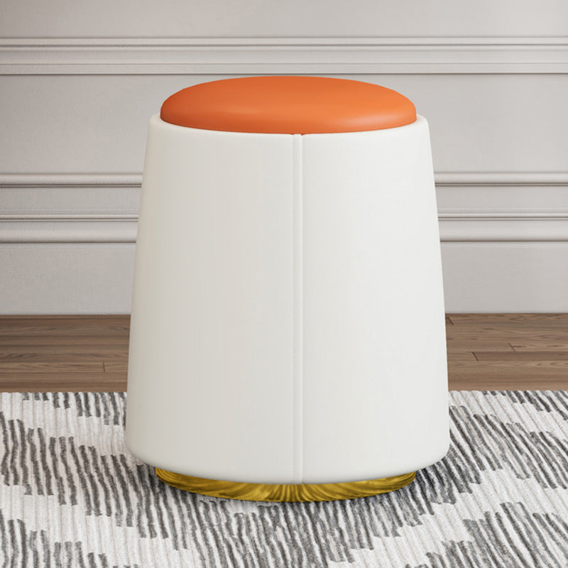 Modern Minimalist Cylinder Round Napa Leather Solid Wood Iron Vanity Stool Backless Armless For Bedroom